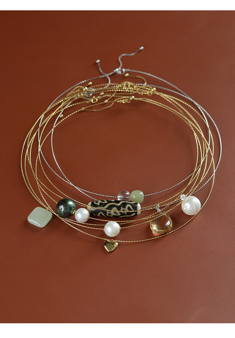 喵吉萬能項圈可調節針式穿吊墜滿天星路路通珍珠玉石串珠細款金色