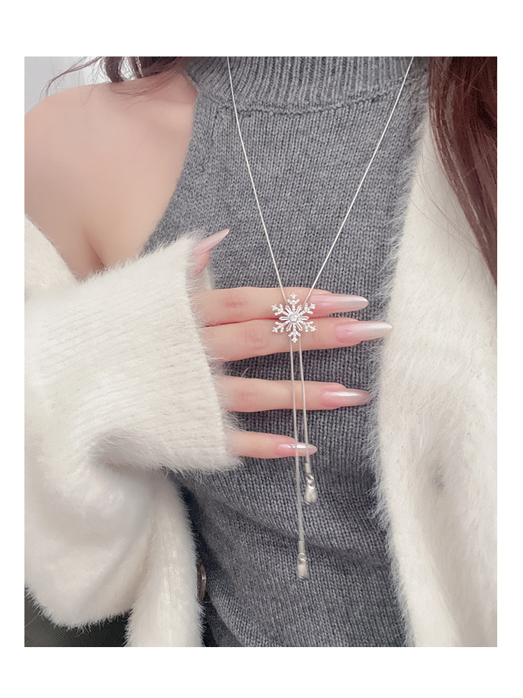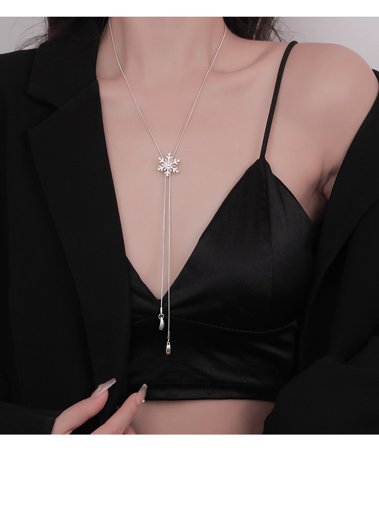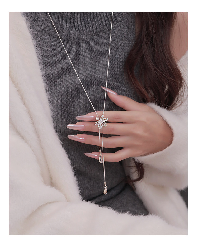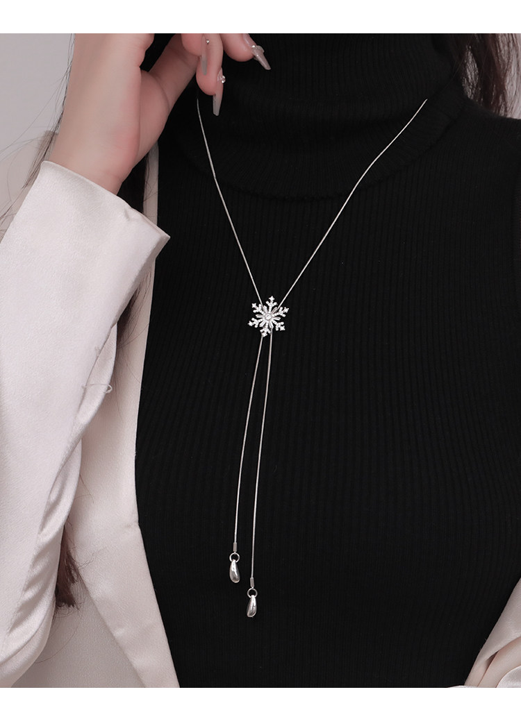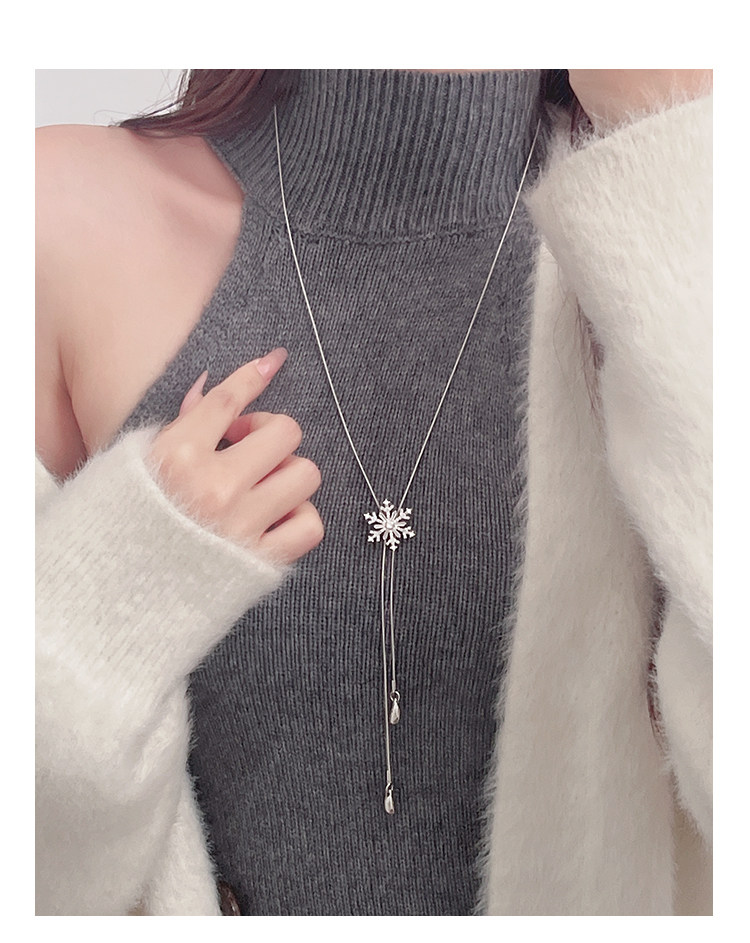 Z小姐 超閃雪花鋯石可抽拉項鍊女2025新款輕奢小衆百搭秋冬毛衣鏈