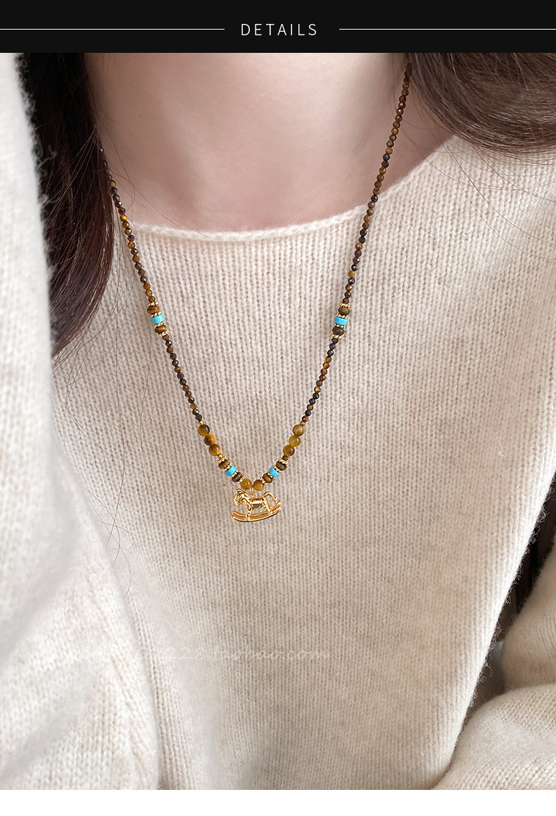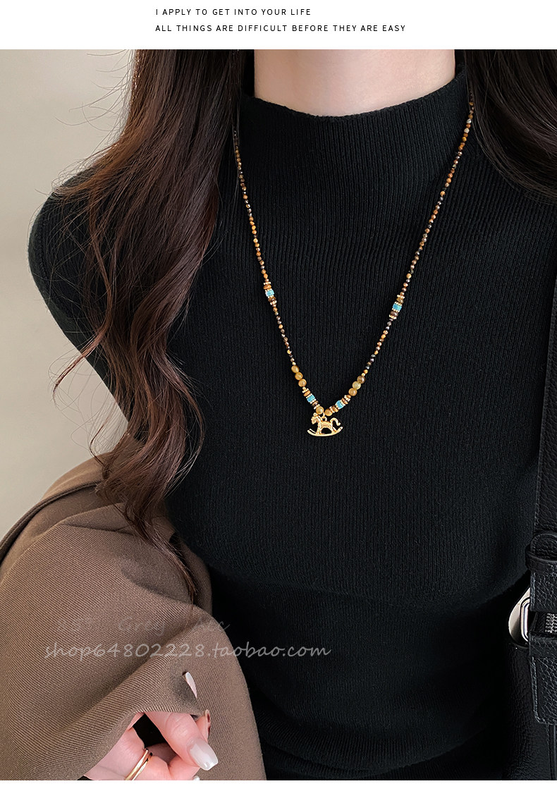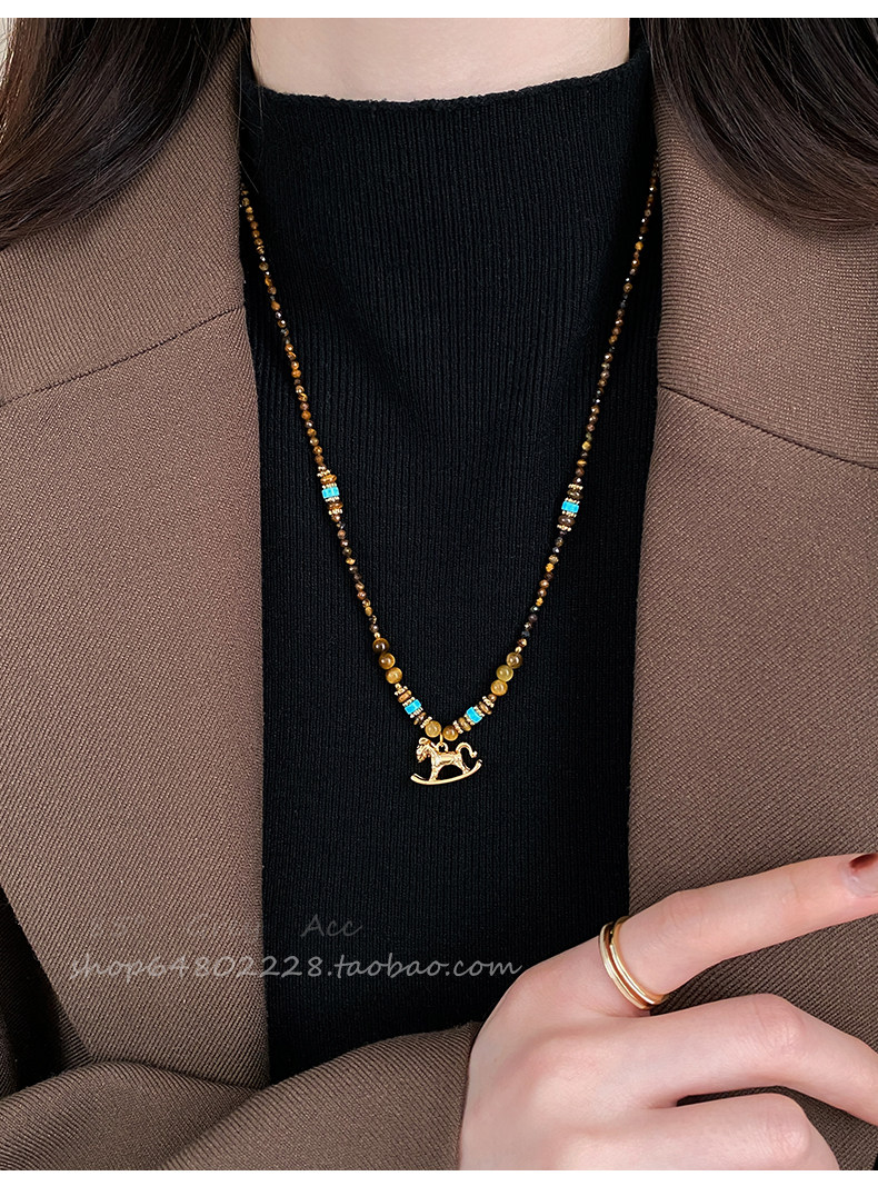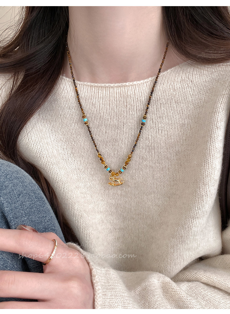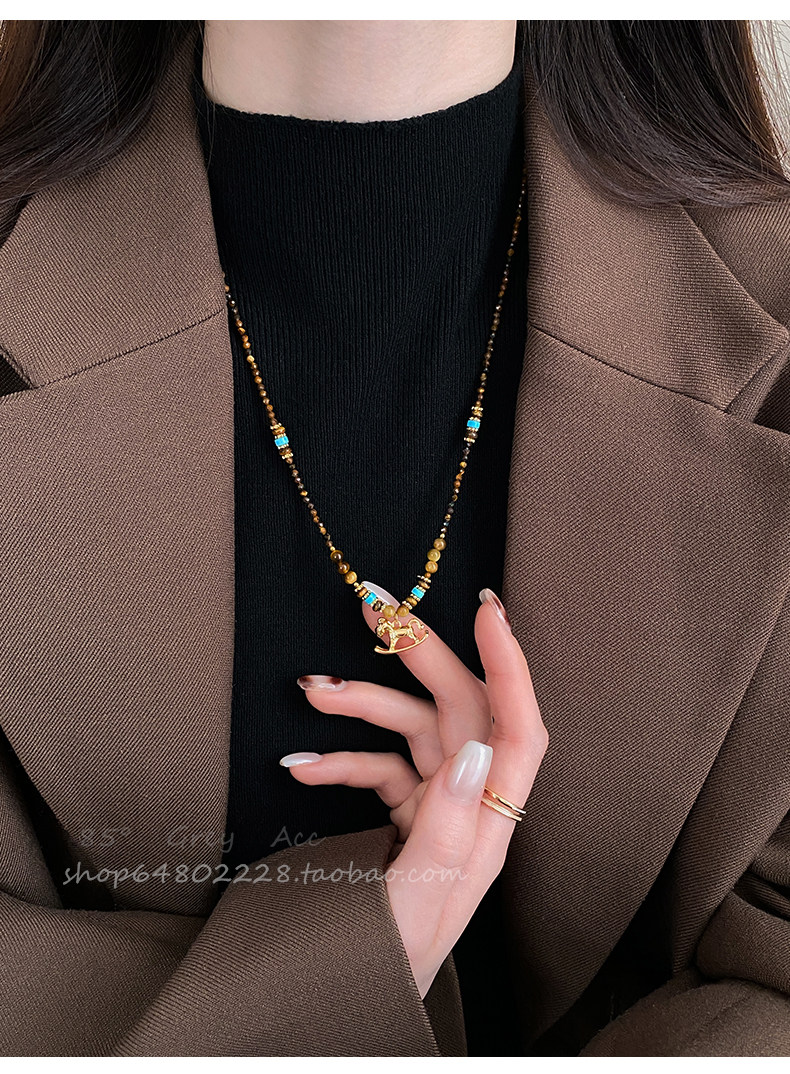 咖色串珠美拉德小馬項鍊女2026新款輕奢高級鎖骨鍊小衆復古毛衣鏈