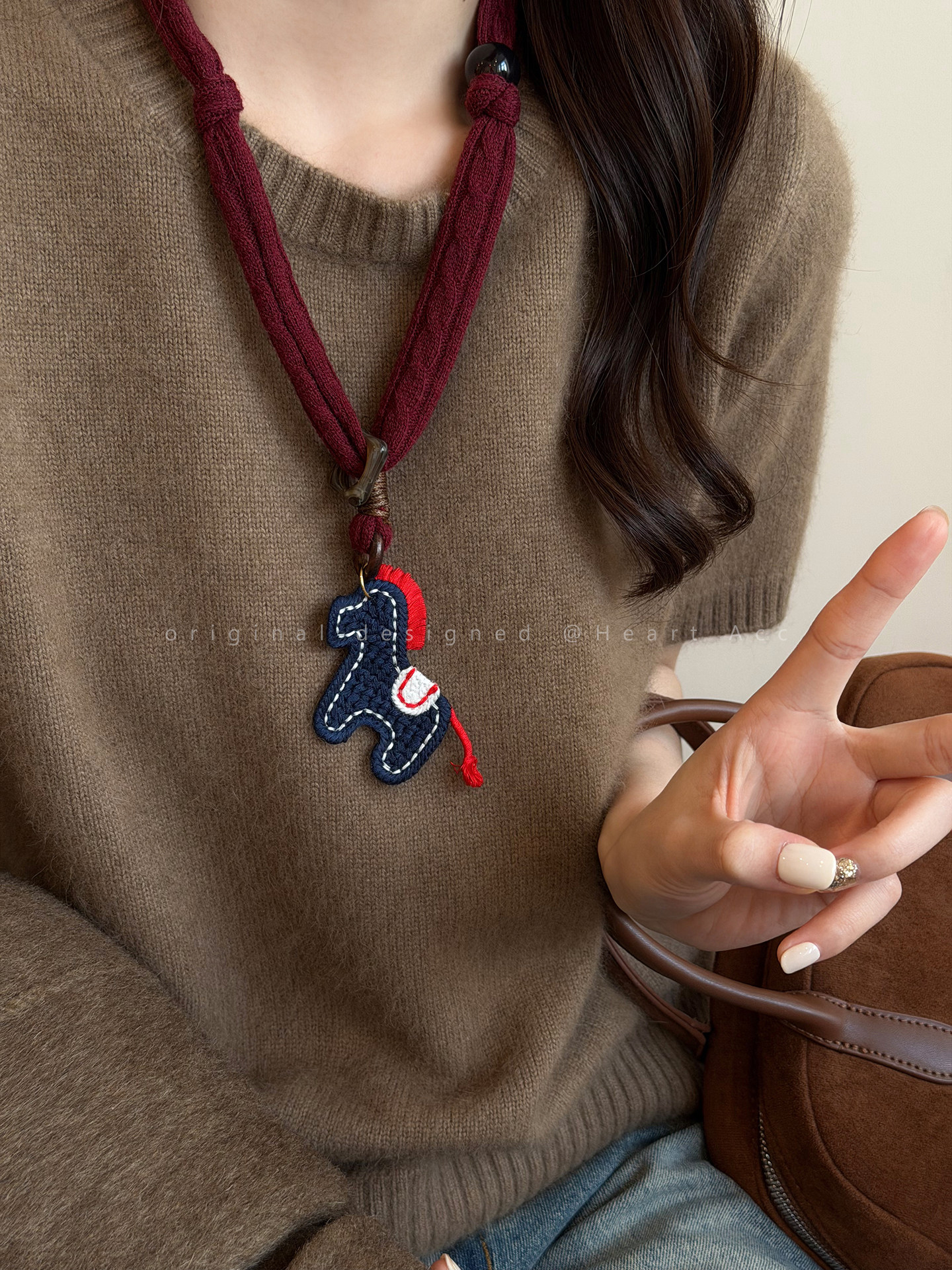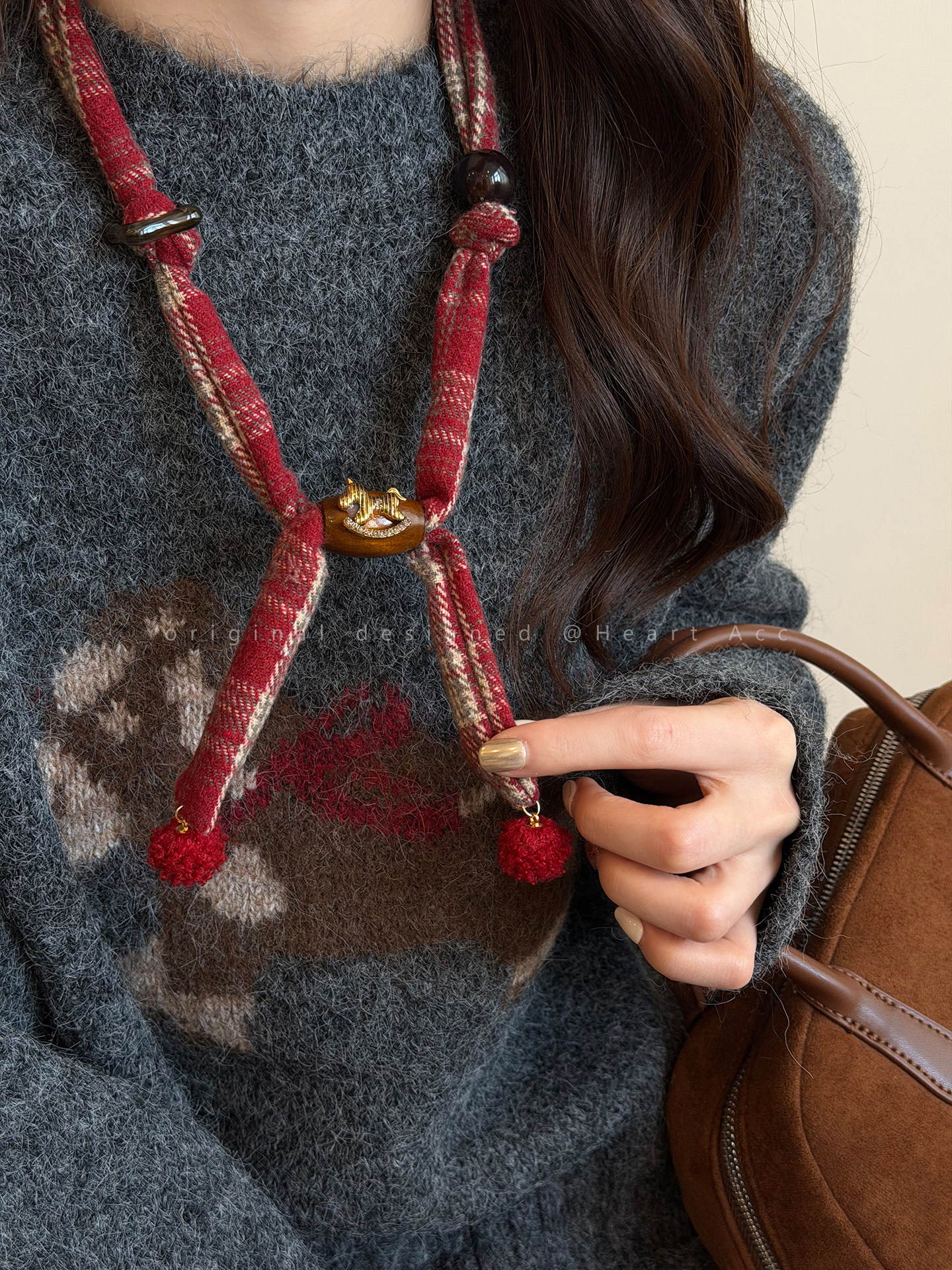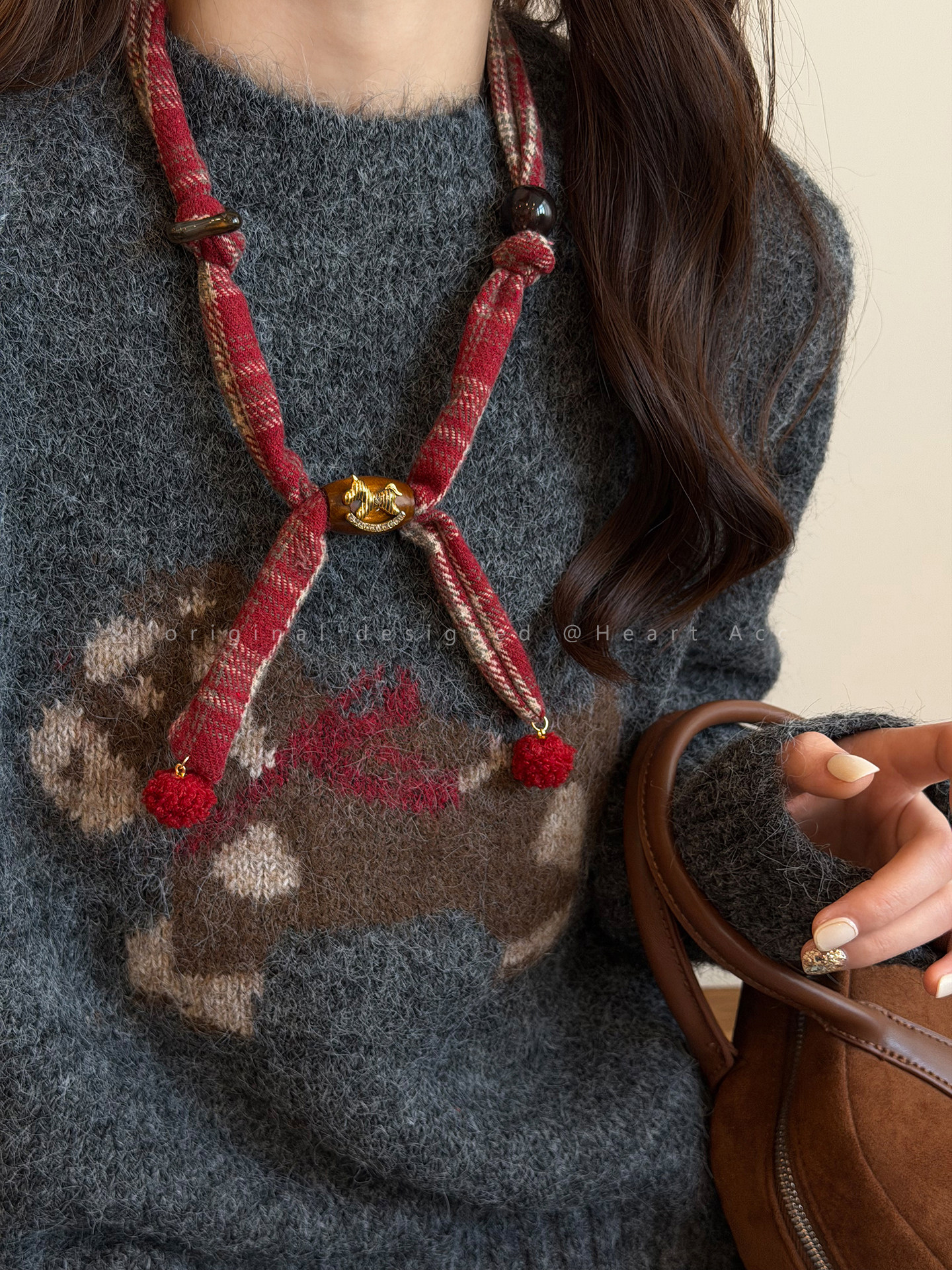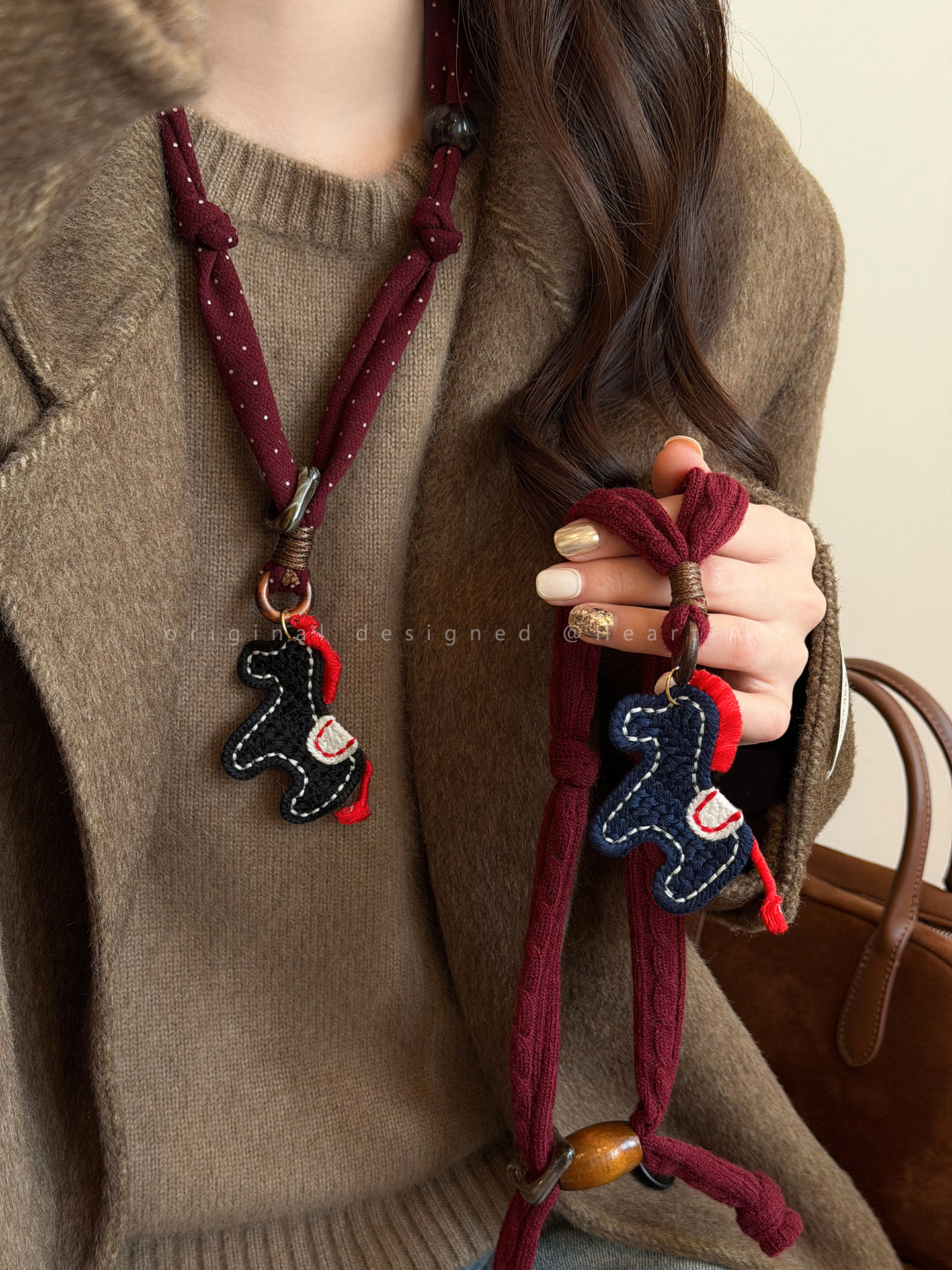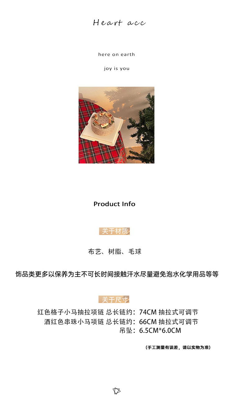 紅色布藝格子小馬抽拉項鍊女秋冬長款抽拉毛衣鏈本命年高級感配飾