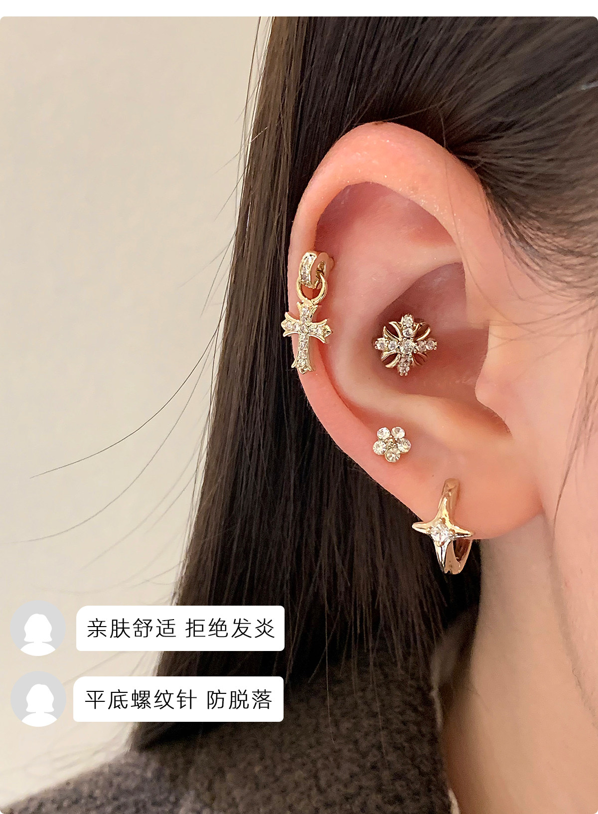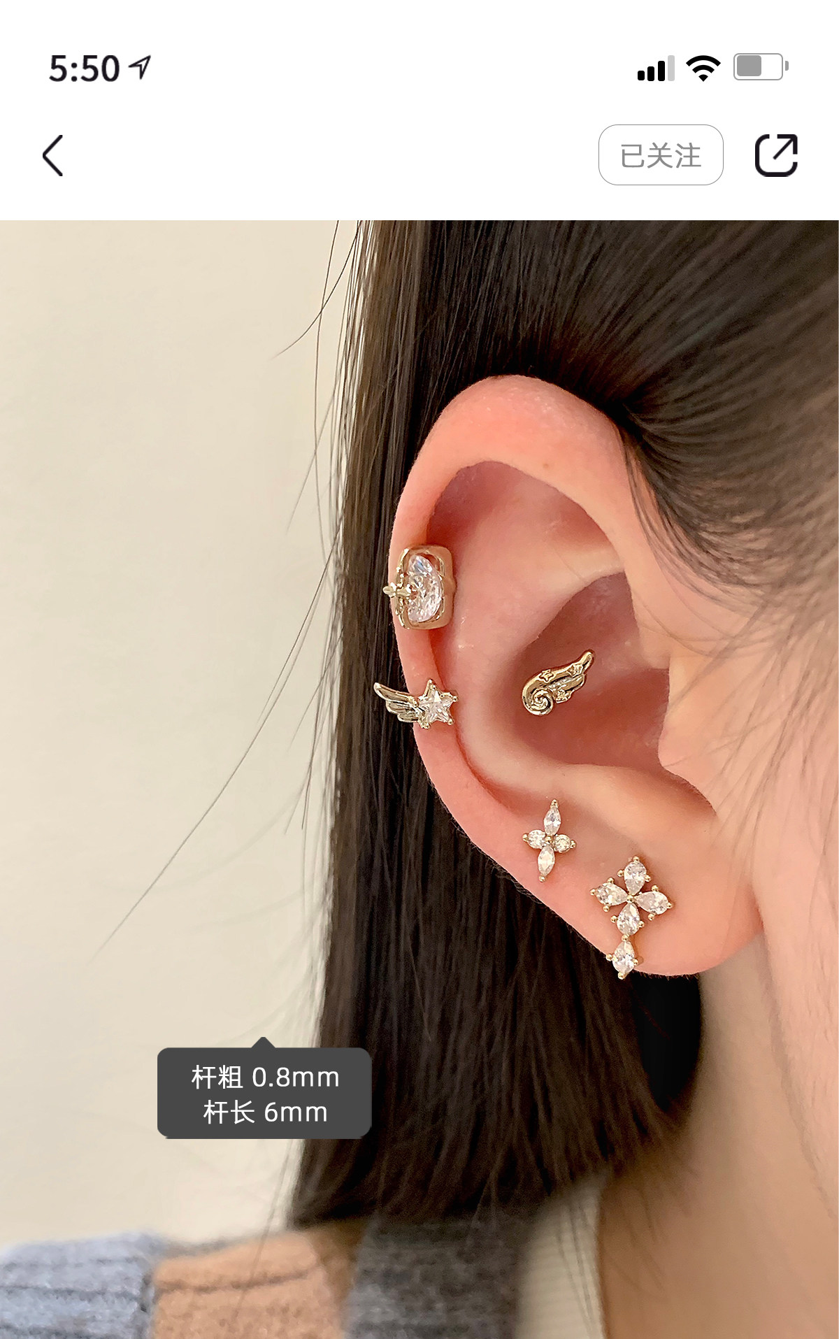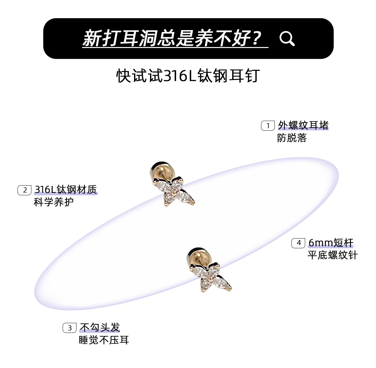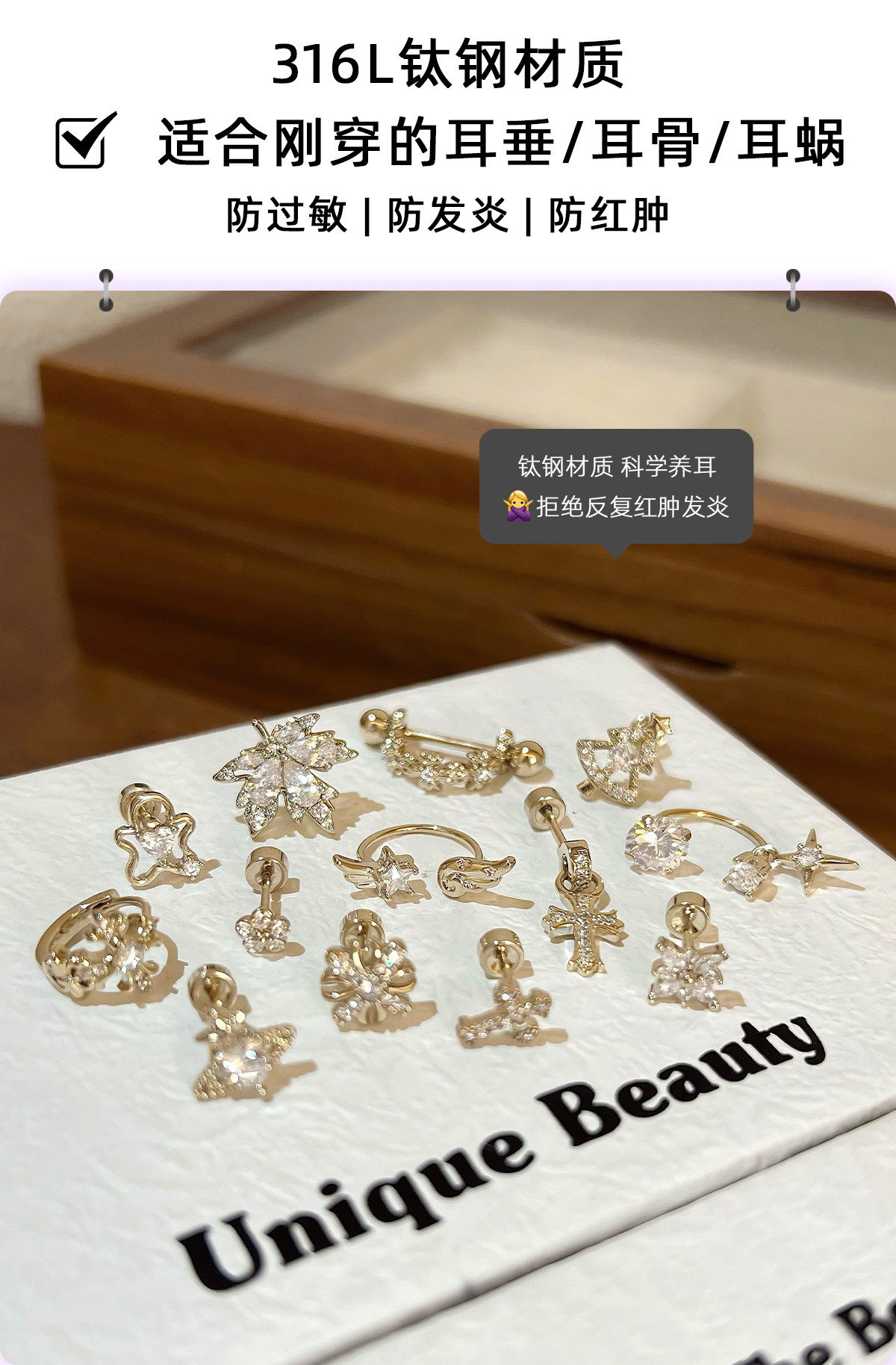 RINGRING商店耳骨釘醫用鈦鋼耳釘養耳洞耳蝸釘秋冬金色耳飾女耳圈