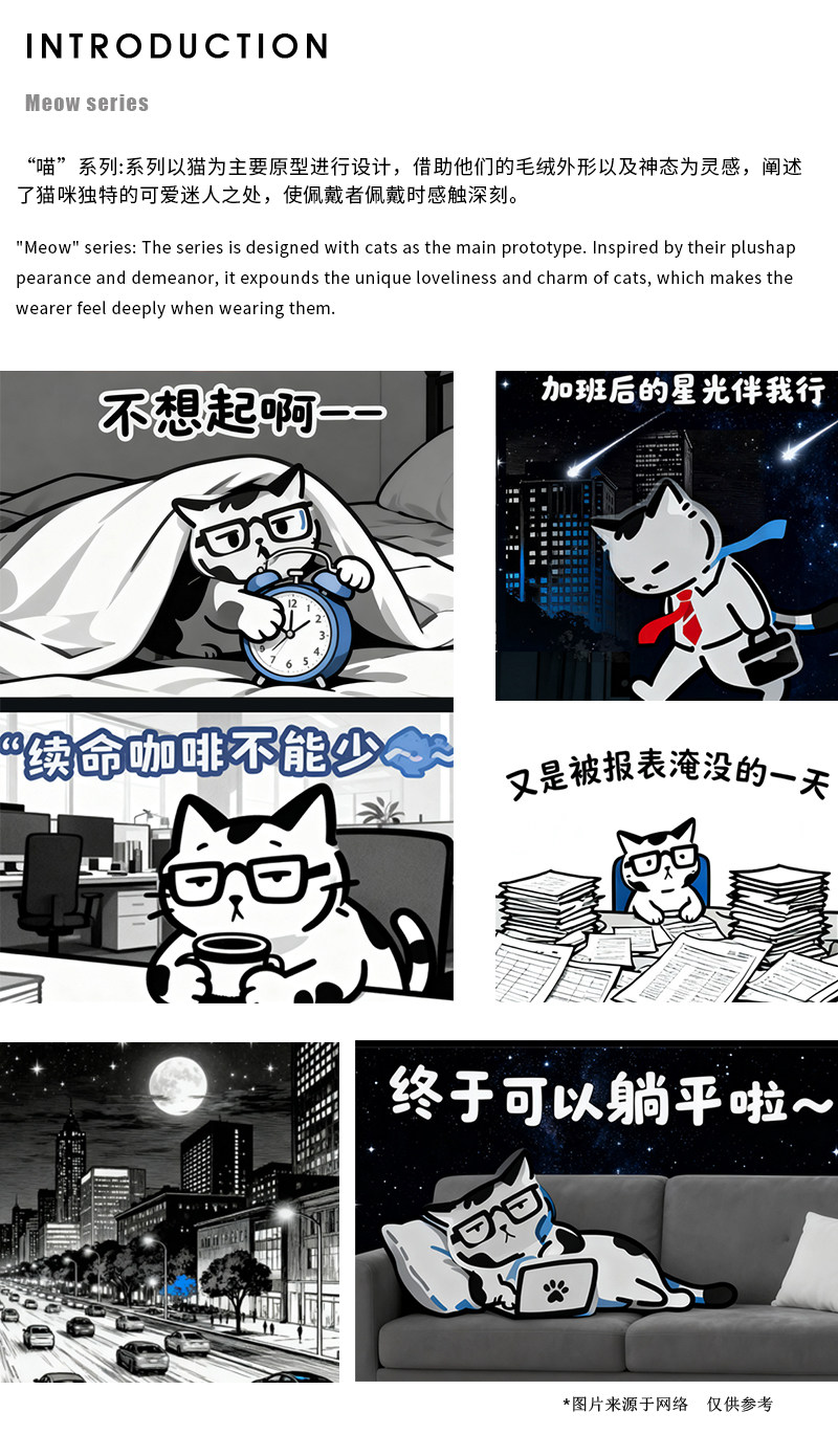 MASW麻秀原創設計喵系列創意牛馬打工喵耳釘卡通可愛貓貓耳圈耳飾