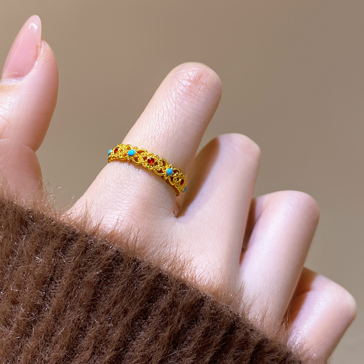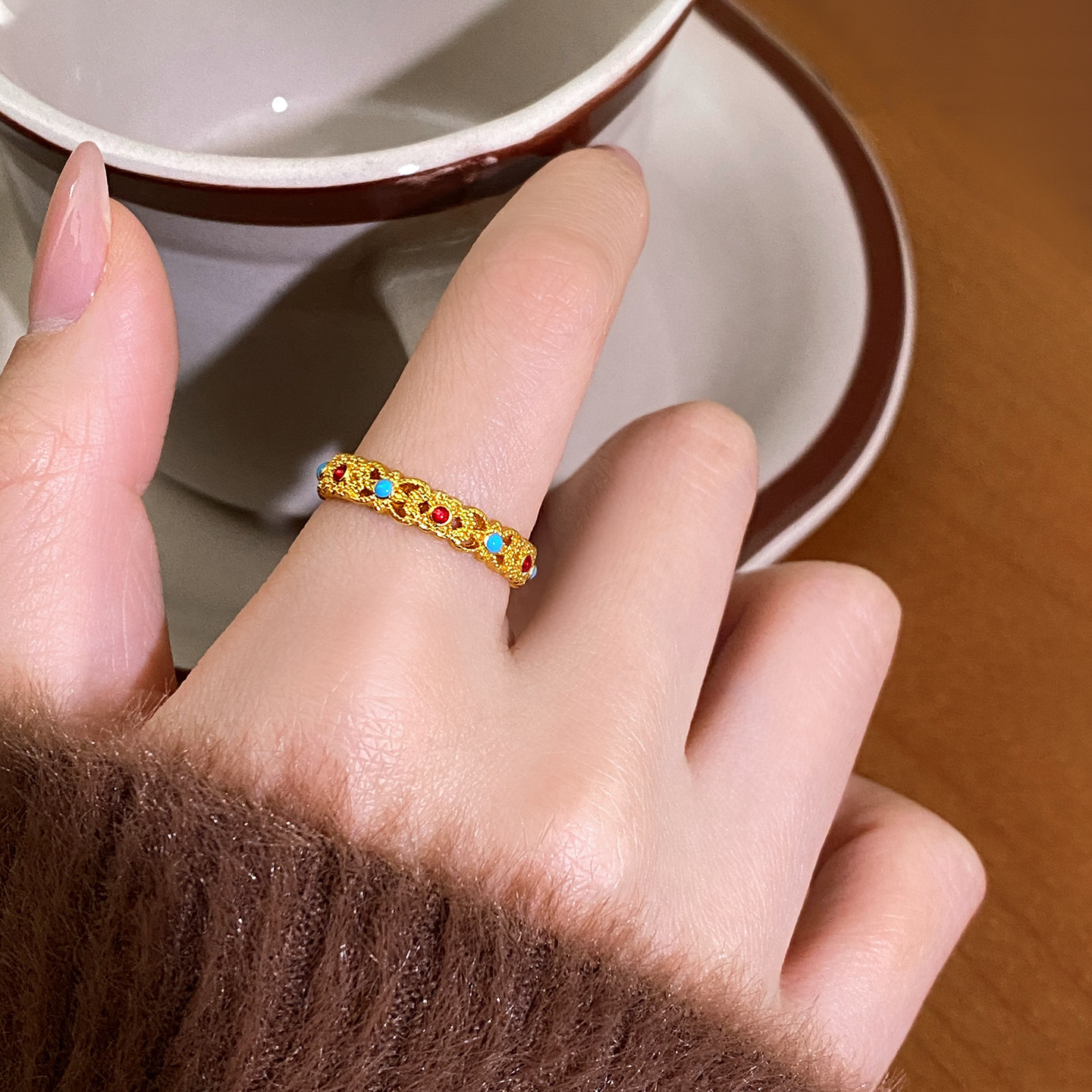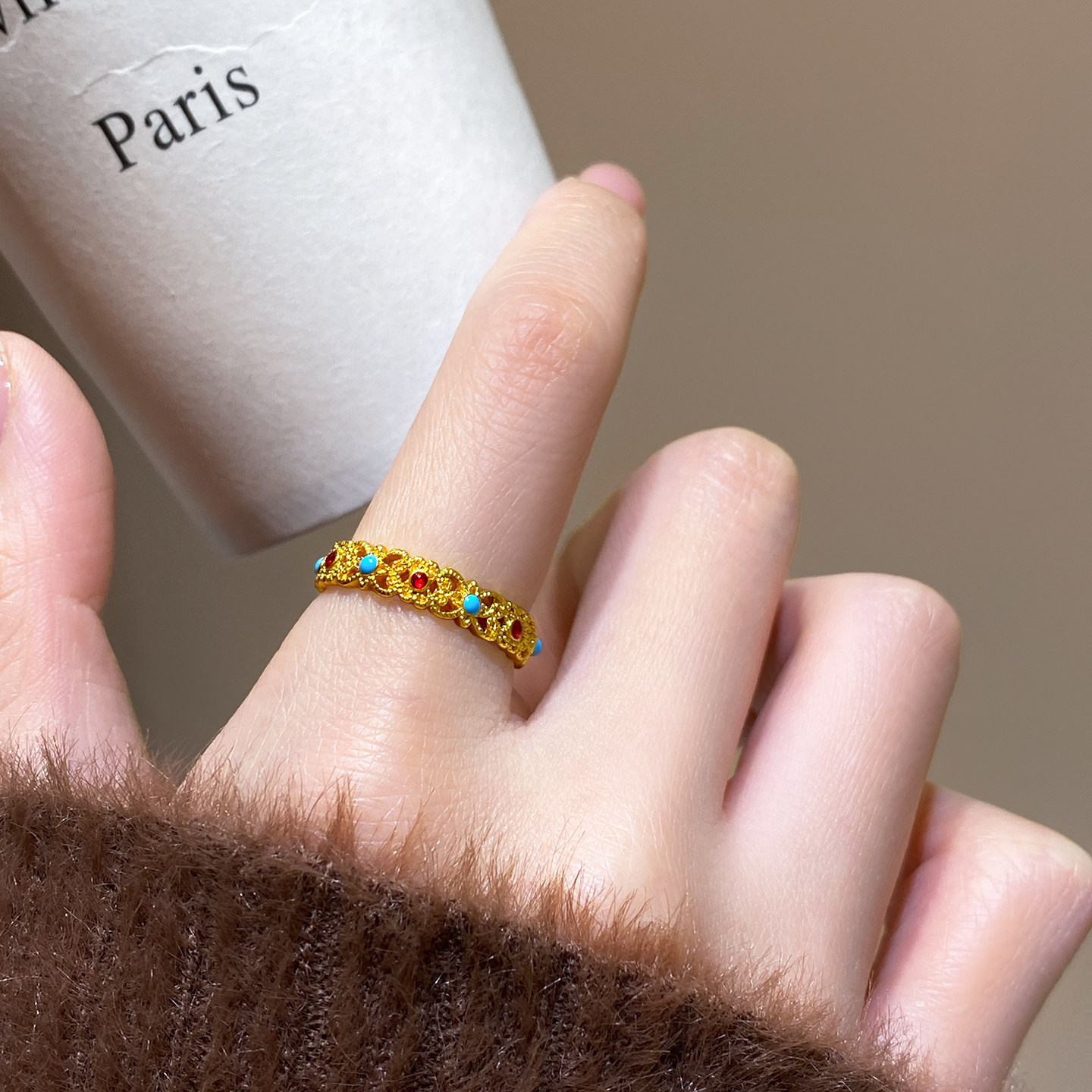 復古沙金琺瑯彩開口戒指女輕奢高級感食指環2026新款爆款設計小衆