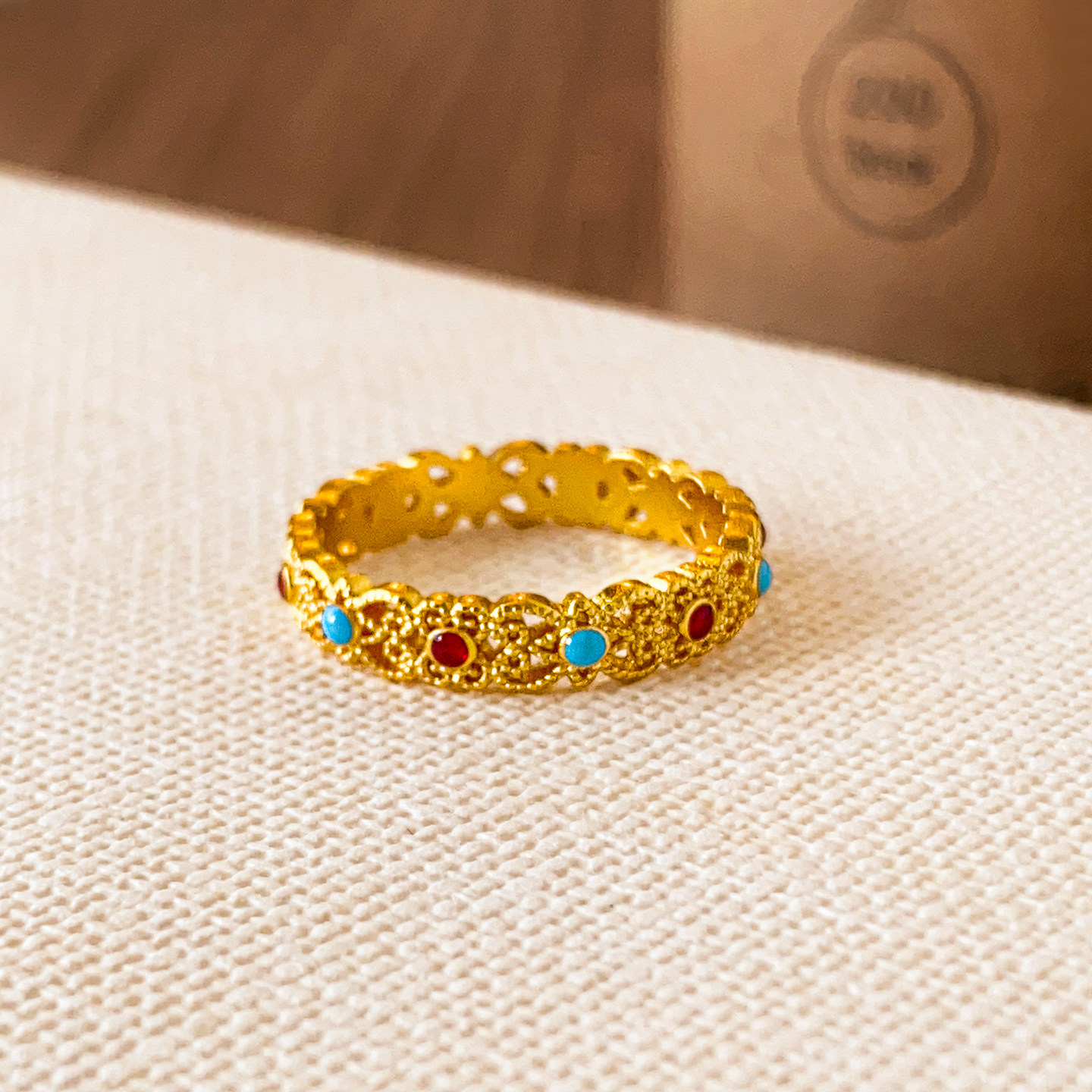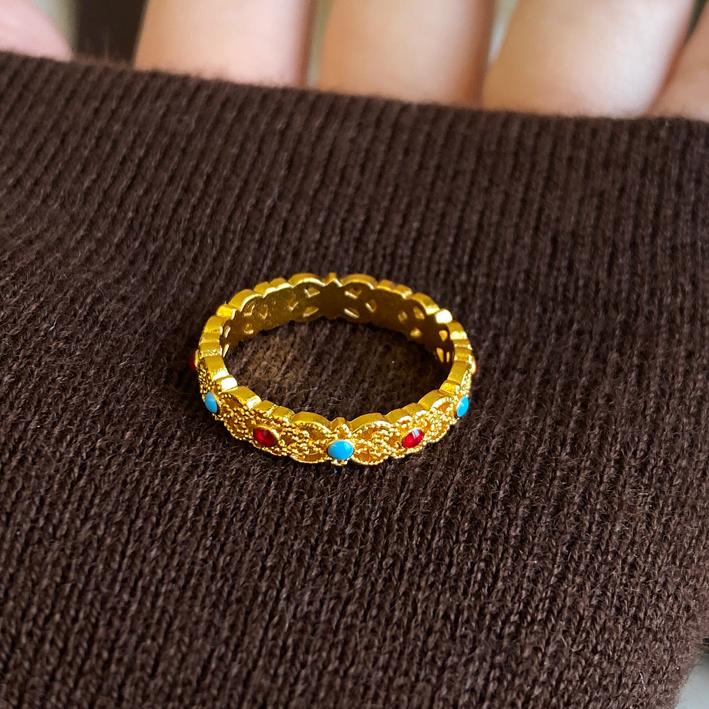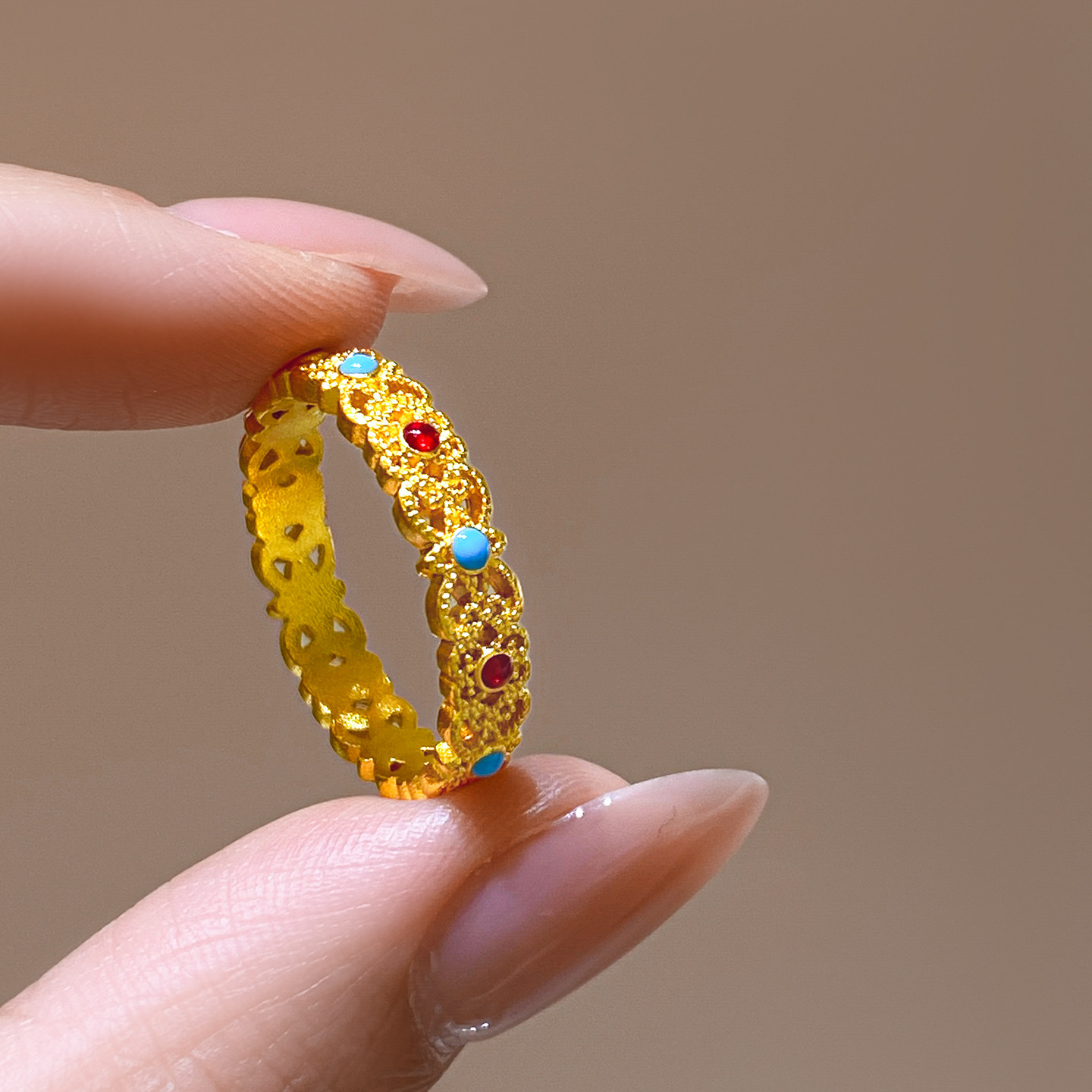 復古沙金琺瑯彩開口戒指女輕奢高級感食指環2026新款爆款設計小衆