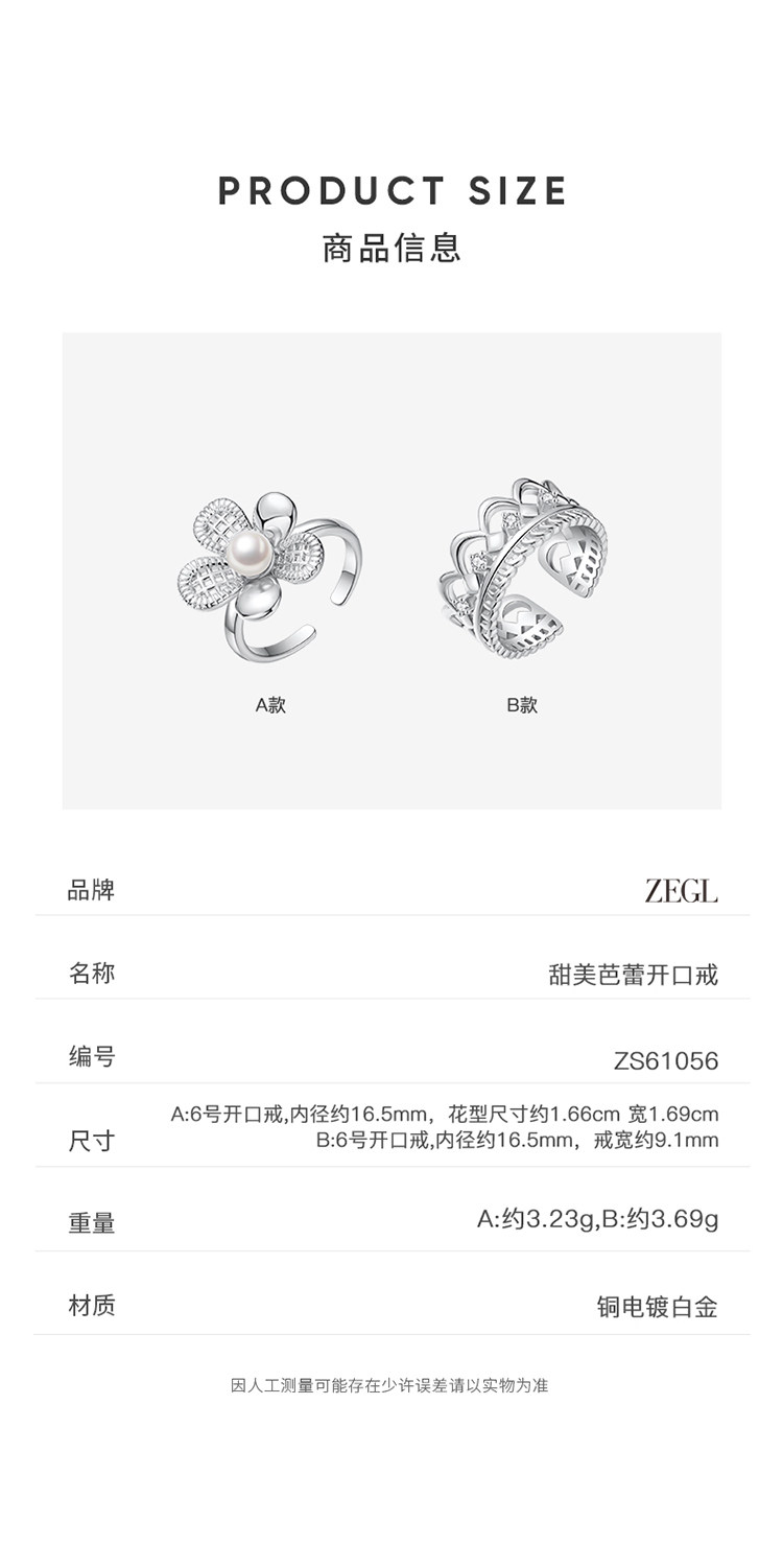 ZEGL真柳設計師芭蕾系列花朵戒指女小衆設計輕奢秋冬珍珠食指戒子