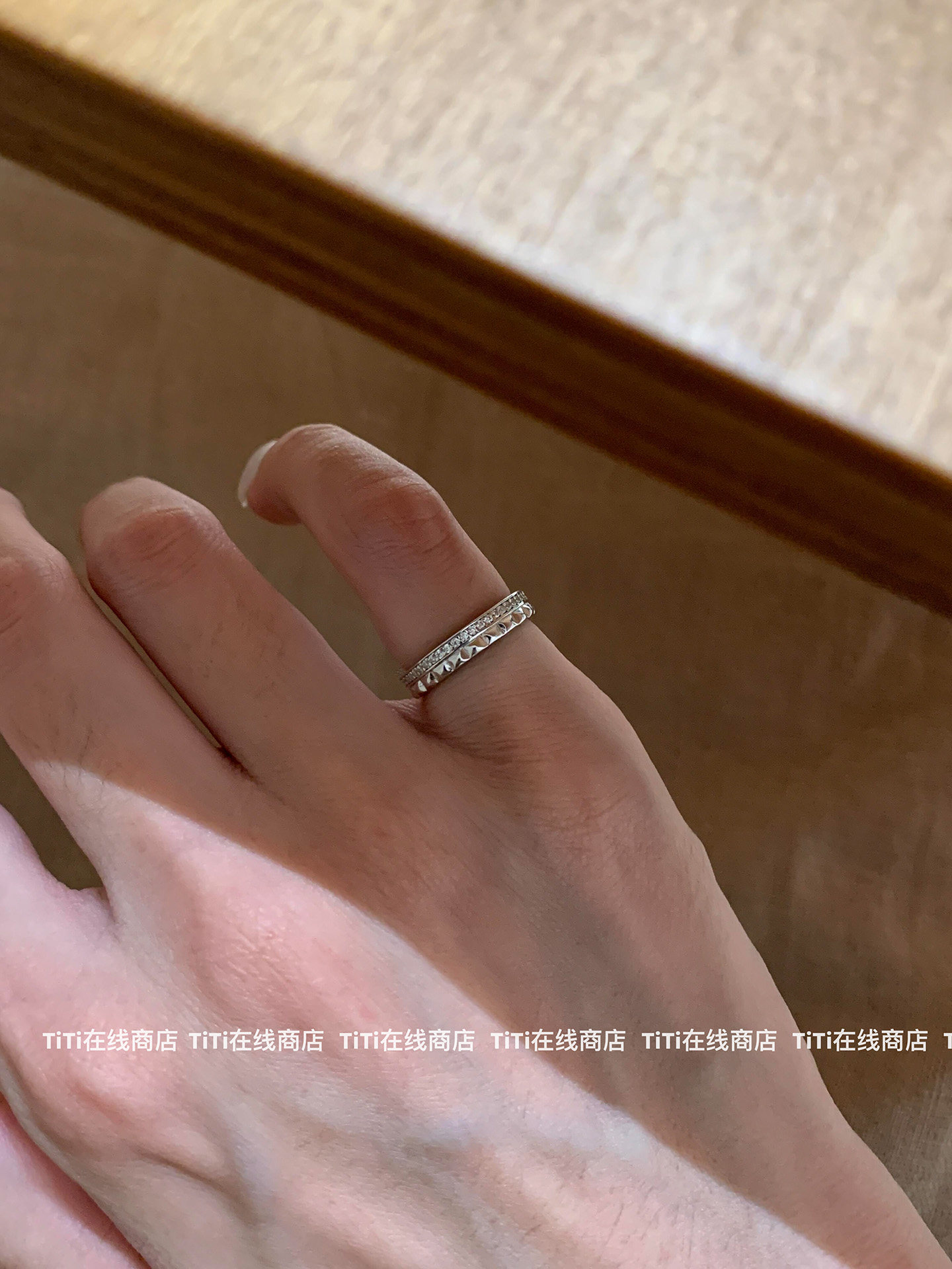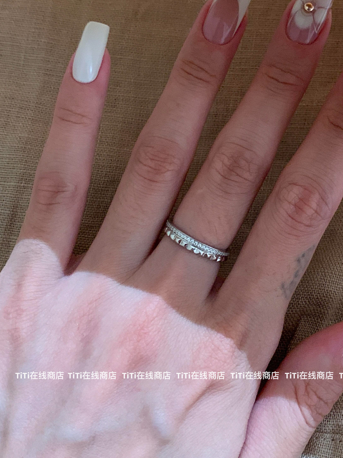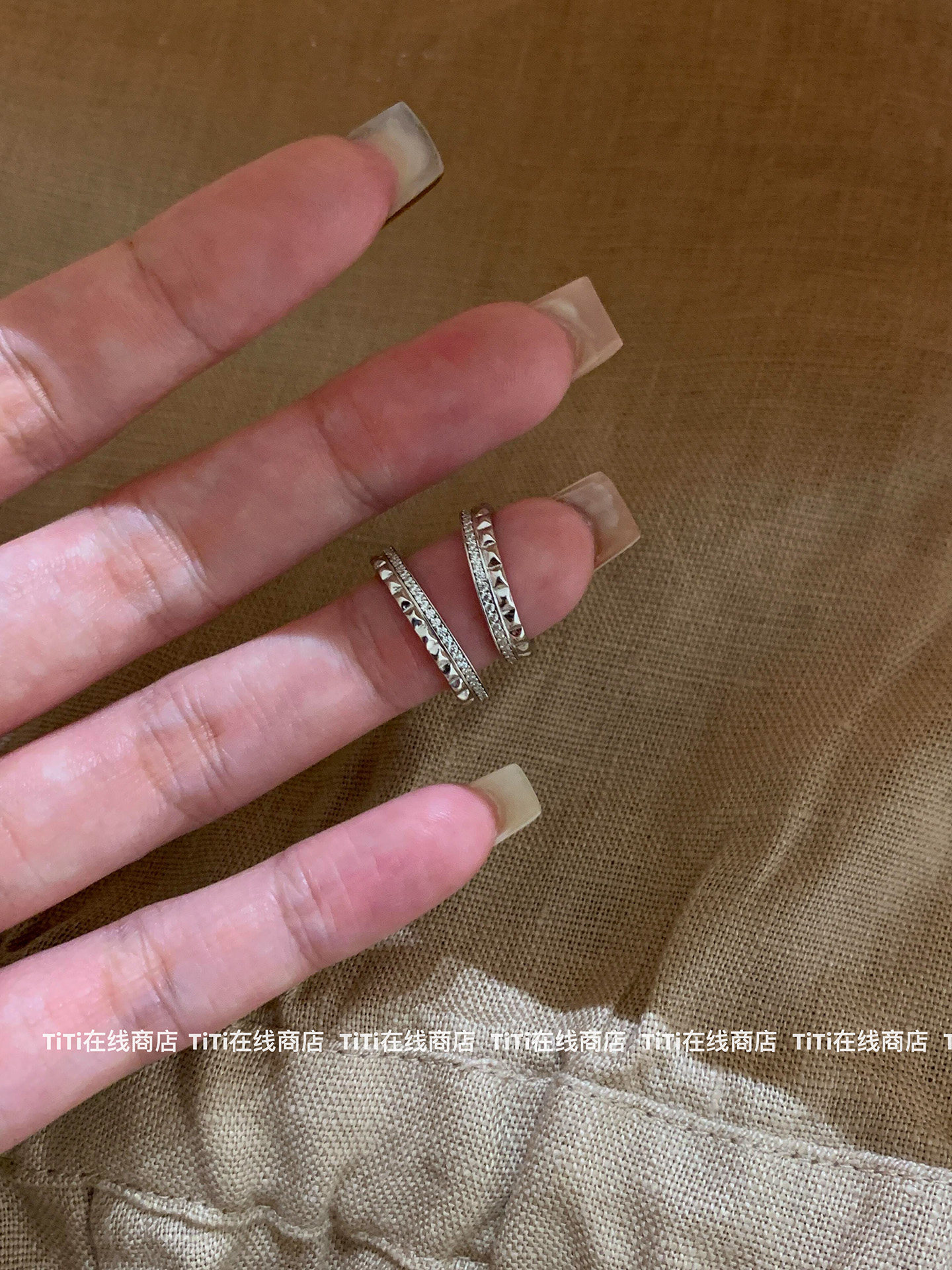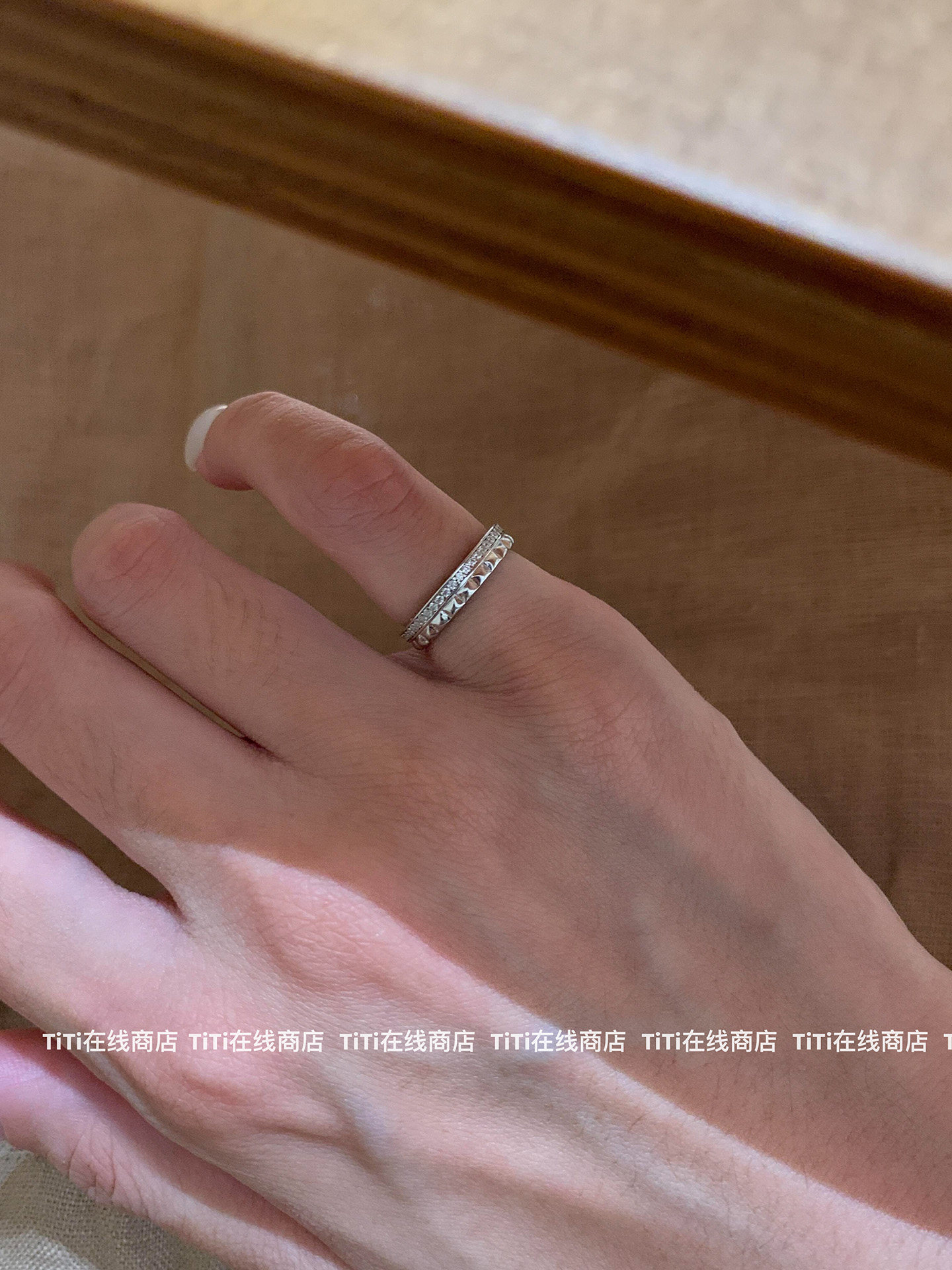 TiTi-法式菱格紋素圈戒指尾戒小衆高級感精緻時尚氣質曡戴指環