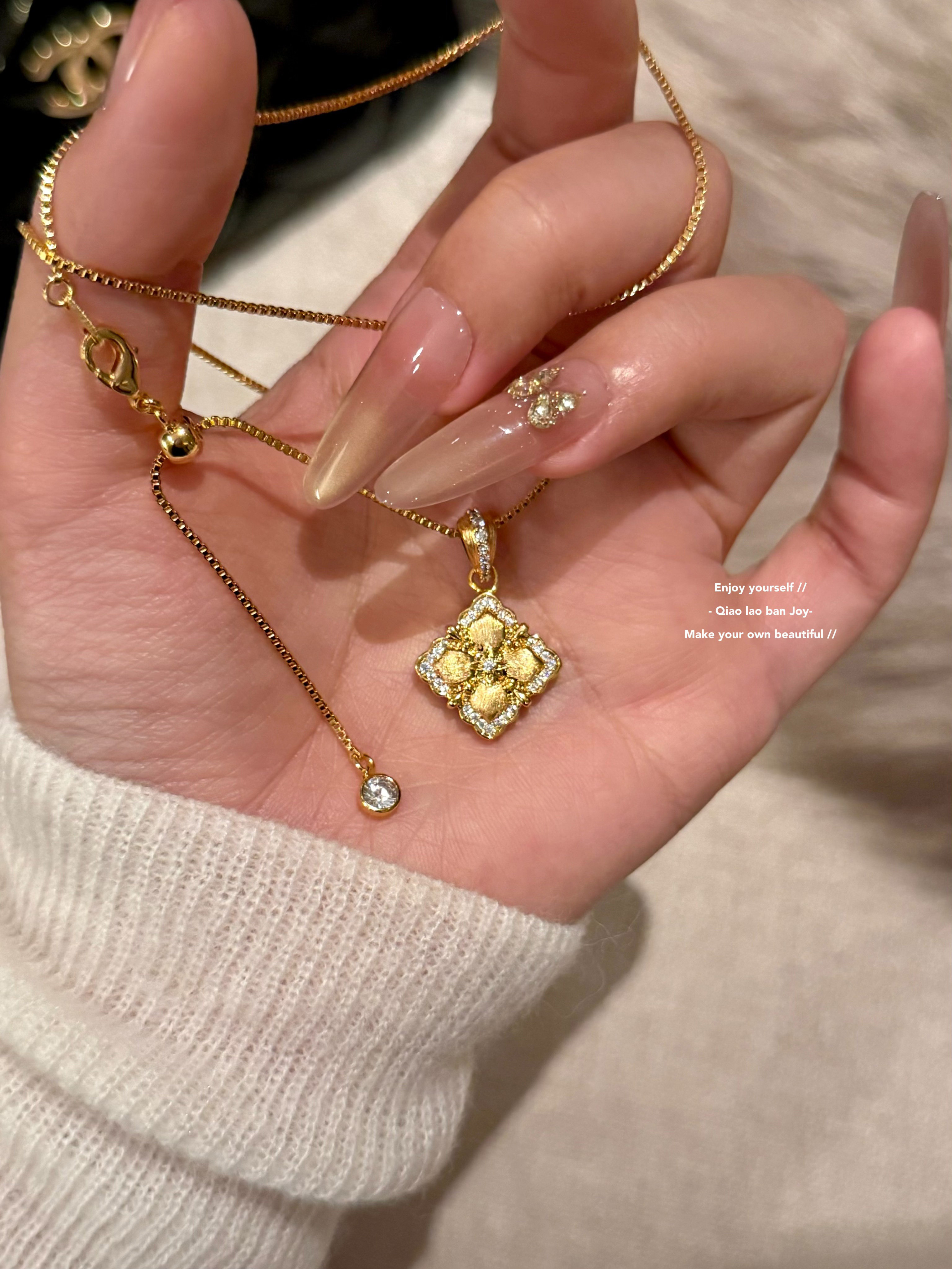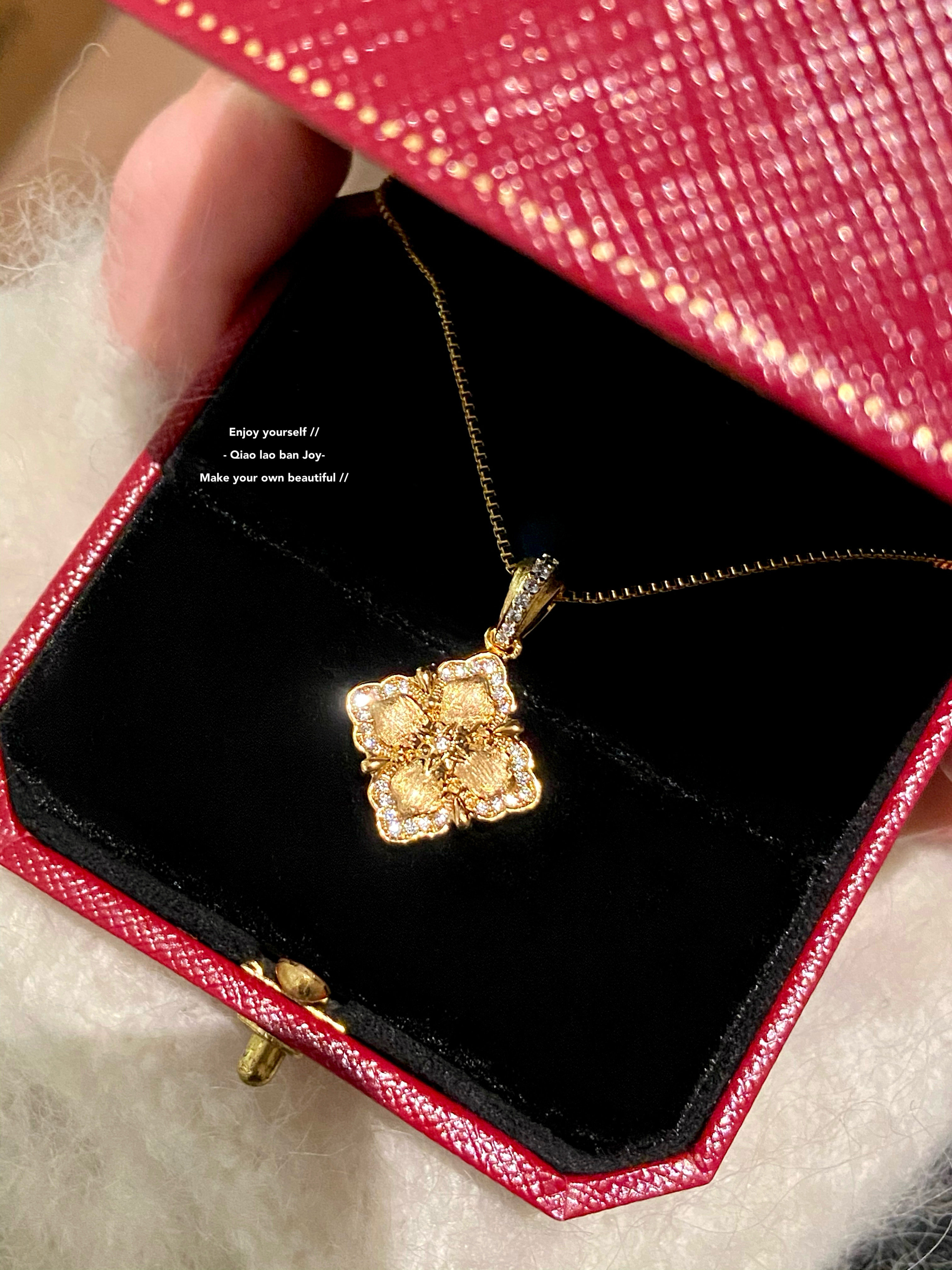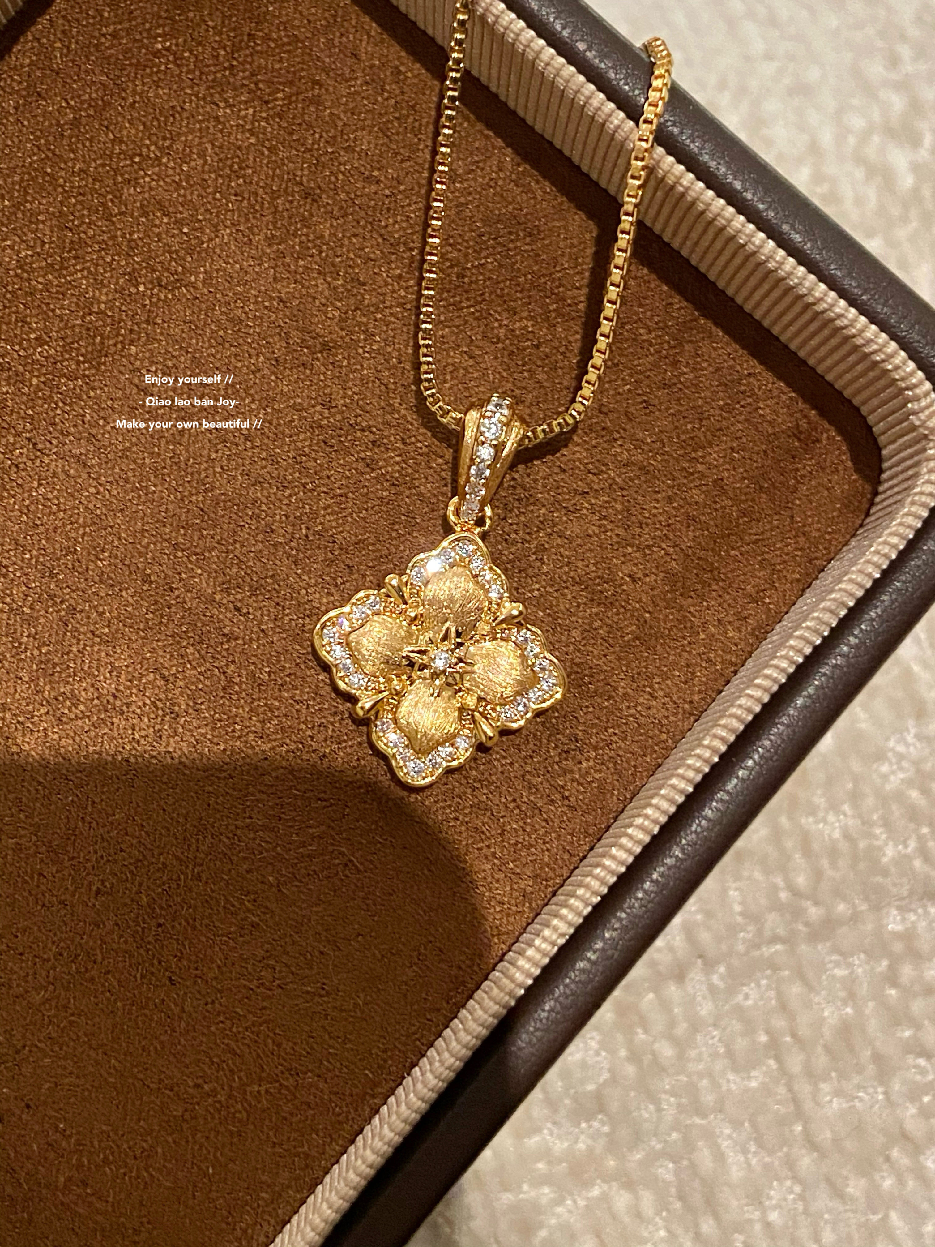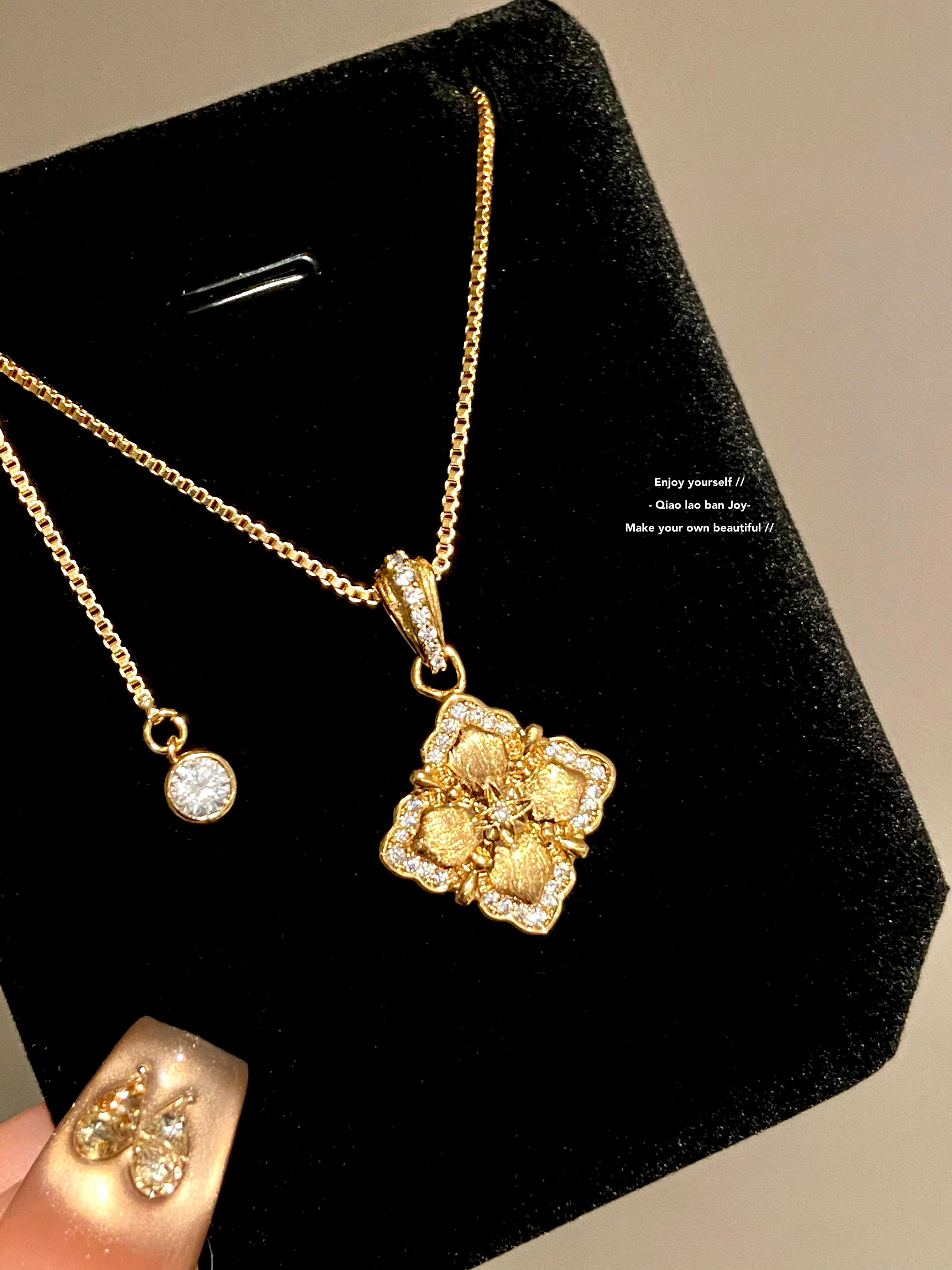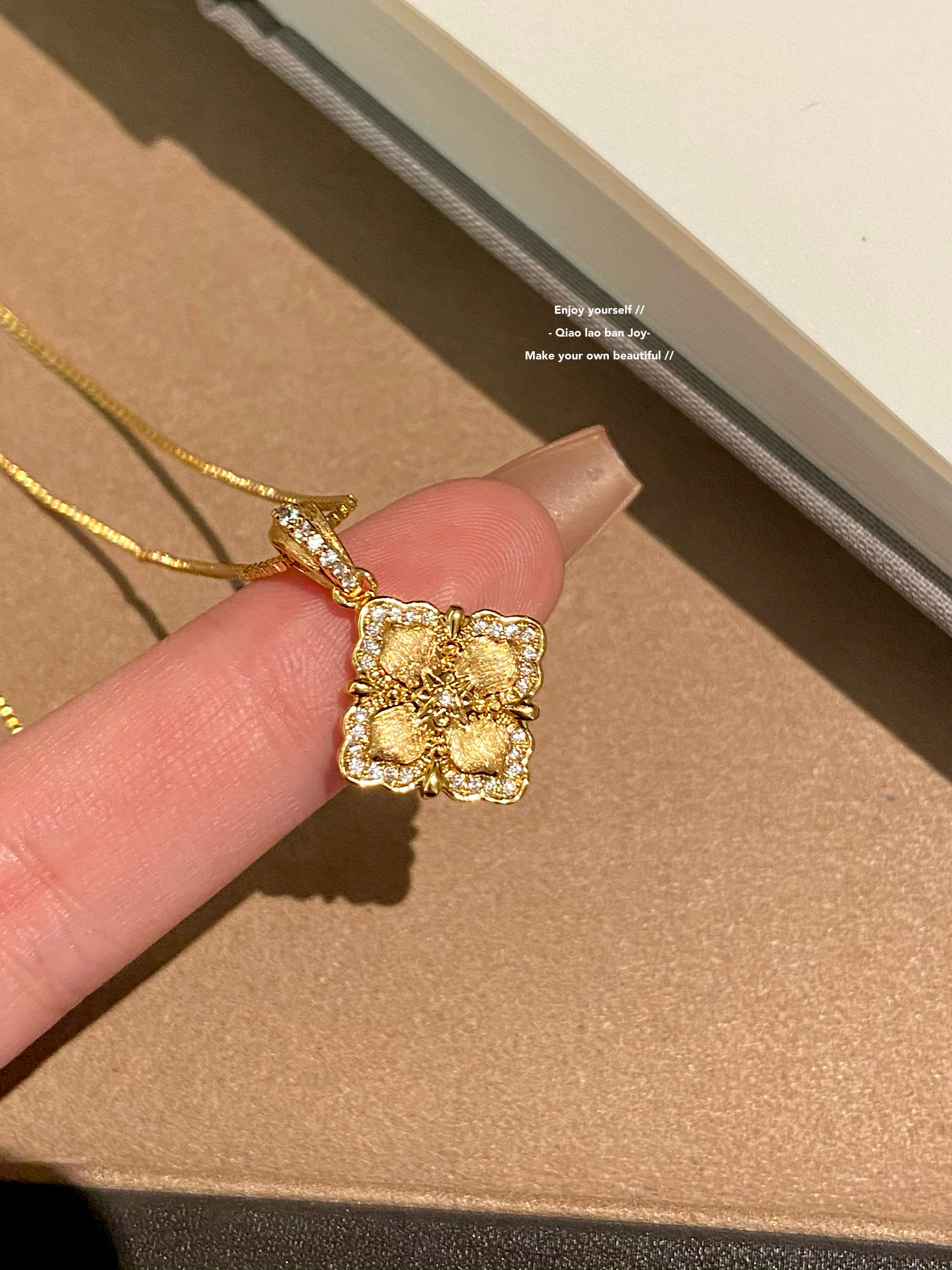 【喬老板Joy】四葉草項鍊拉絲金色雙面閃鑽鎖骨鍊復古宮廷布契潮