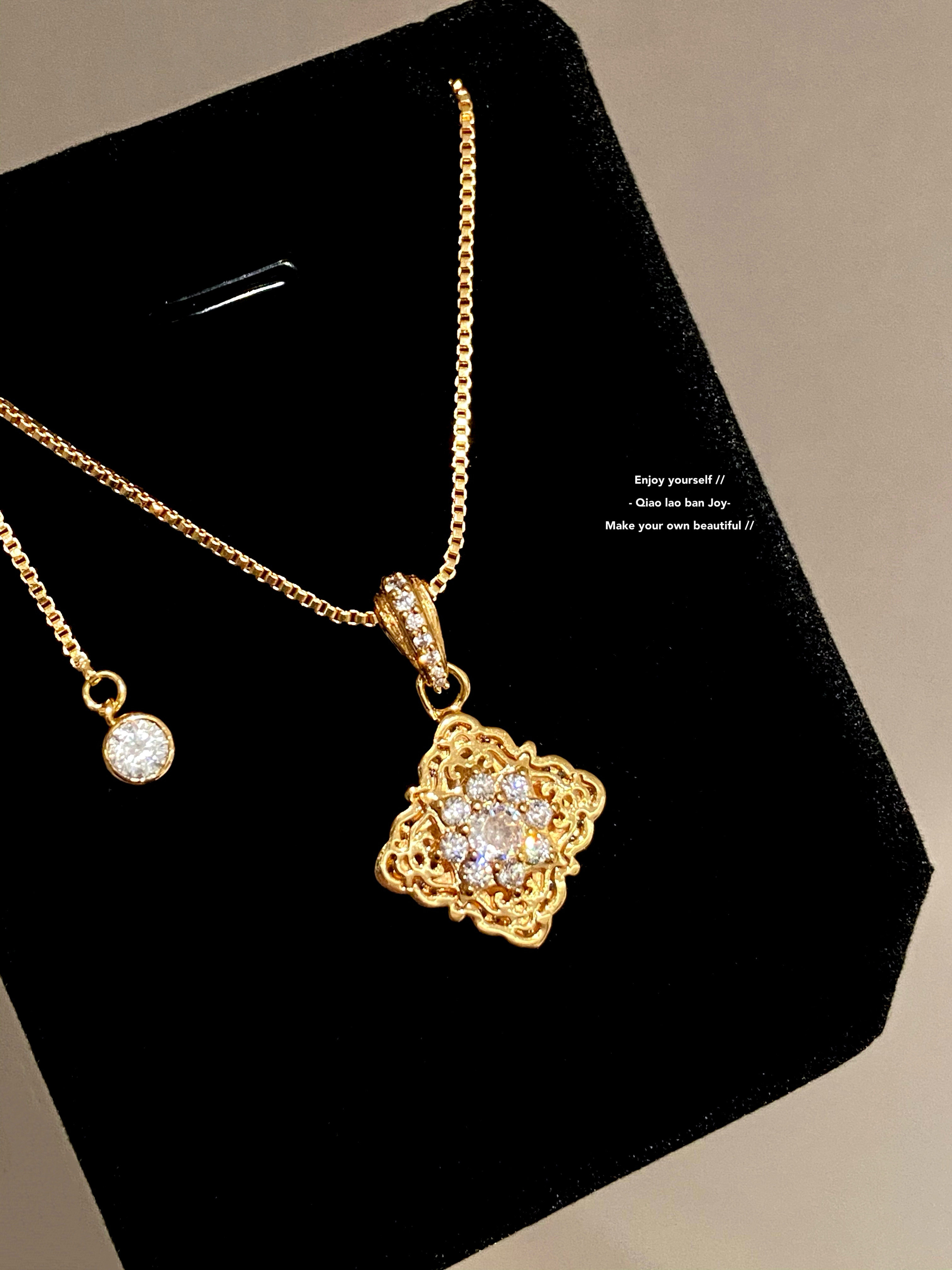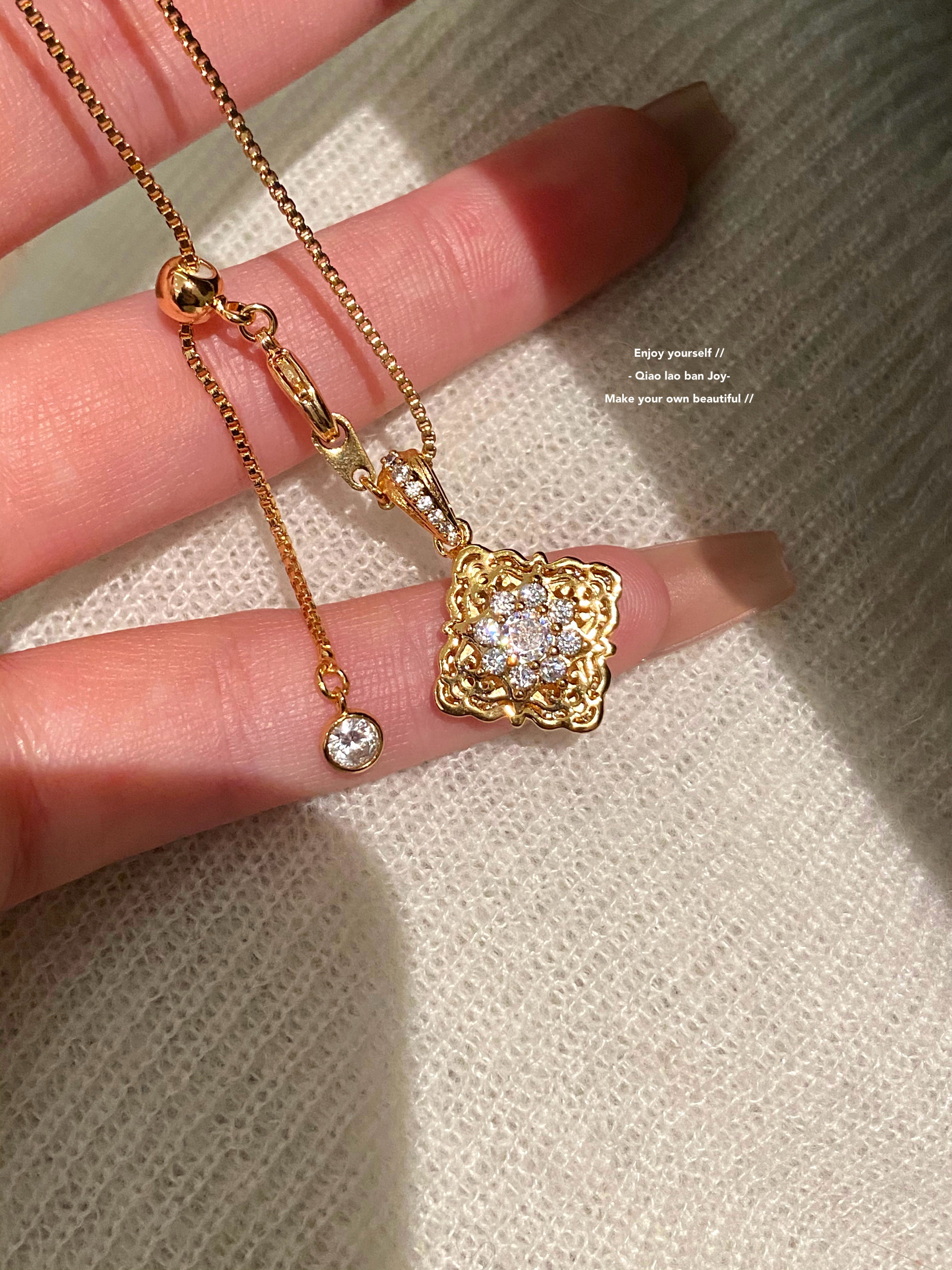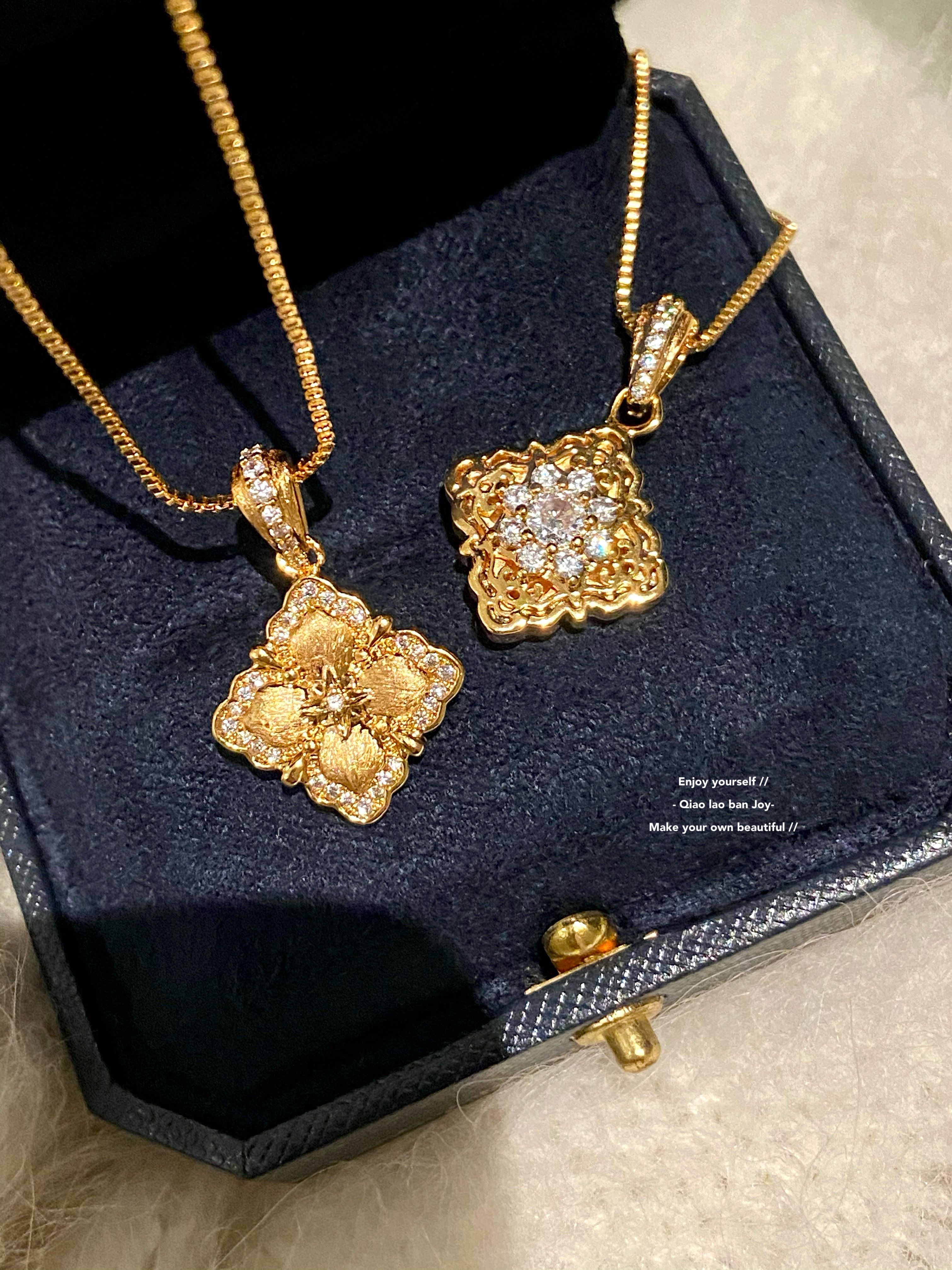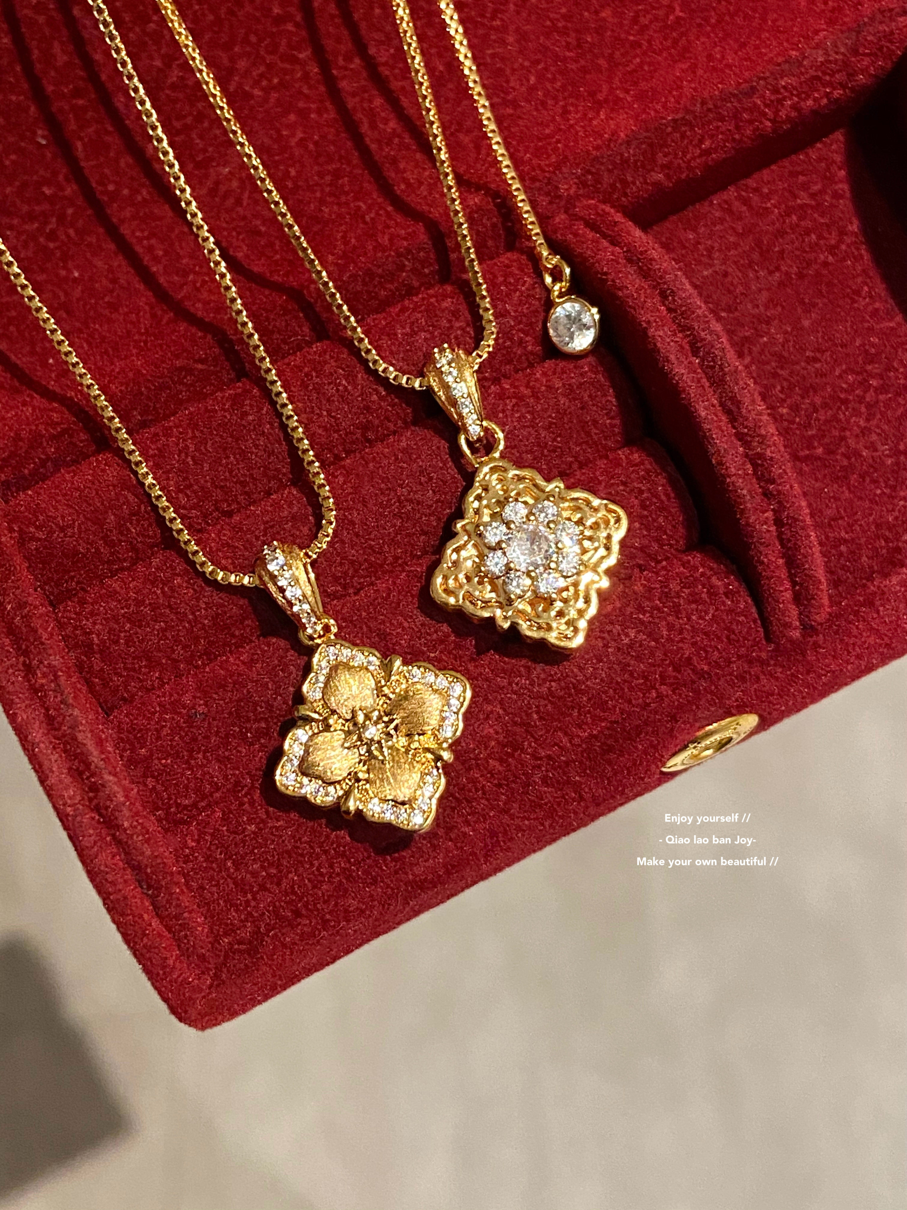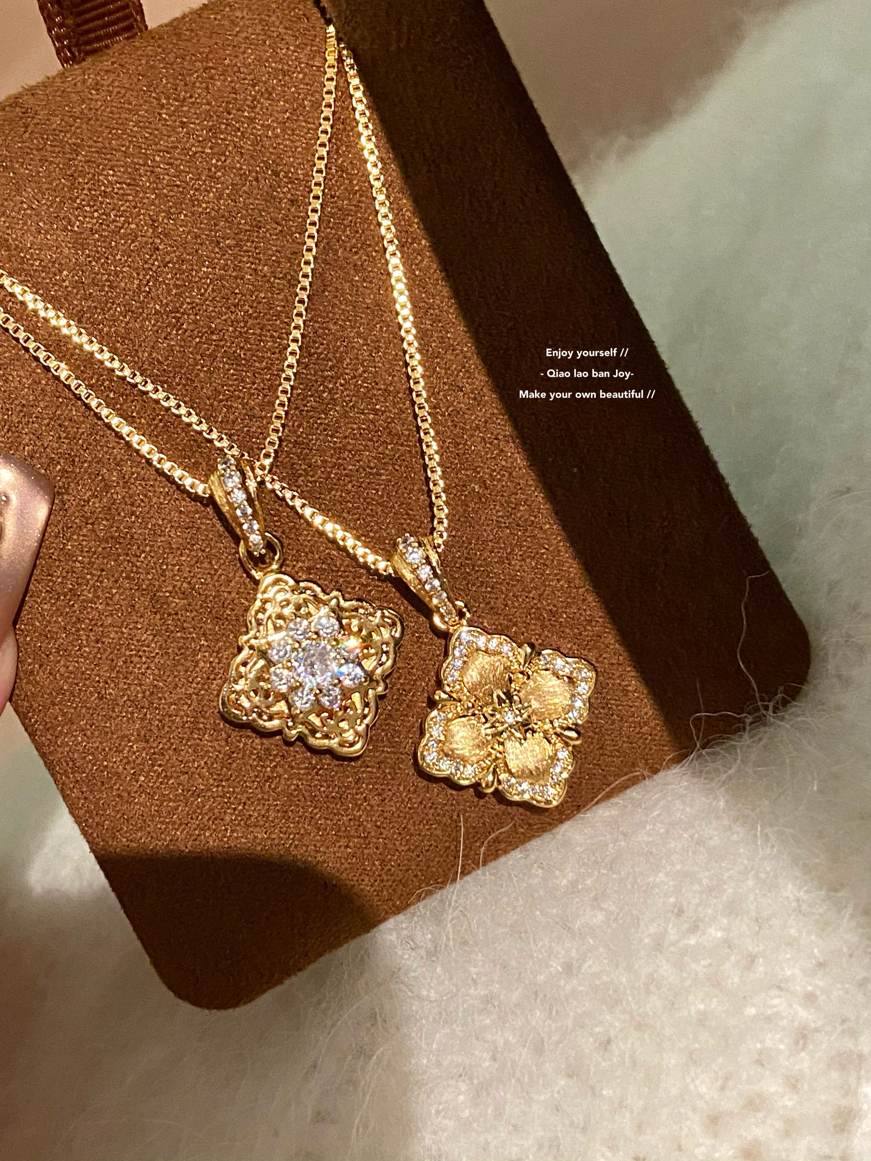 【喬老板Joy】四葉草項鍊拉絲金色雙面閃鑽鎖骨鍊復古宮廷布契潮