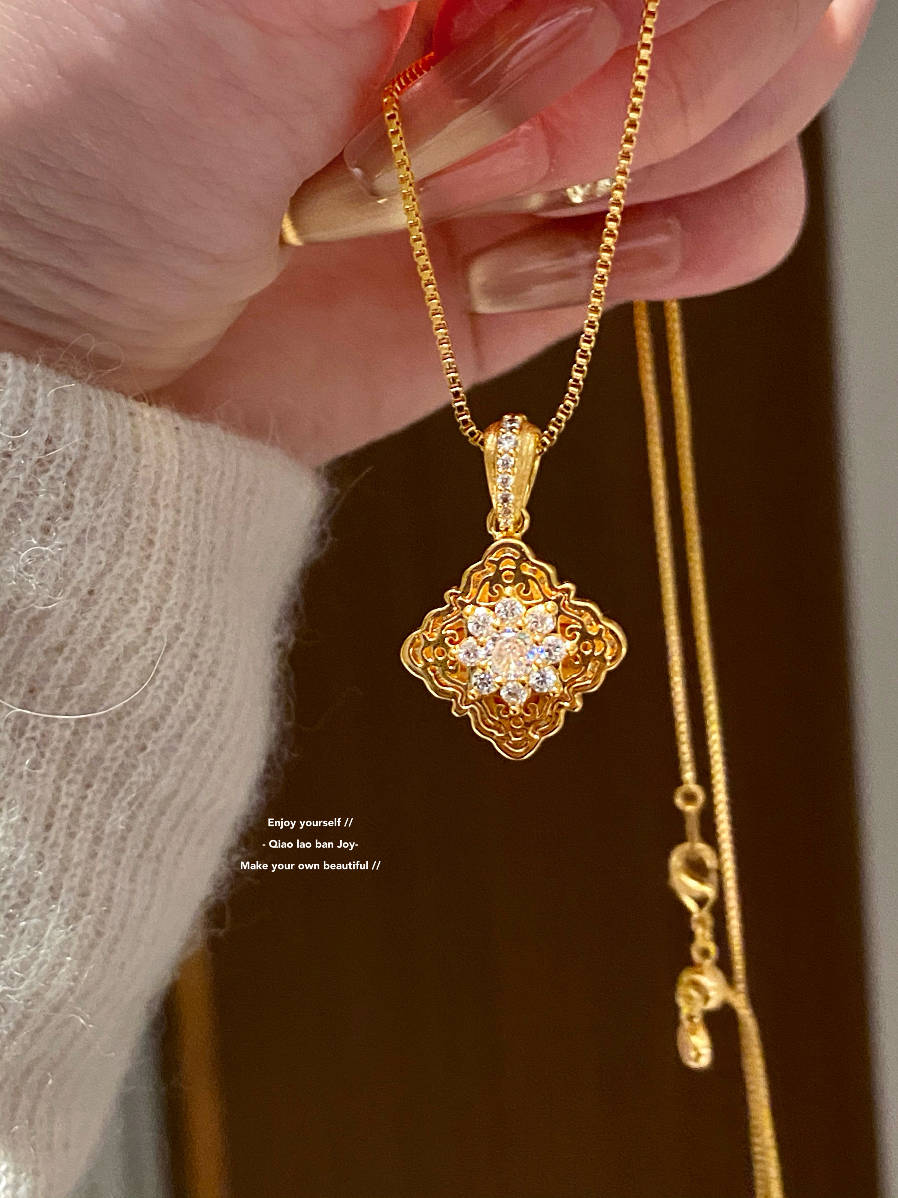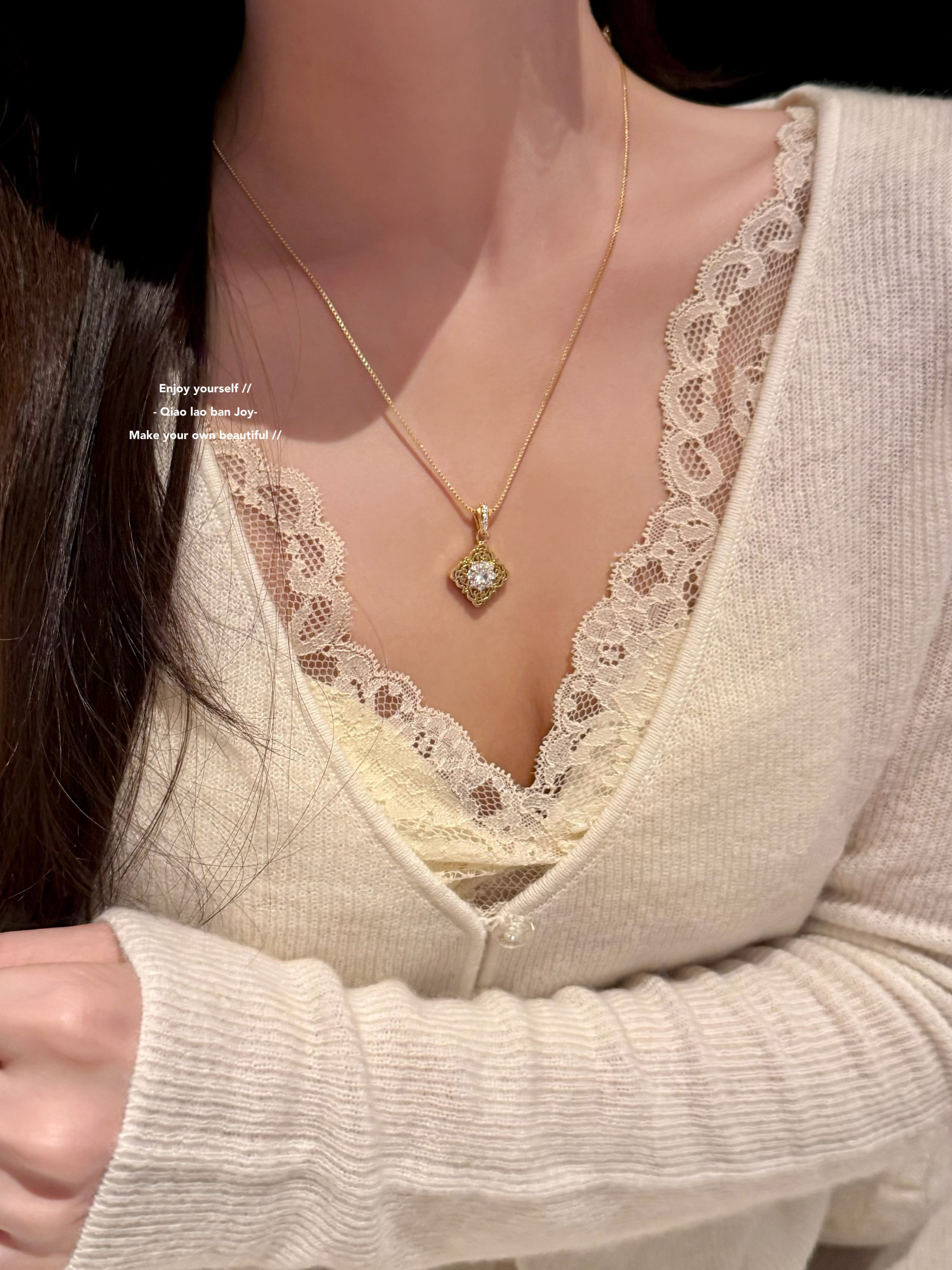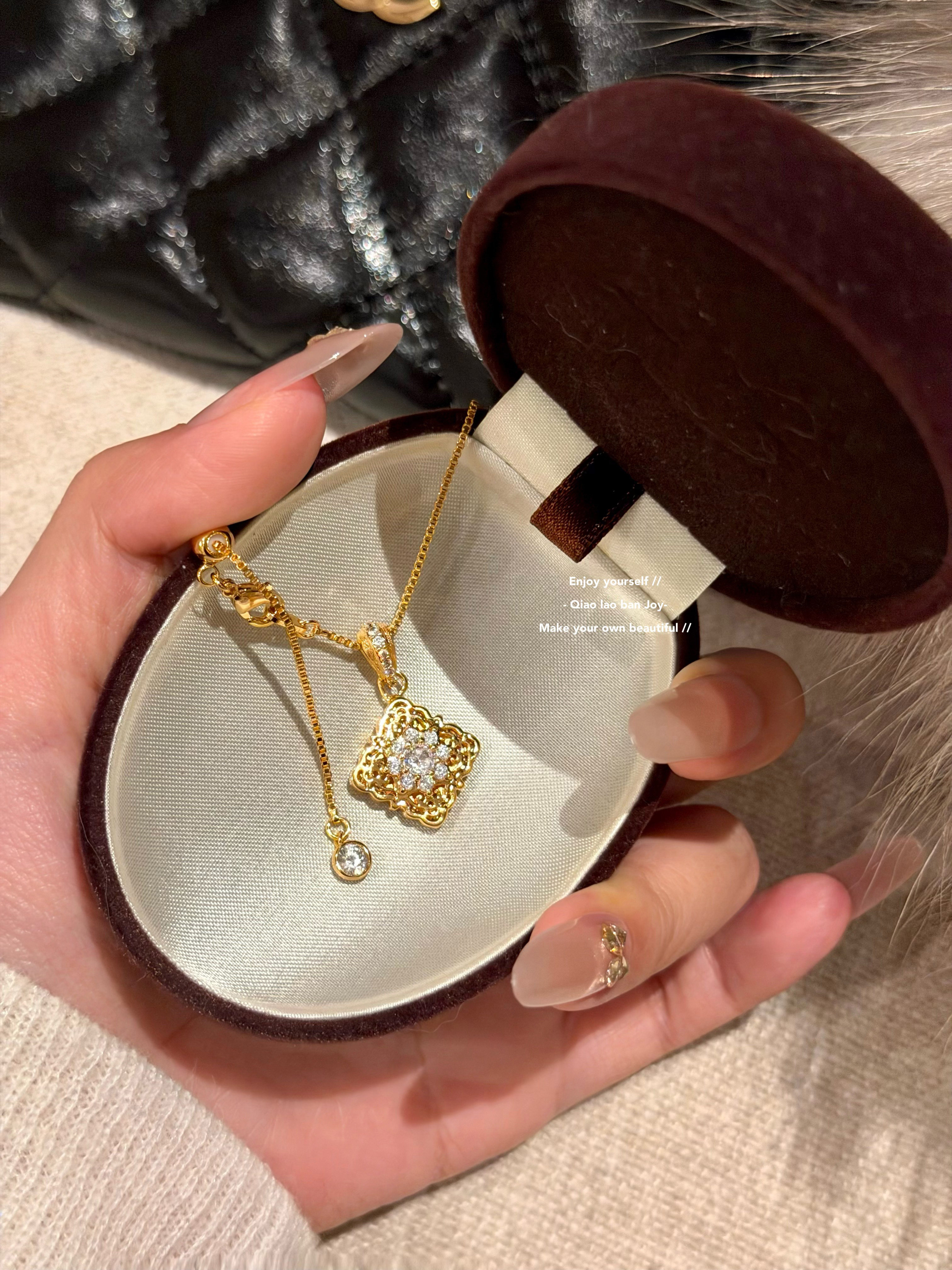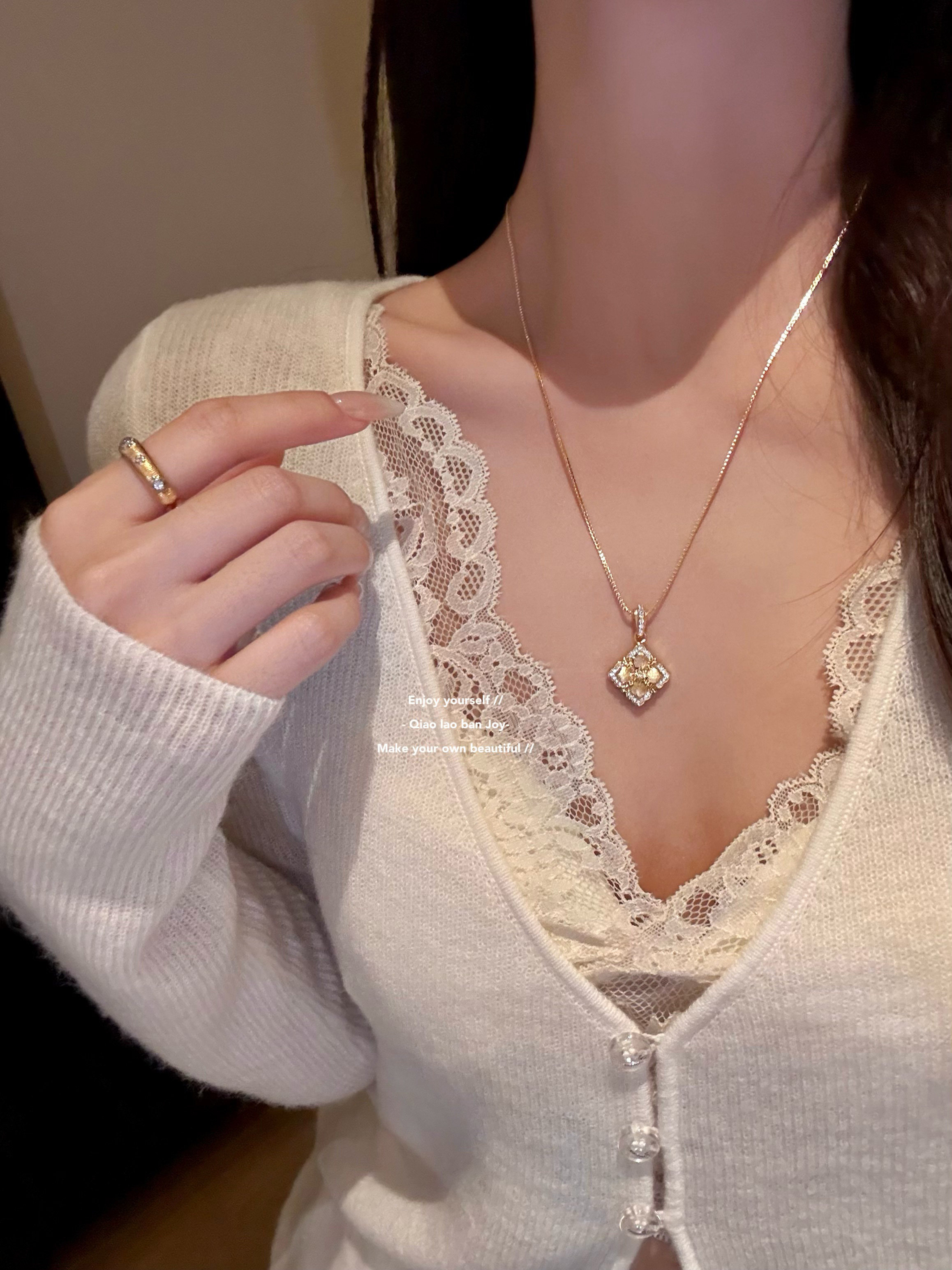 【喬老板Joy】四葉草項鍊拉絲金色雙面閃鑽鎖骨鍊復古宮廷布契潮