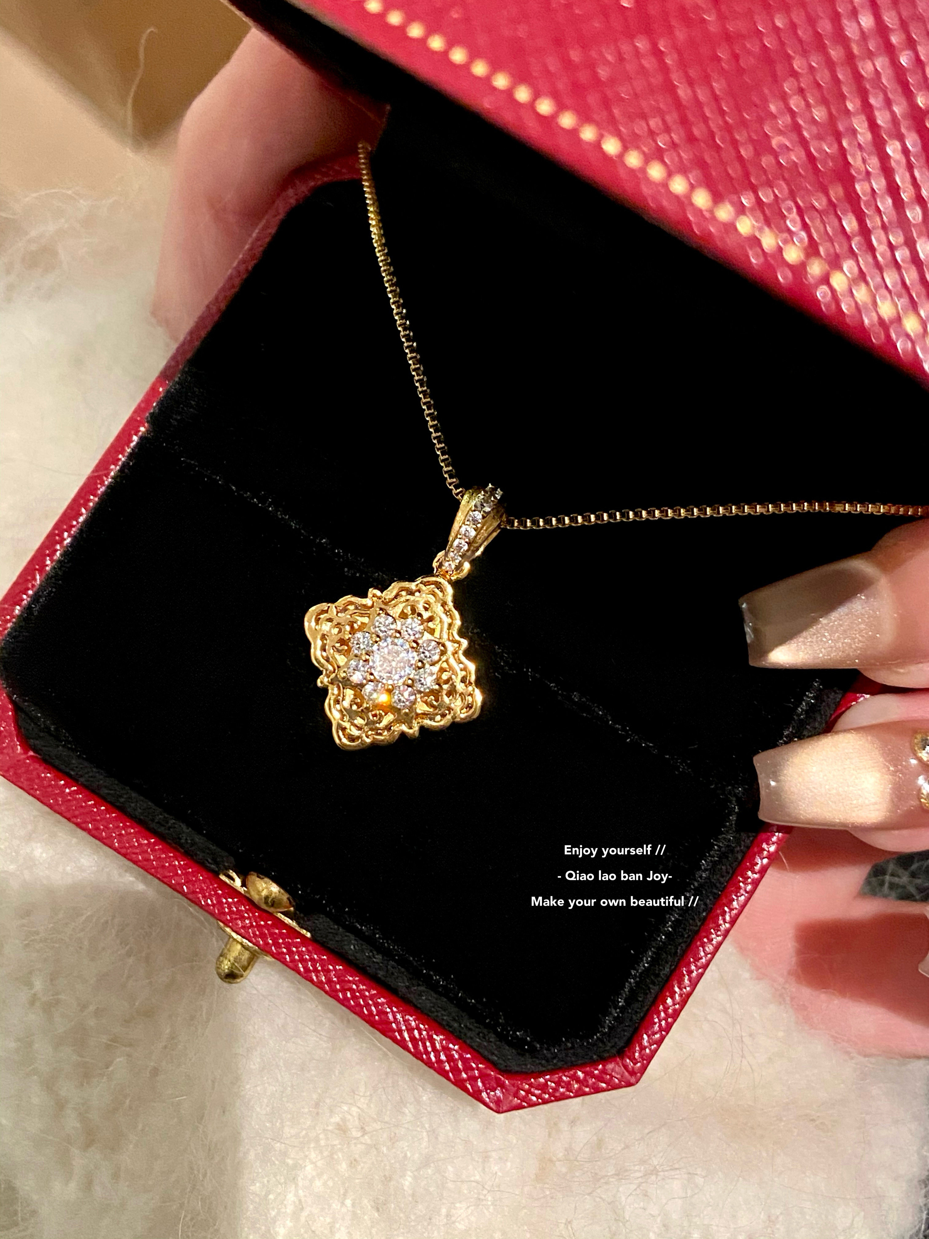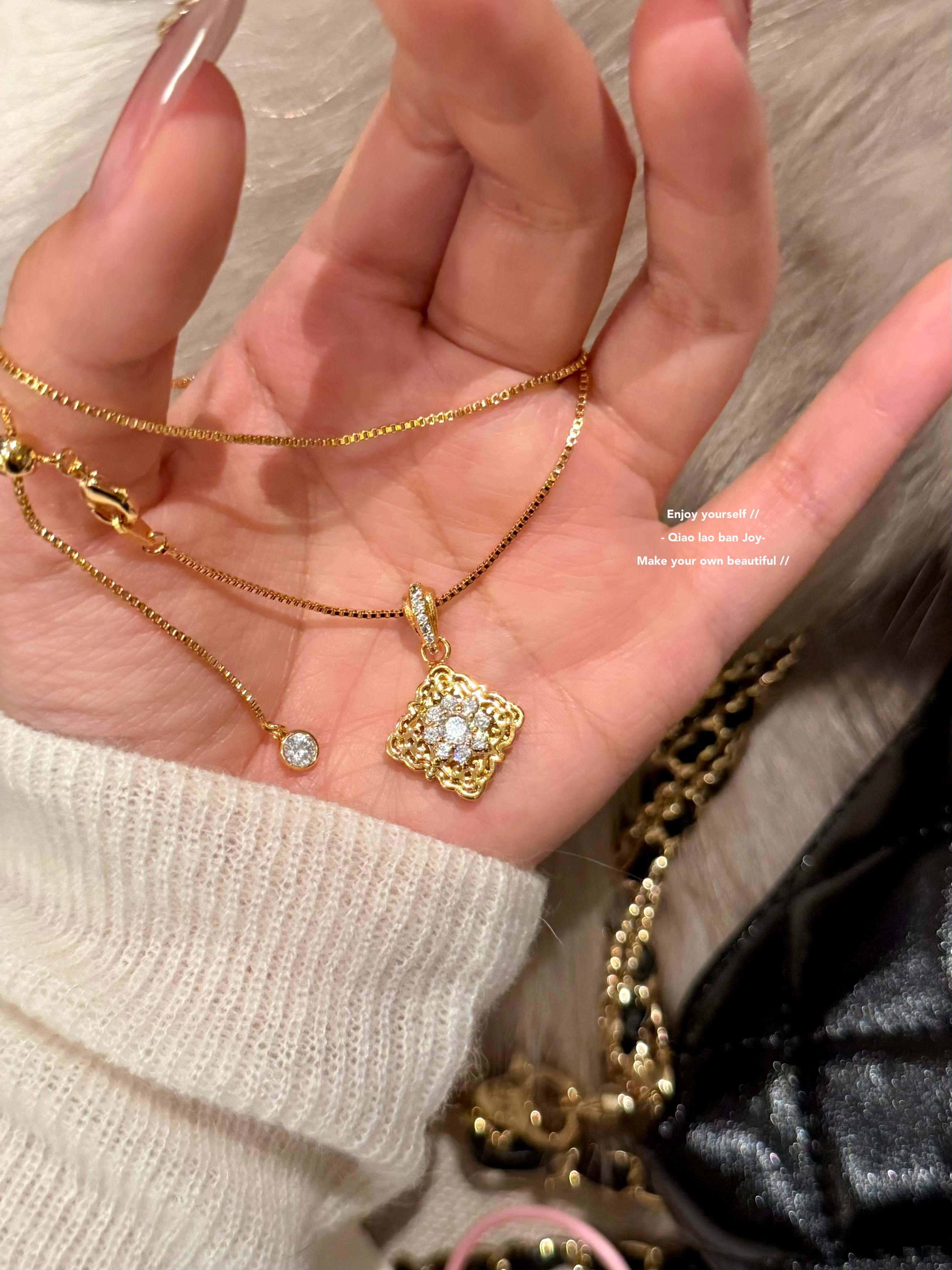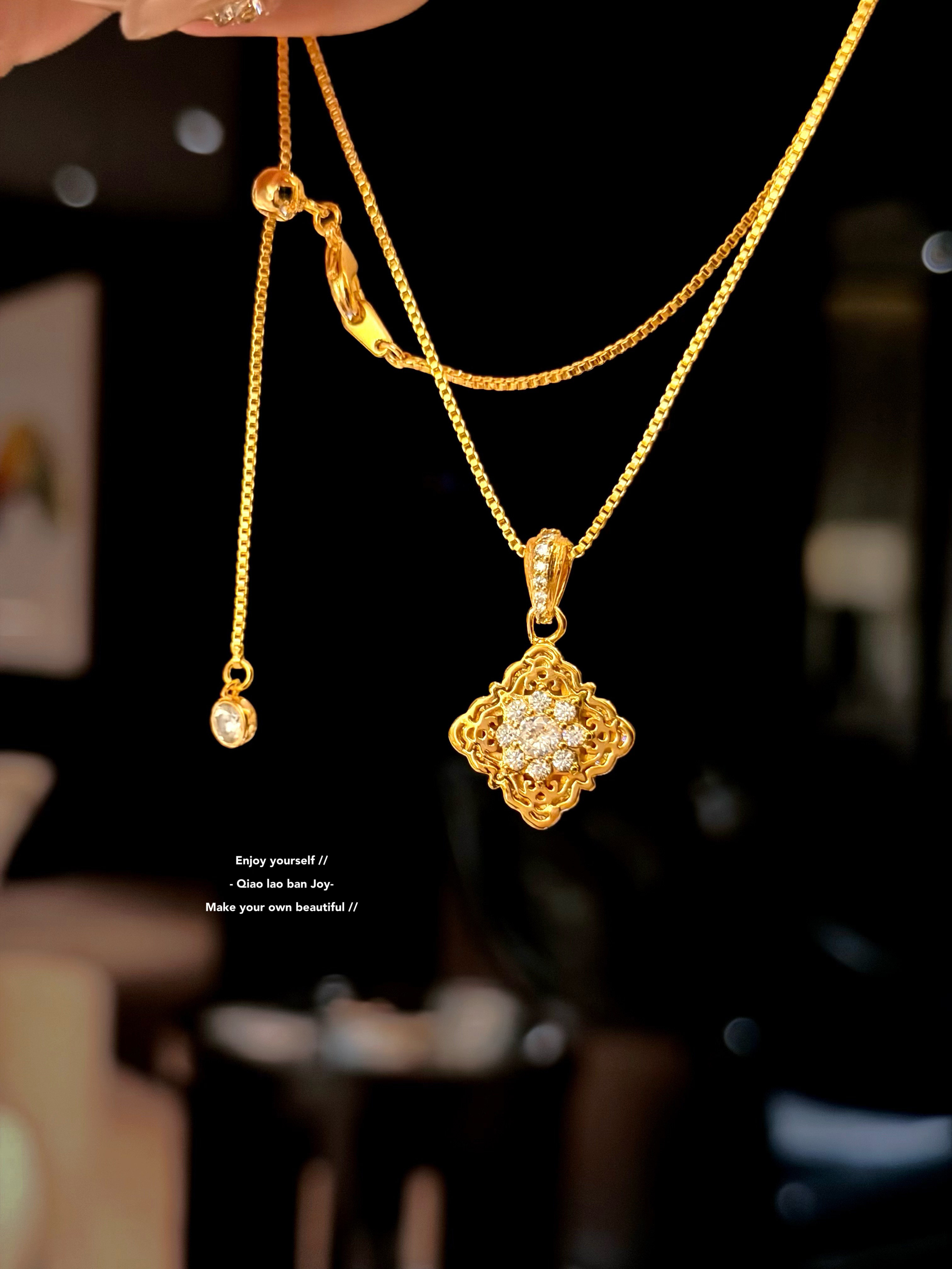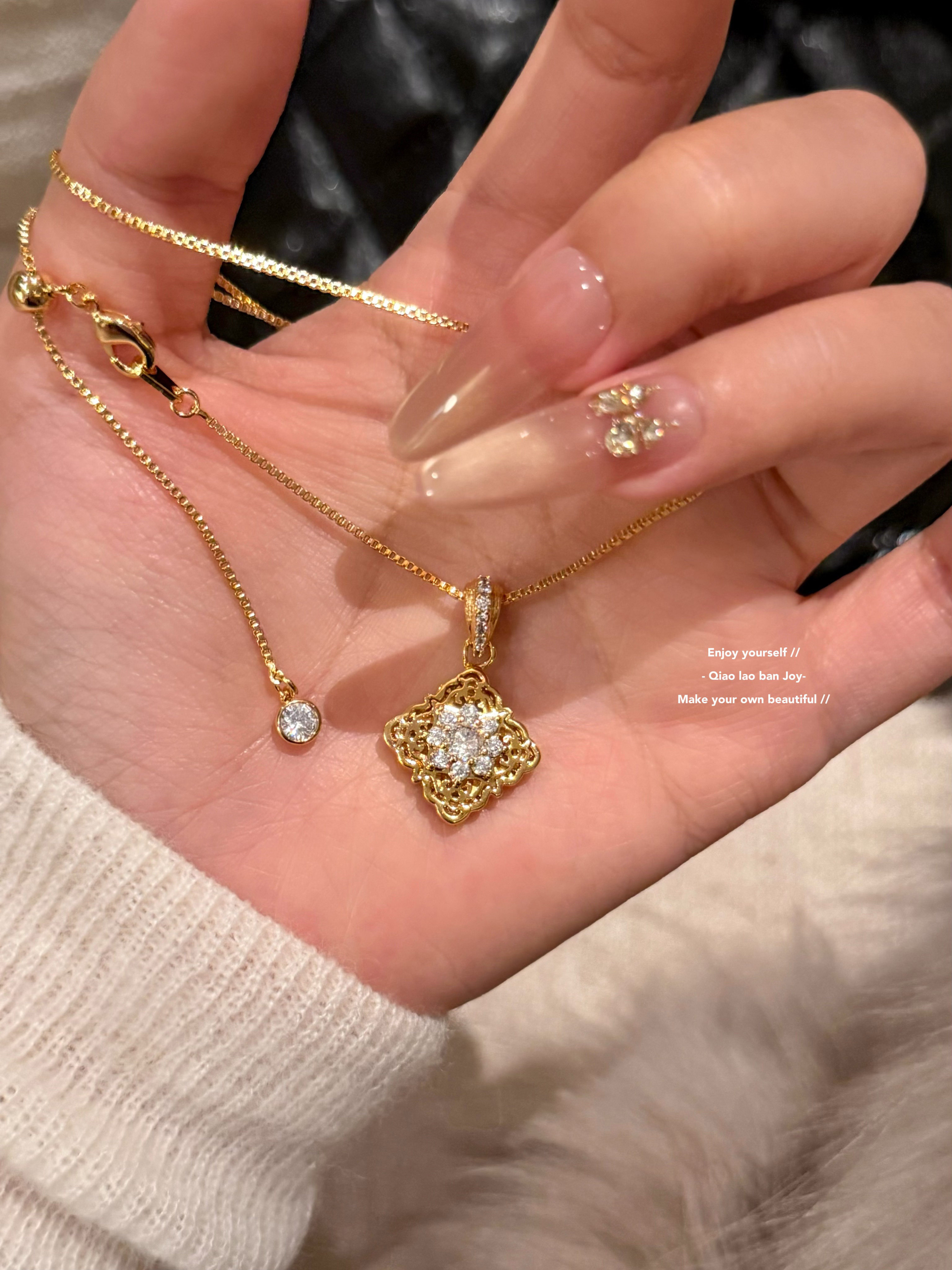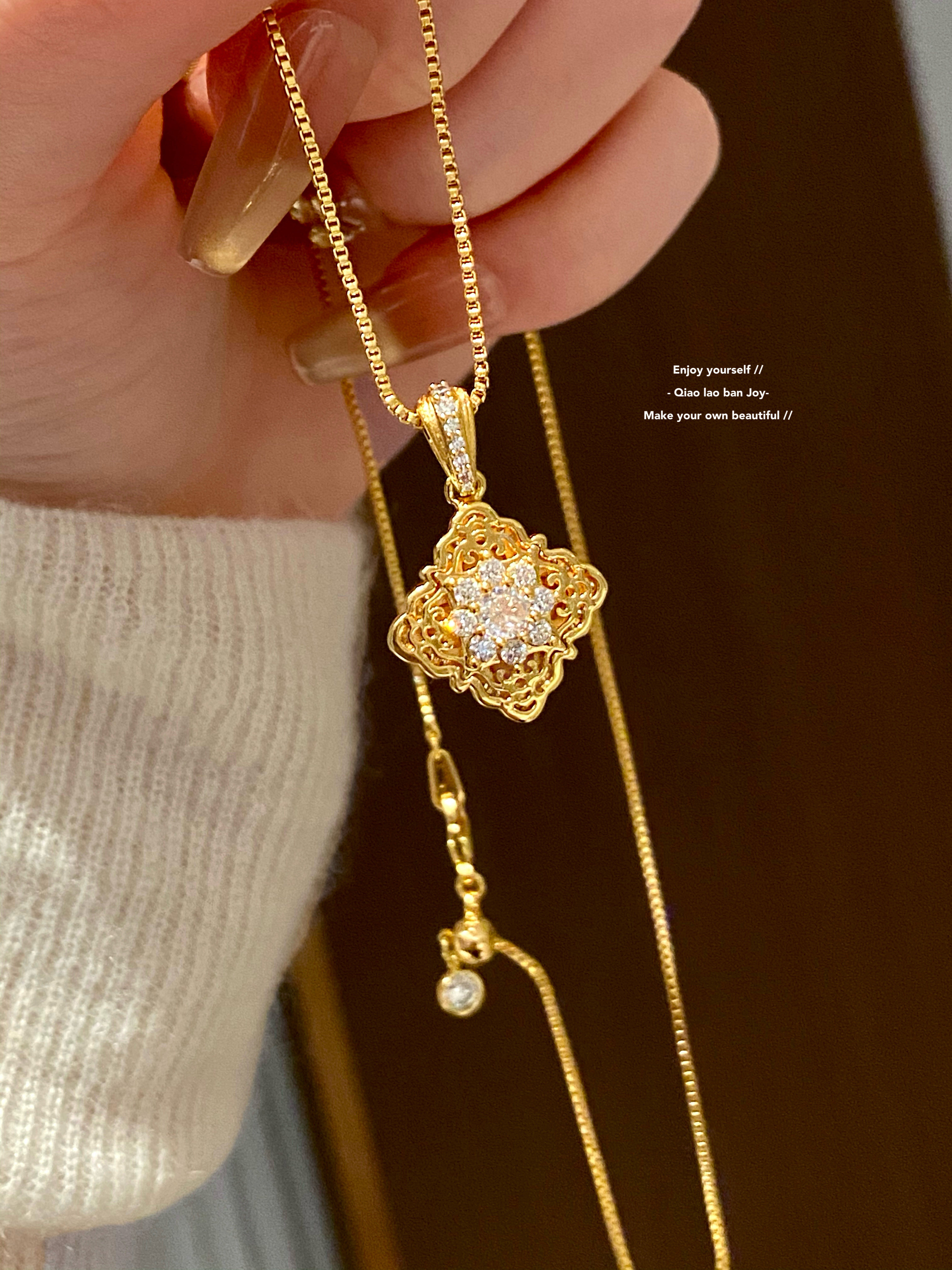 【喬老板Joy】四葉草項鍊拉絲金色雙面閃鑽鎖骨鍊復古宮廷布契潮