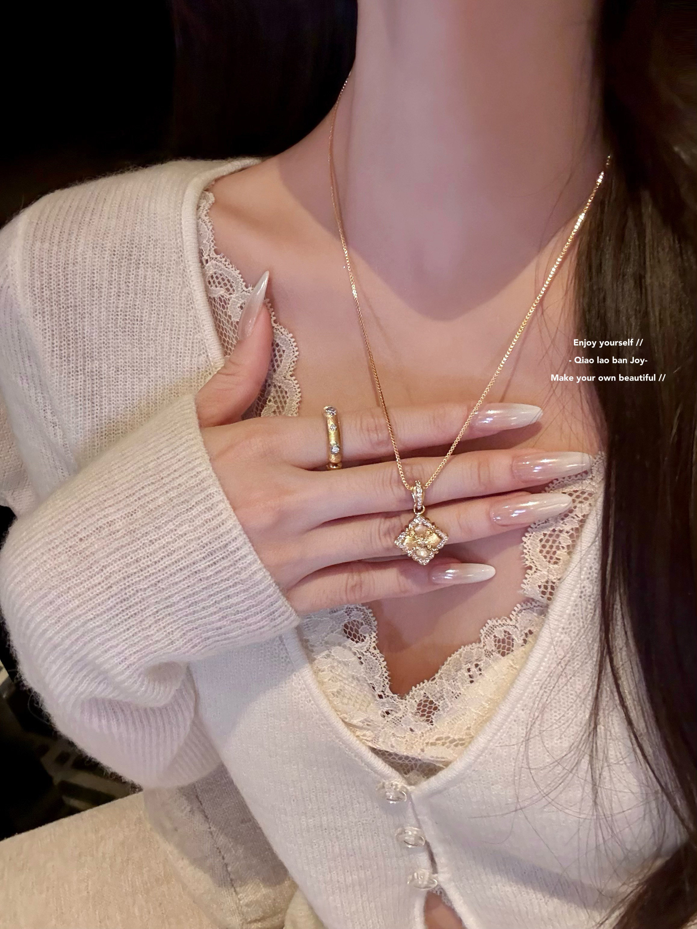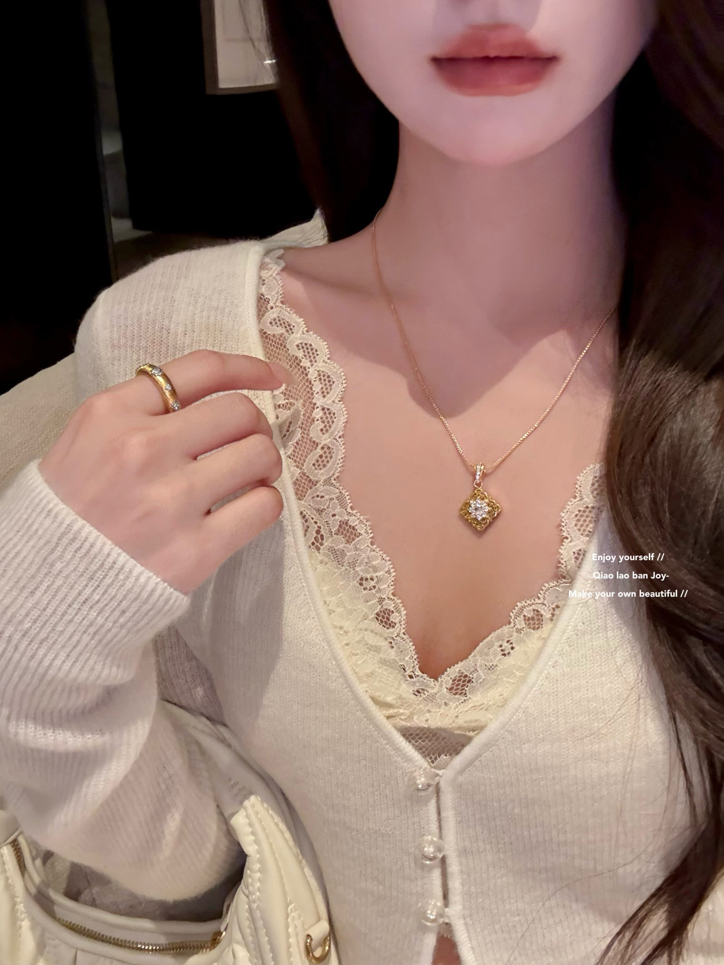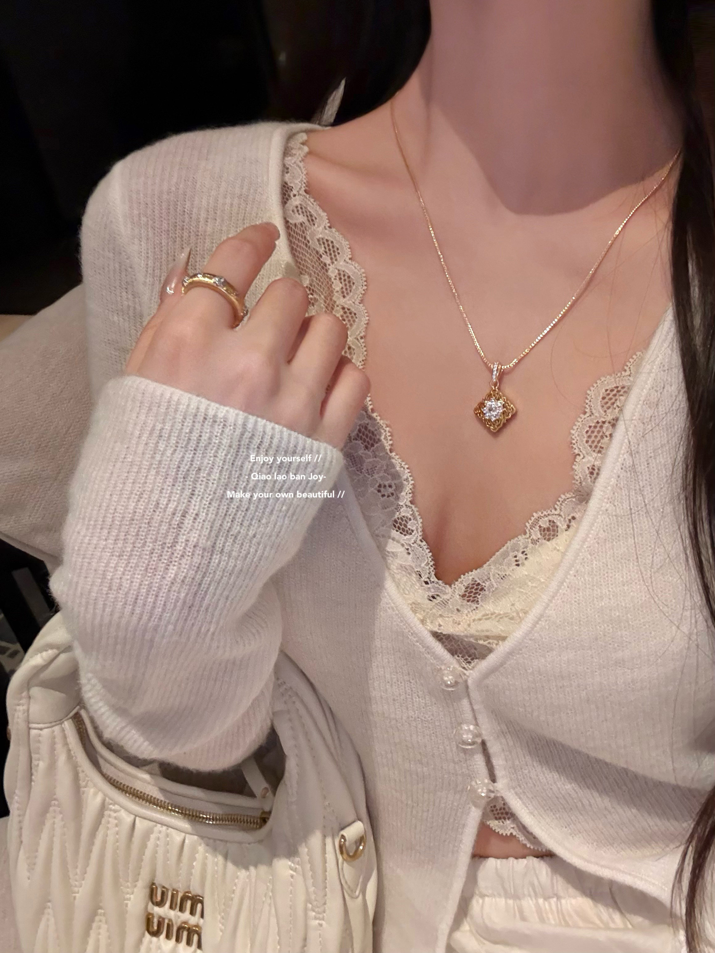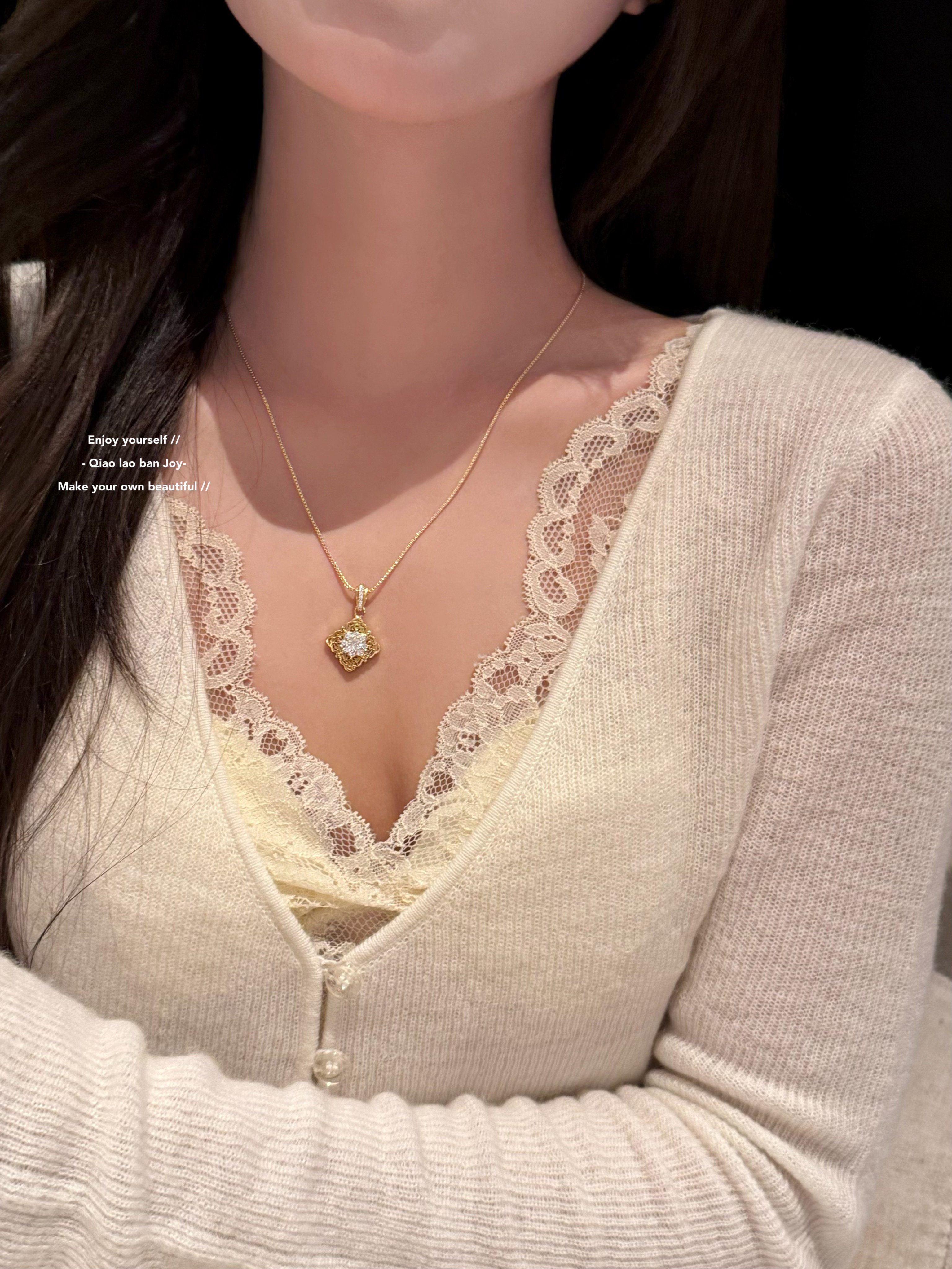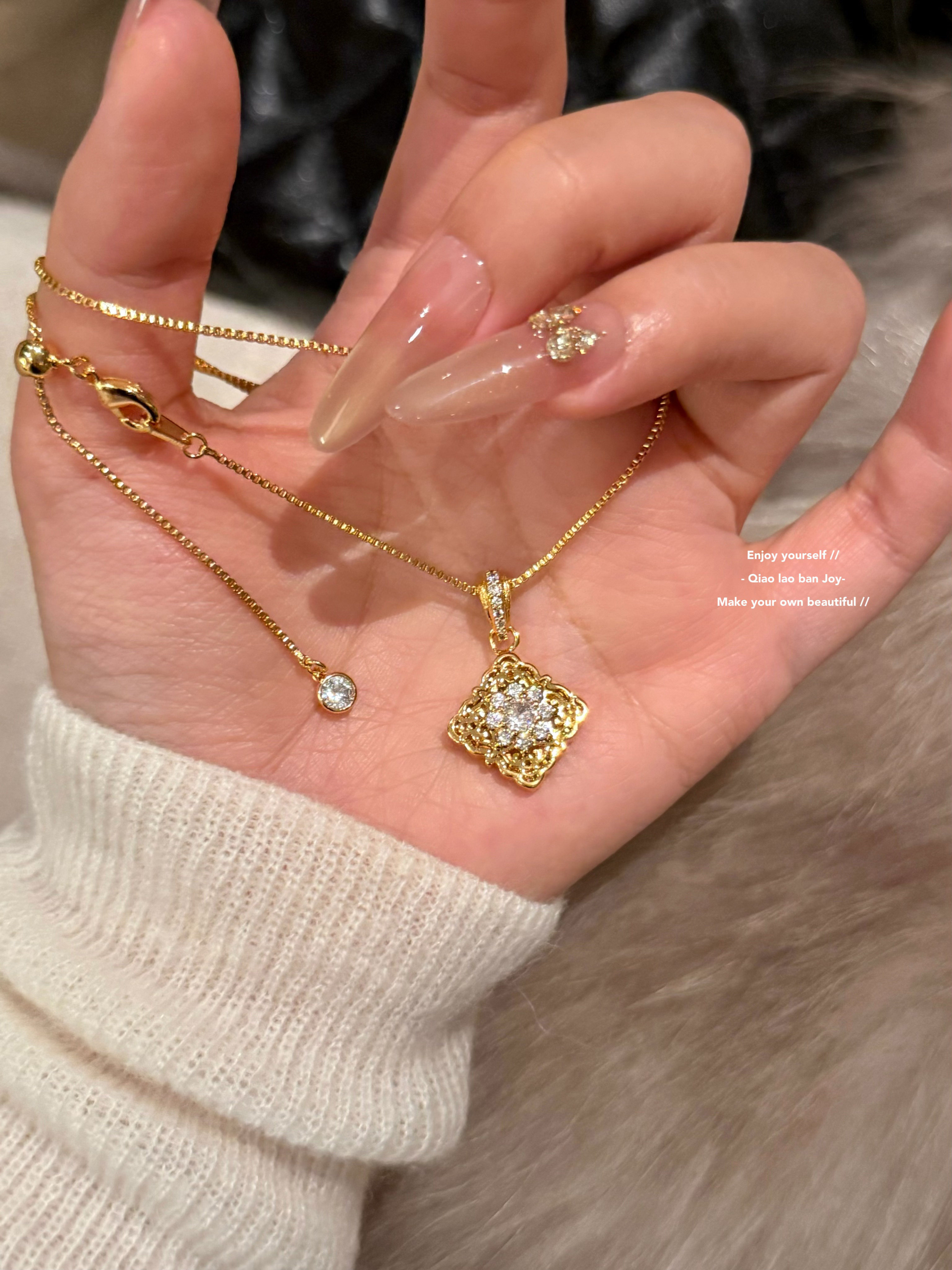 【喬老板Joy】四葉草項鍊拉絲金色雙面閃鑽鎖骨鍊復古宮廷布契潮