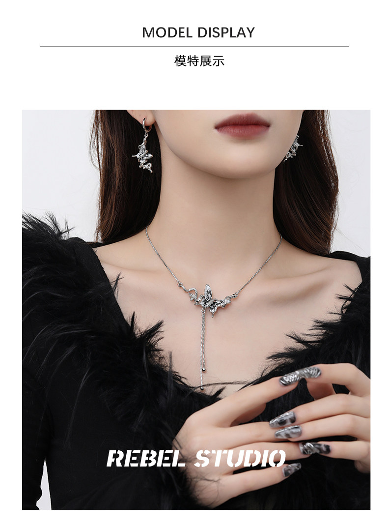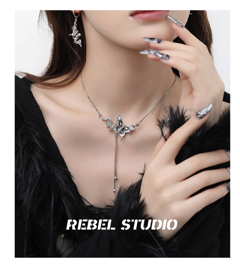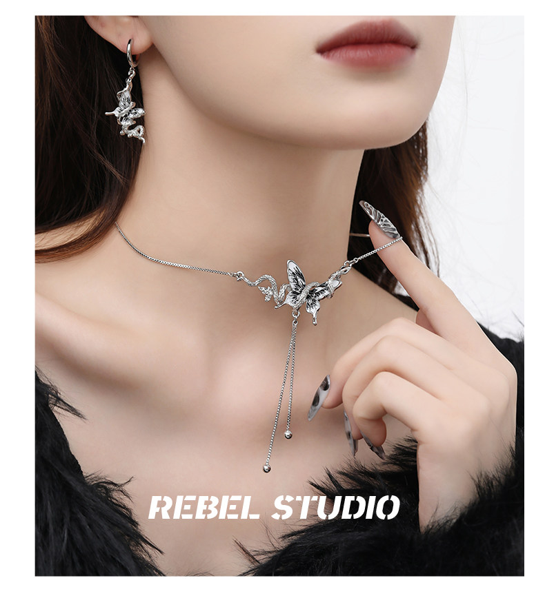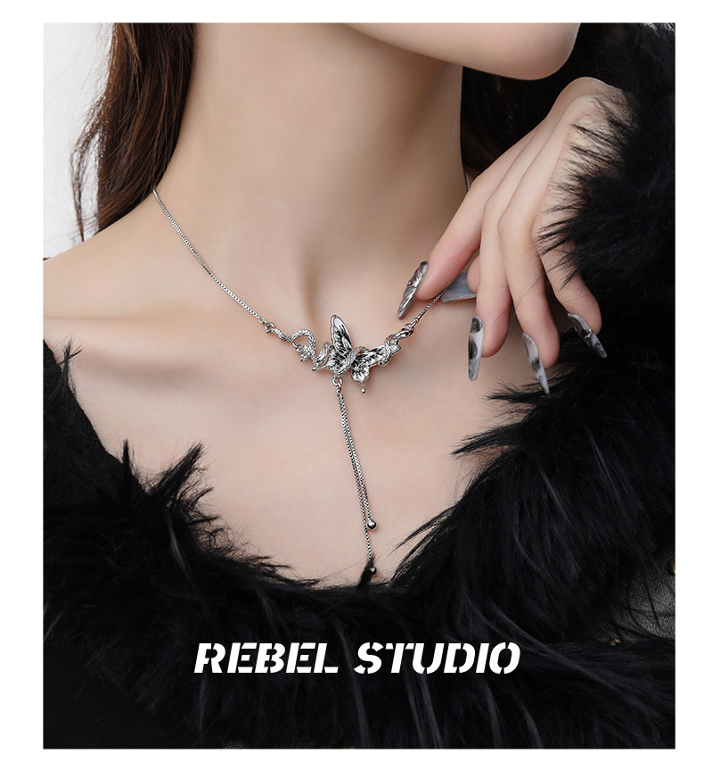 靈蛇滴油蝴蝶毛衣鏈女配飾品輕奢高級感小衆獨特原創設計新款項鍊