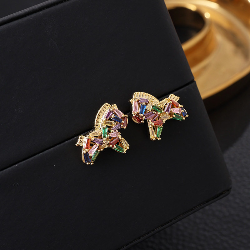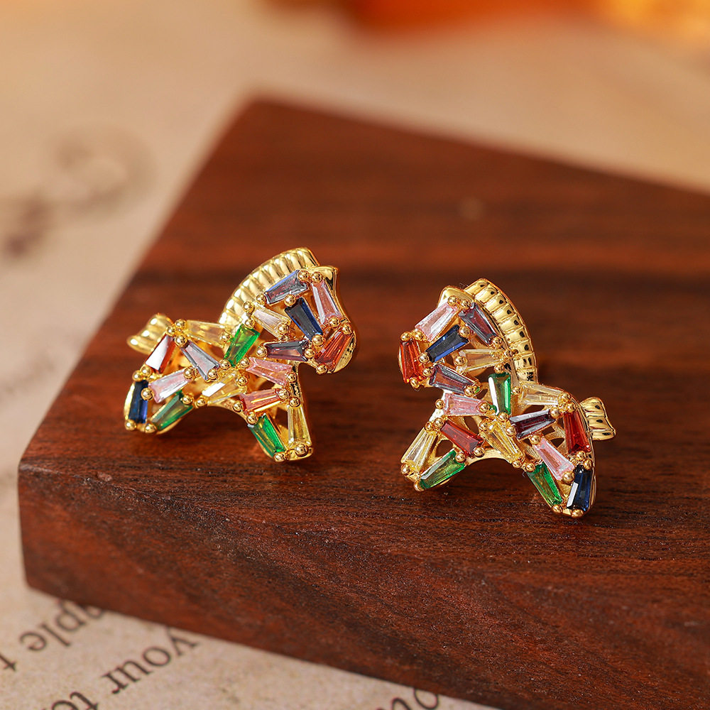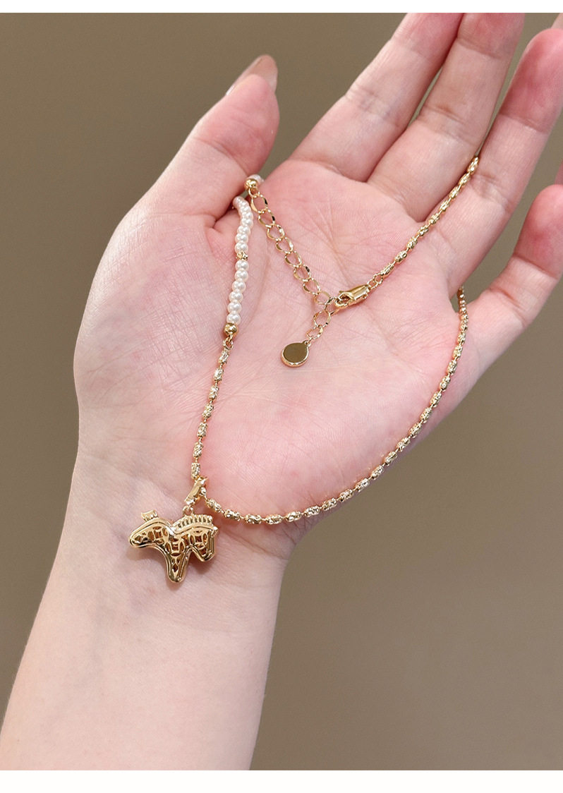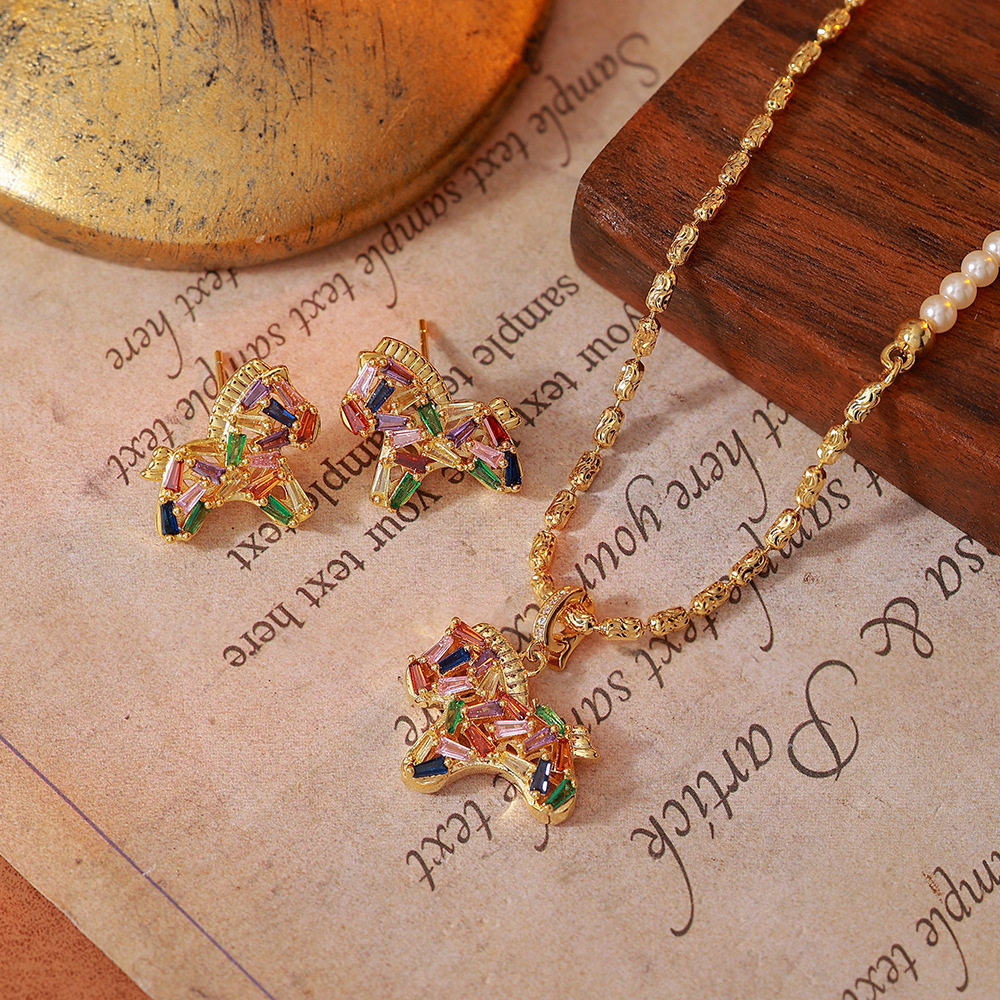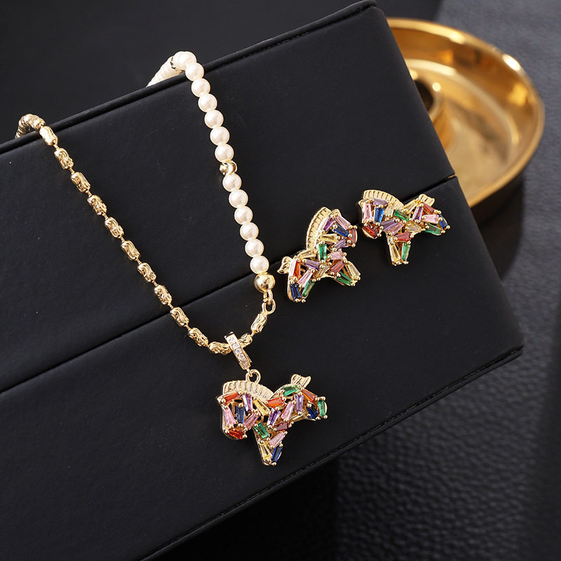 彩色水晶鋯小馬吊墜珍珠項鍊配飾女秋冬毛衣鏈輕奢高級感頸鏈飾品