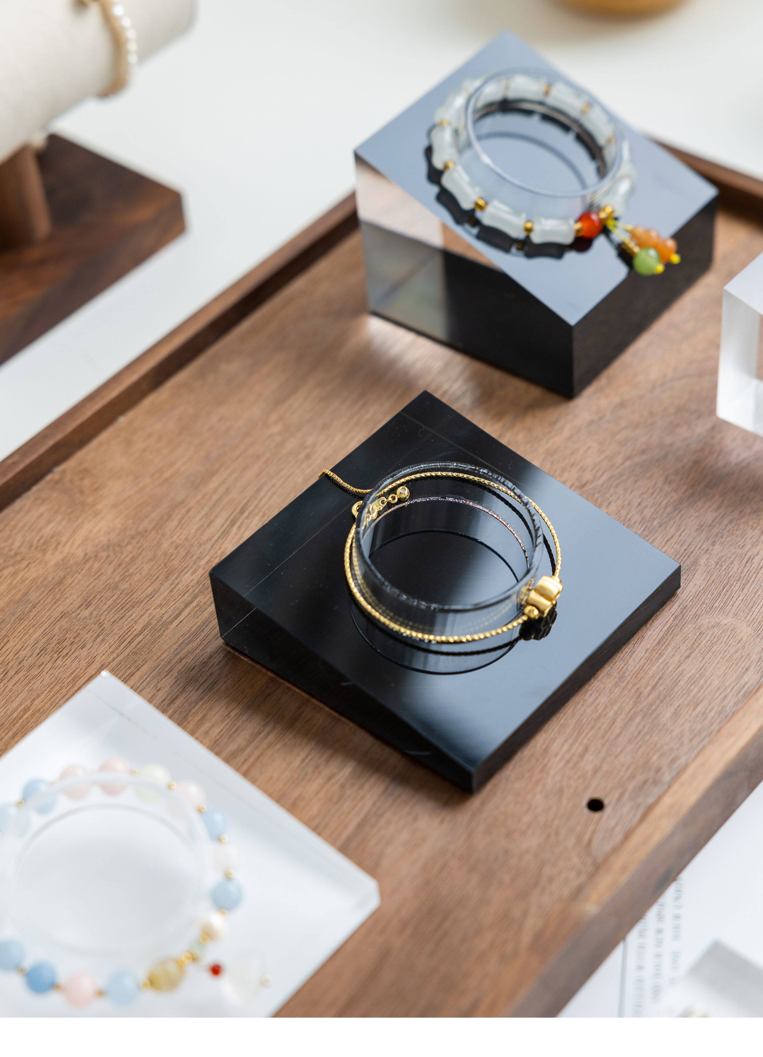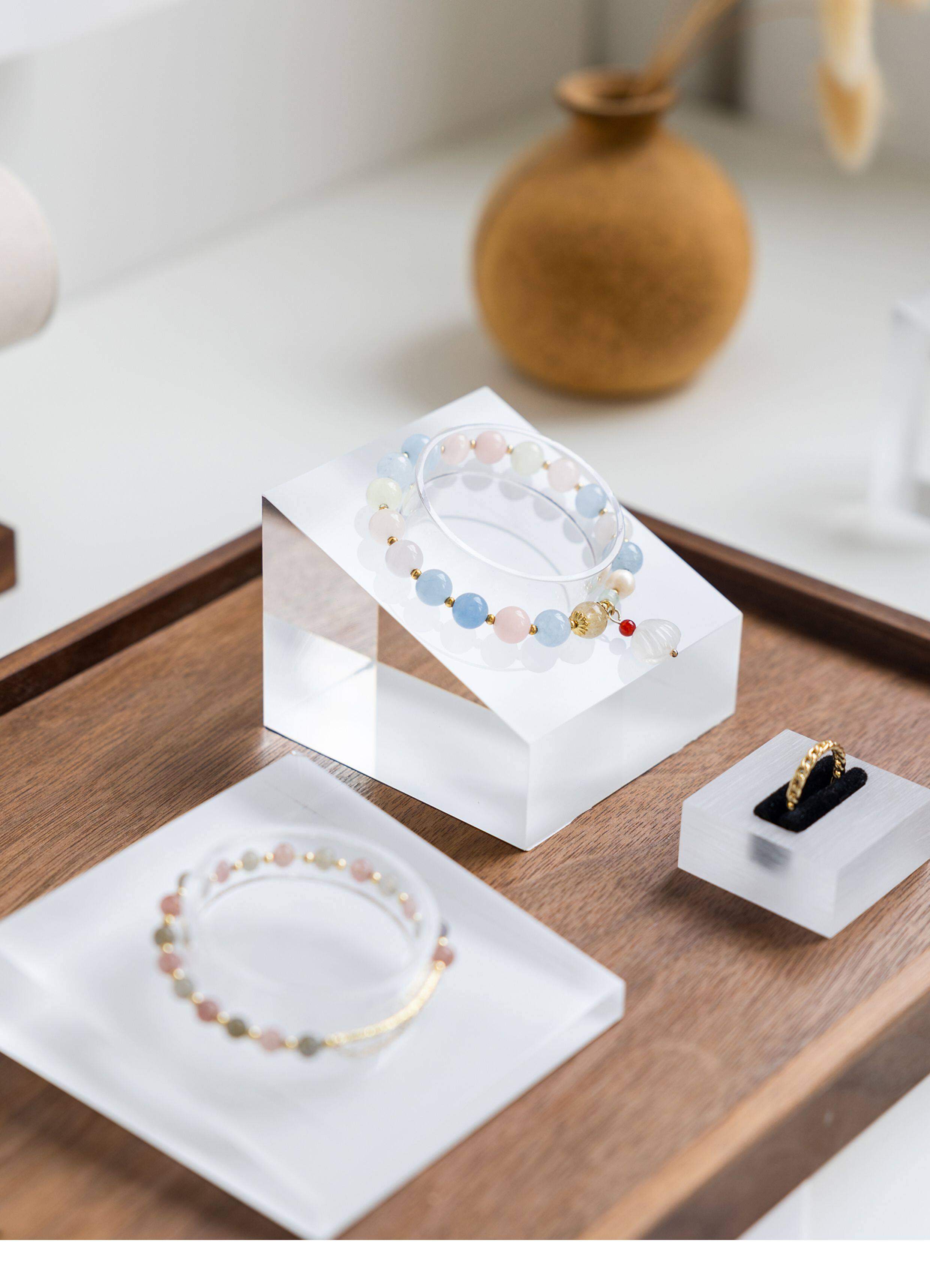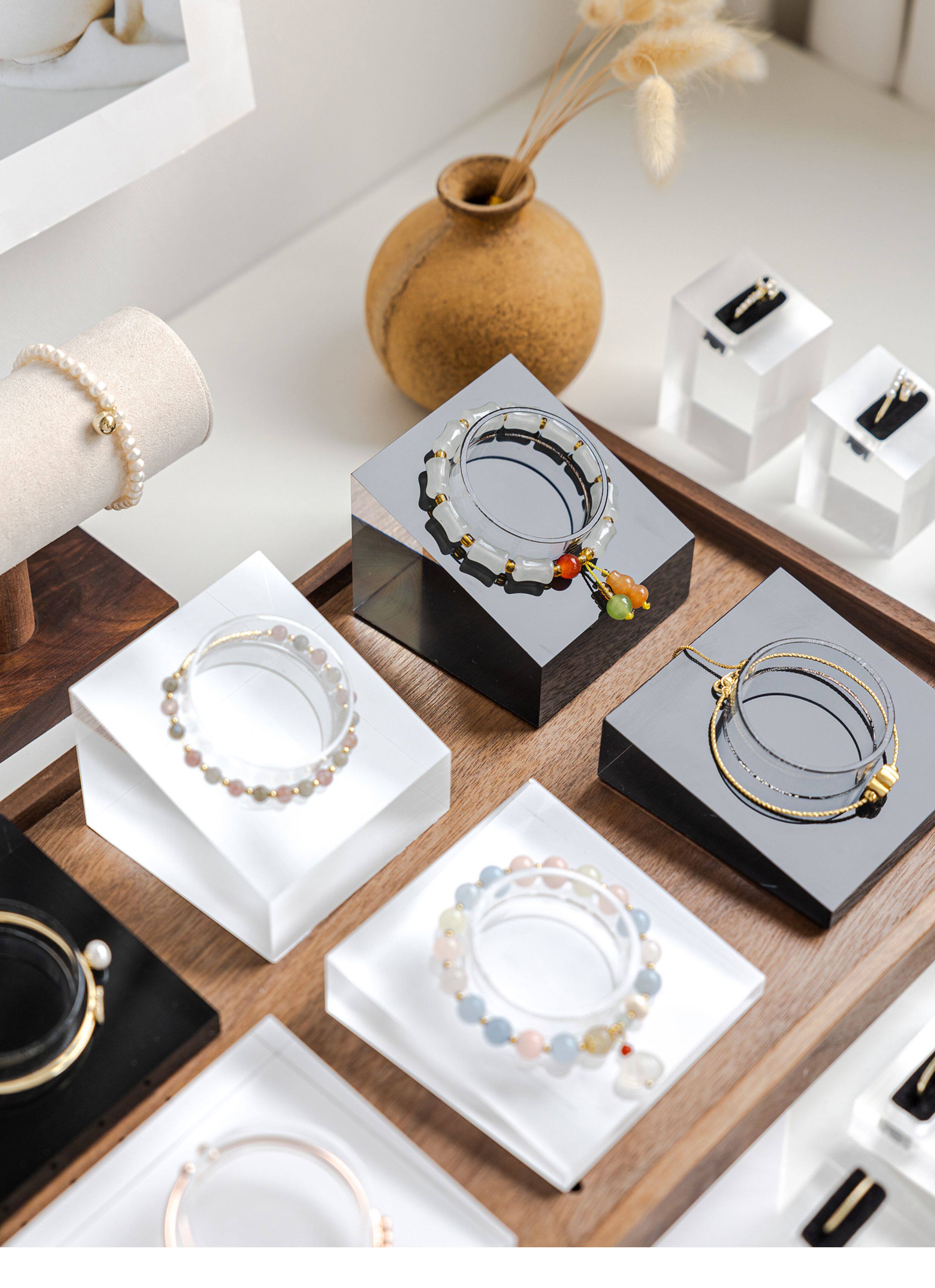 亞克力手串展示架首飾手鐲手鏈手圍水晶斜坡收納飾品櫃台擺攤陳列