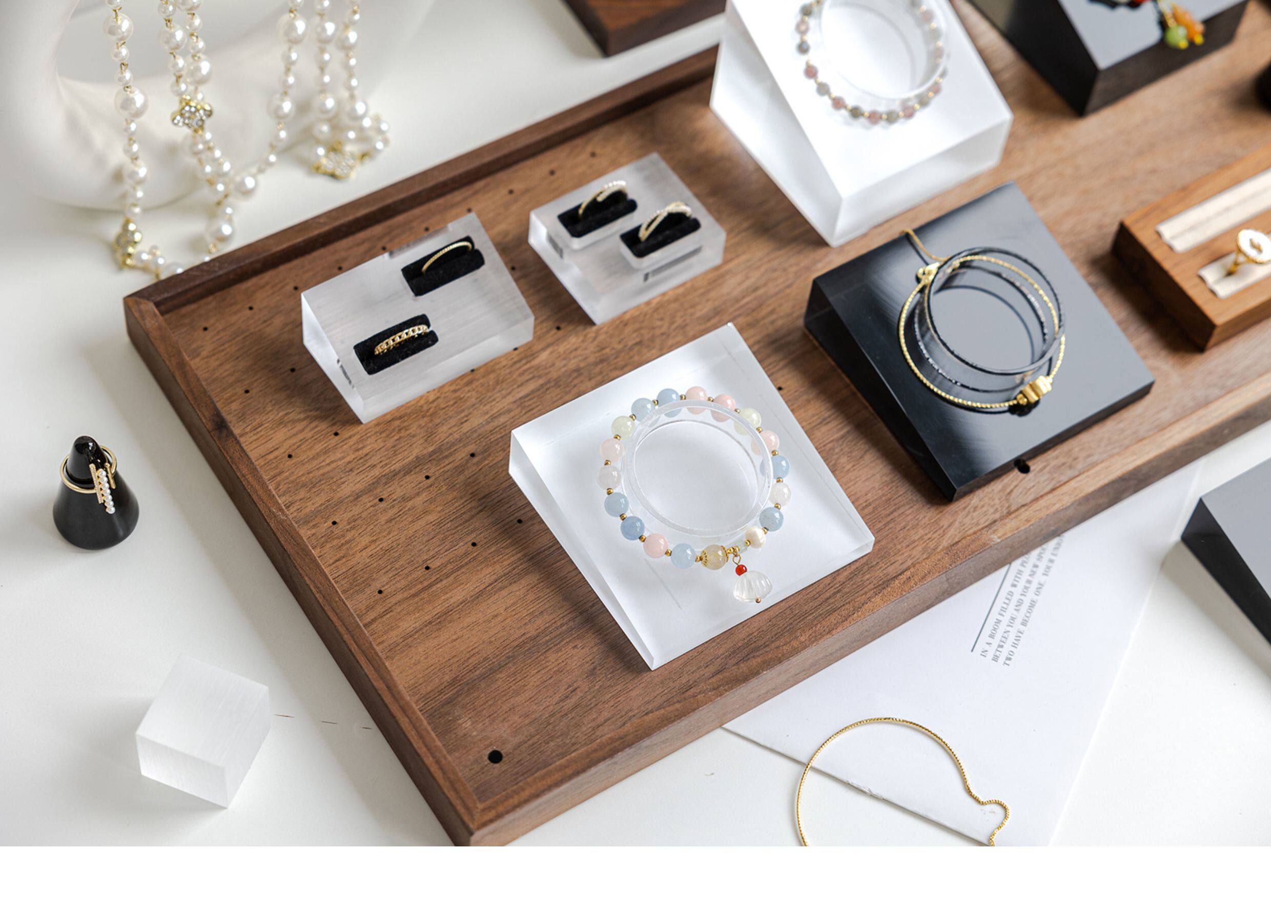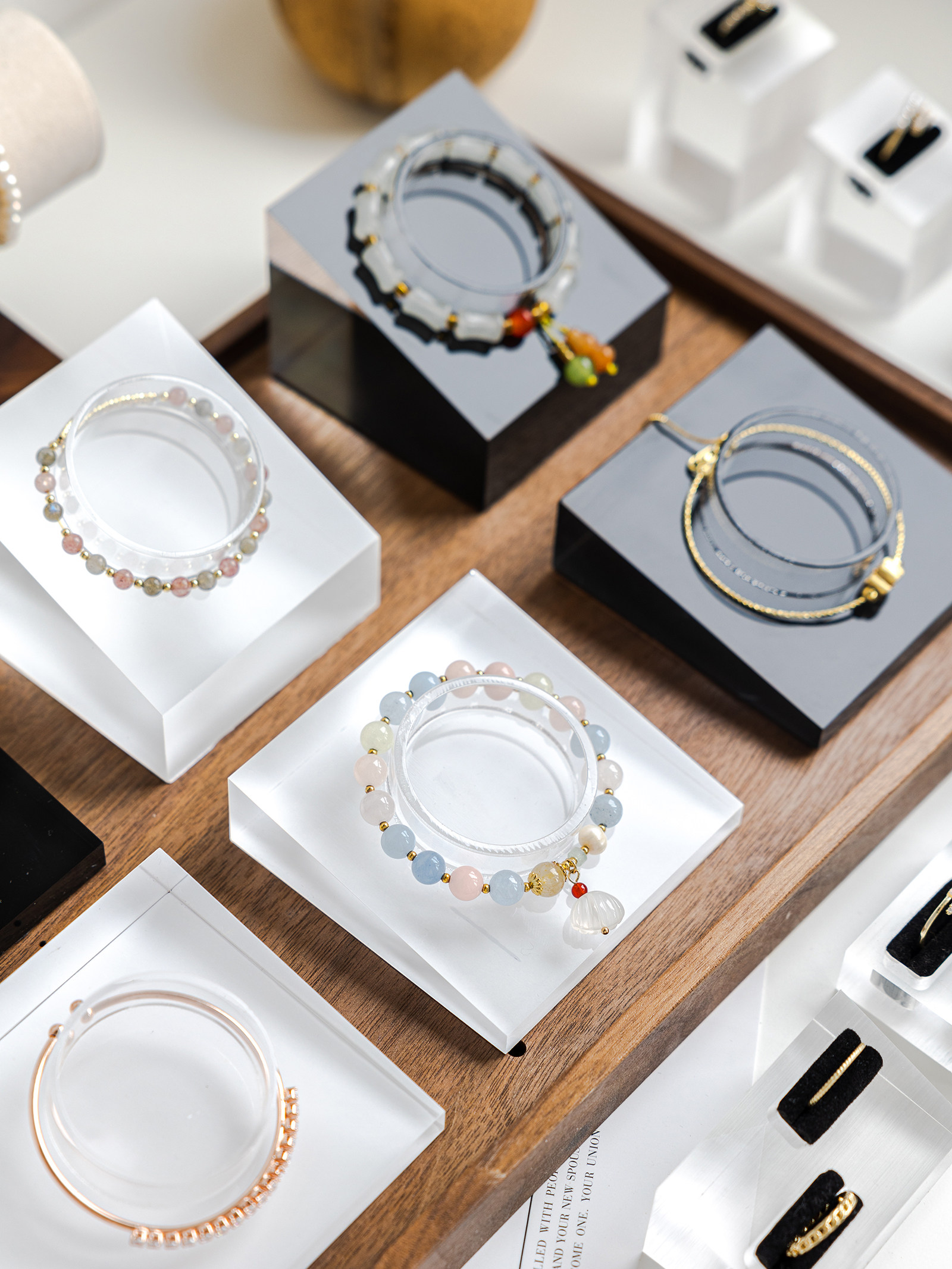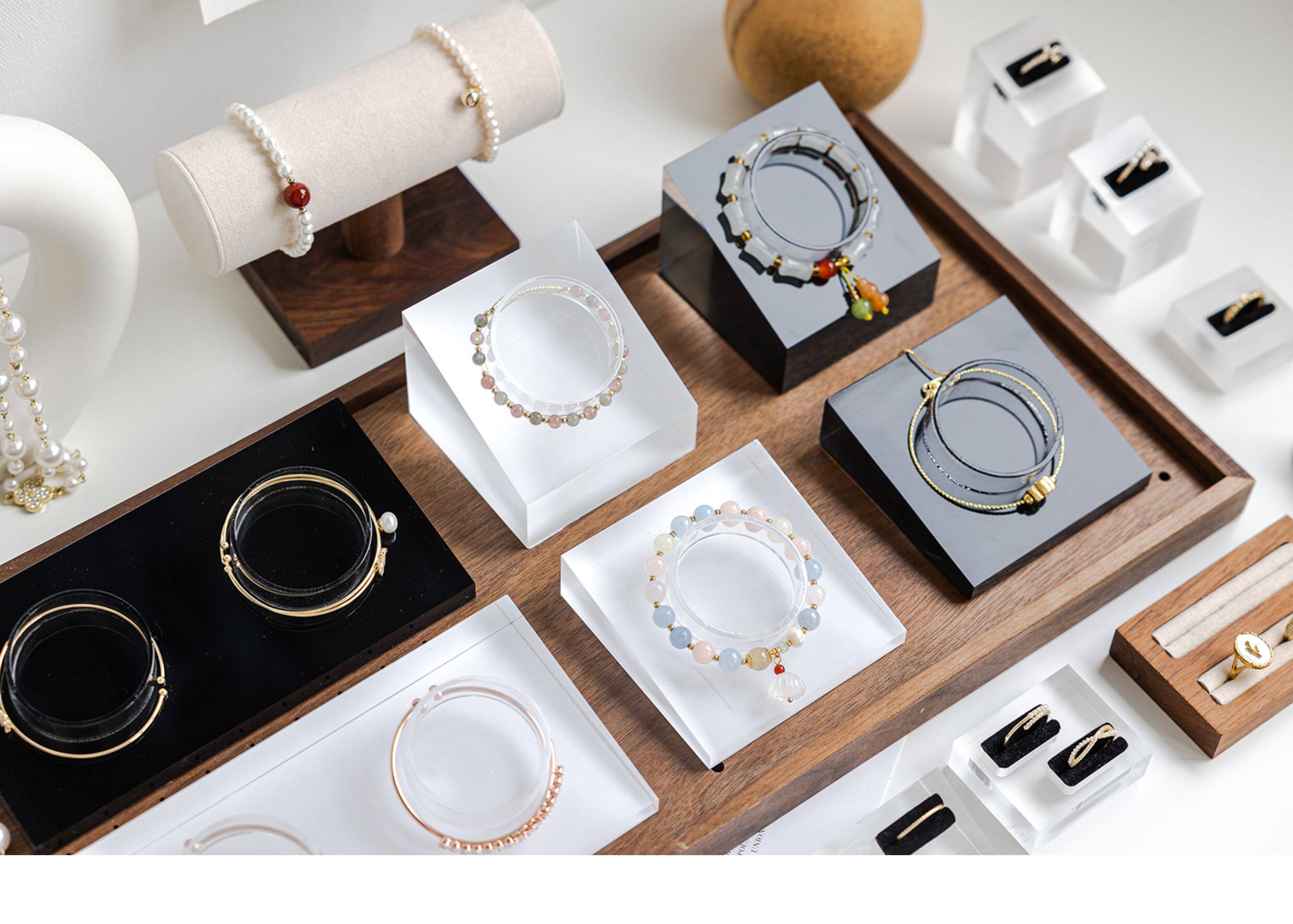 亞克力手串展示架首飾手鐲手鏈手圍水晶斜坡收納飾品櫃台擺攤陳列