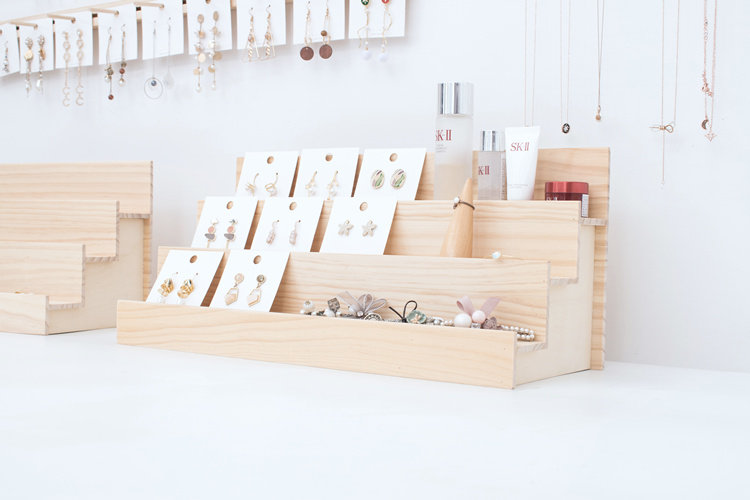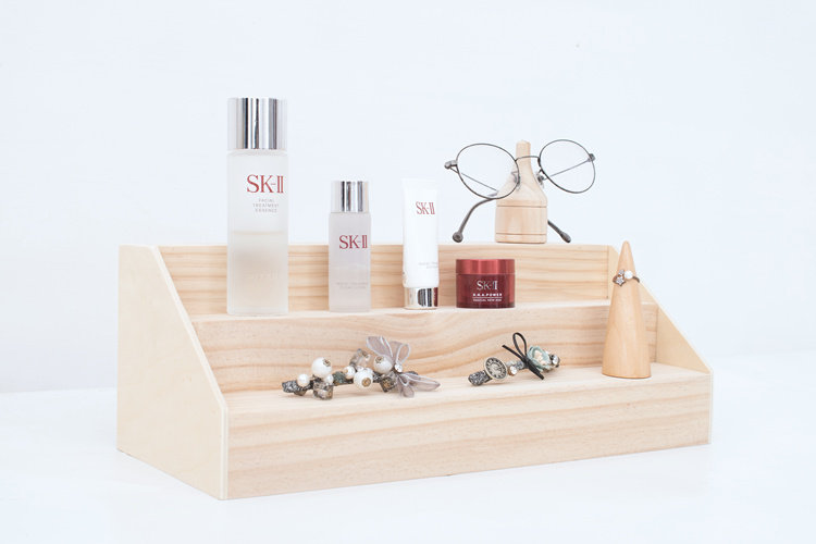 實木梯形化妝品 毛絨公仔收納展示架 手辦架子桌面擺放台家用多層