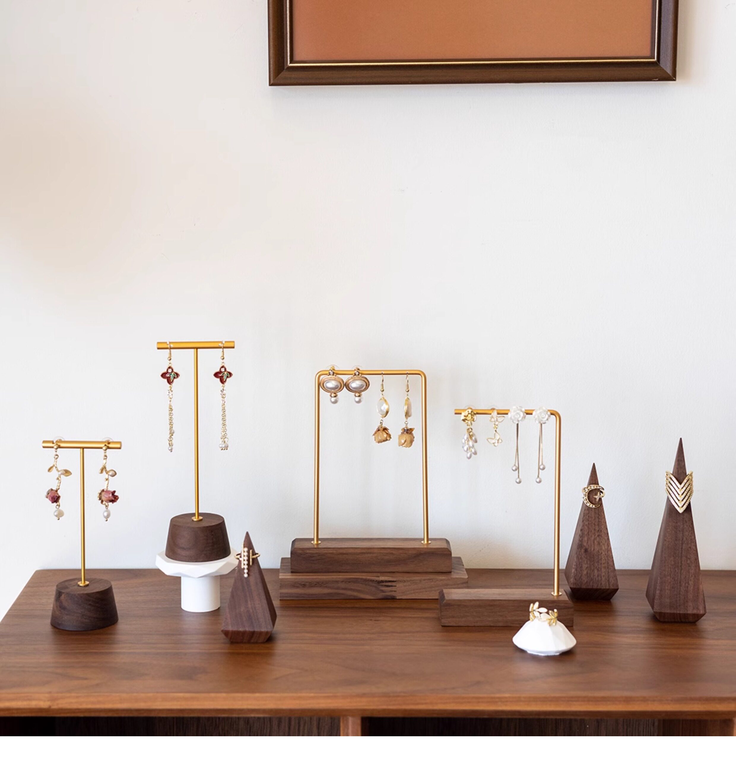 胡桃木耳環架子展示架立式耳墜架子陳列耳飾掛架耳釘架拍照道具