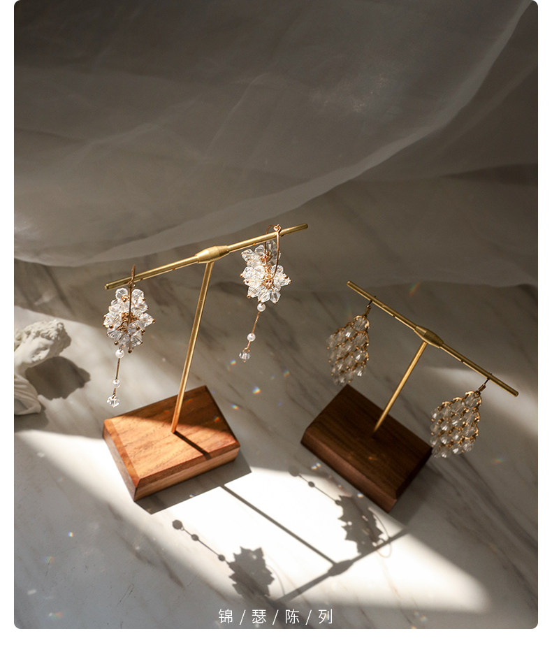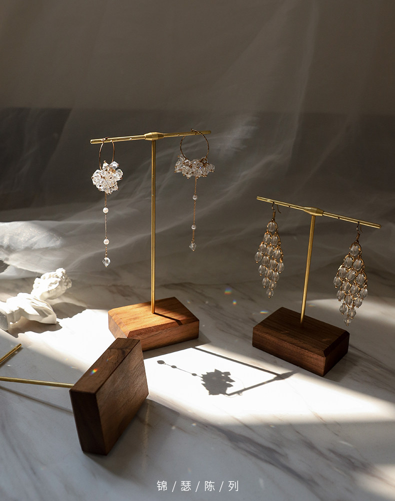 創意輕奢首飾展架耳環手鏈飾品架拍攝陳列道具珠寶大小號架胡桃木