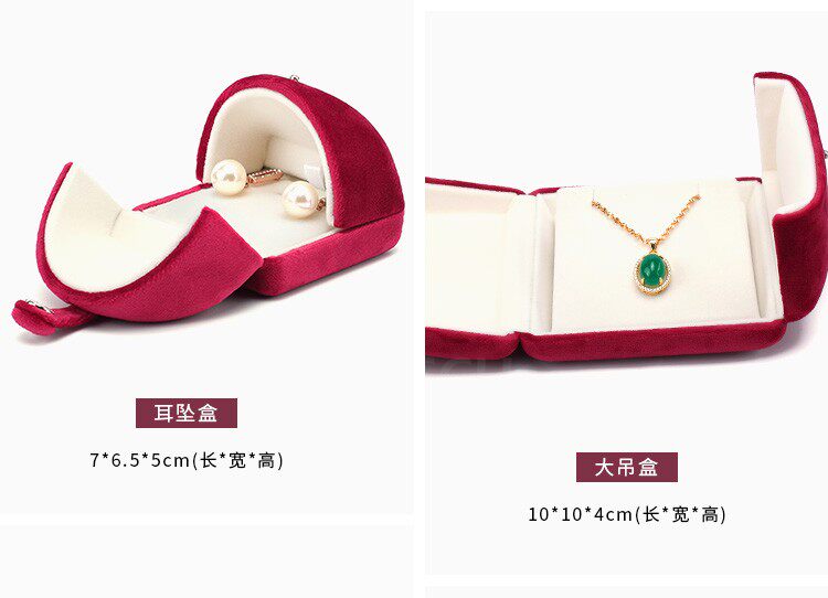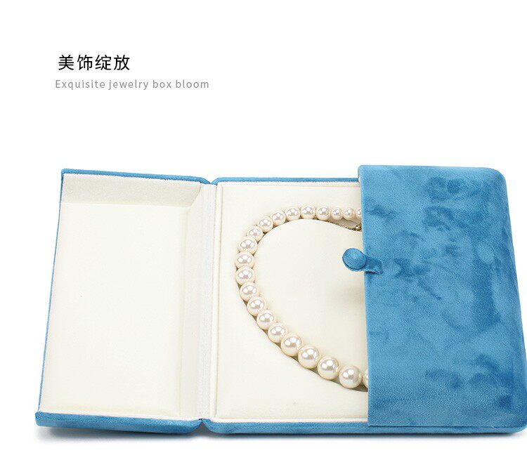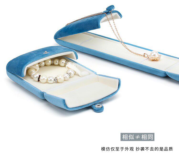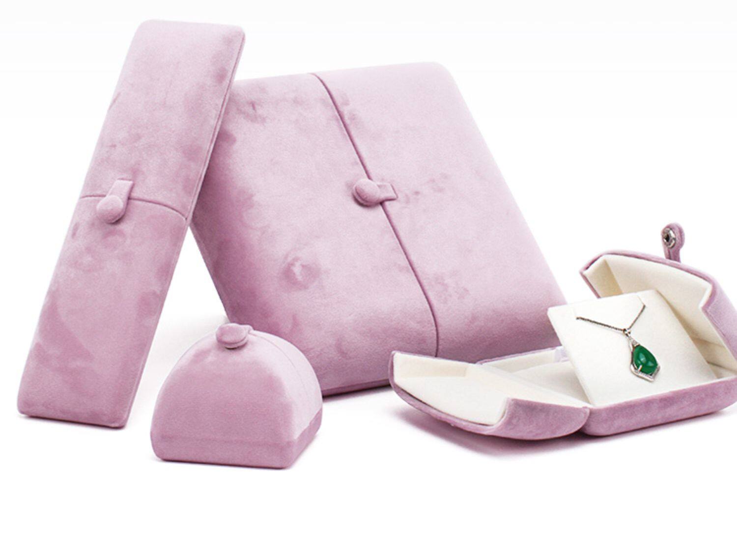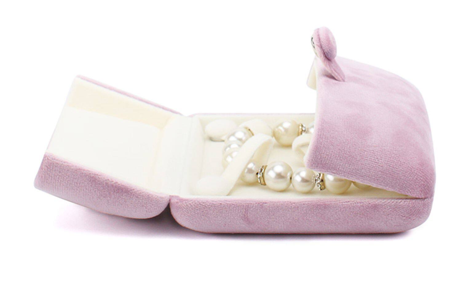 新款按釦雙釦首飾盒超軟絲絨戒指盒耳釘吊墜盒珍珠項鍊盒子淺紫色