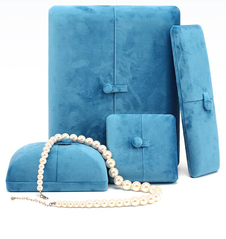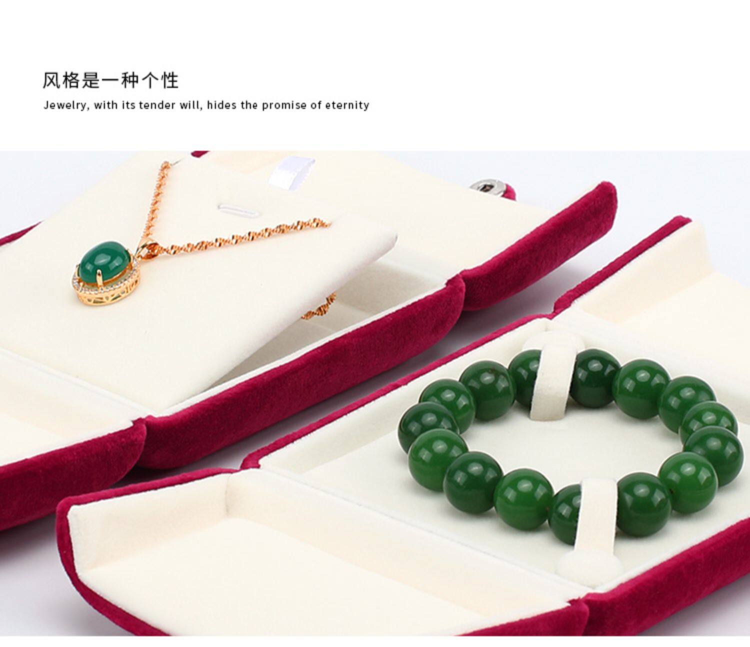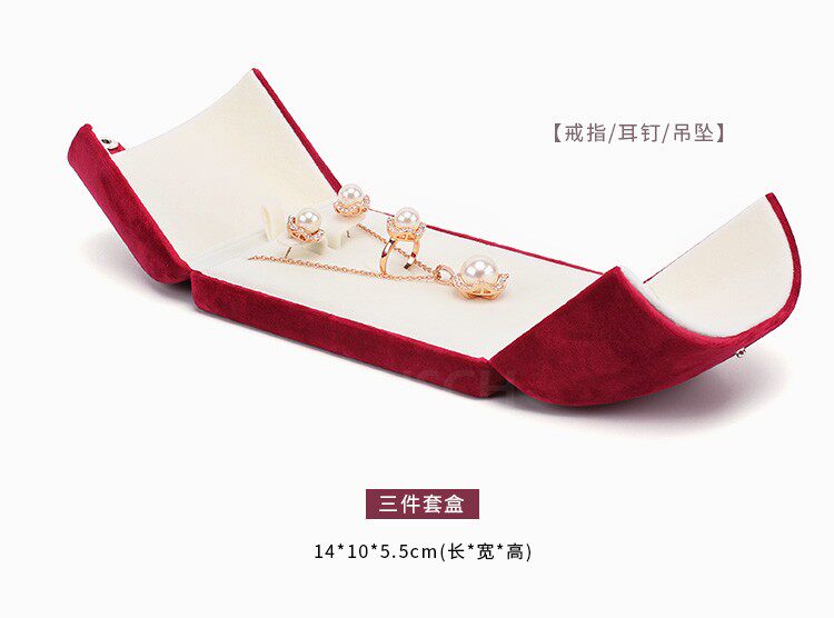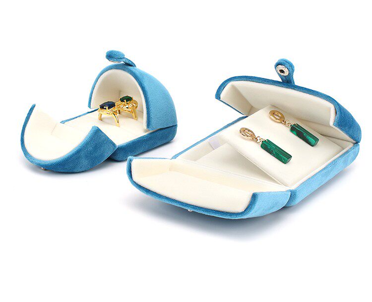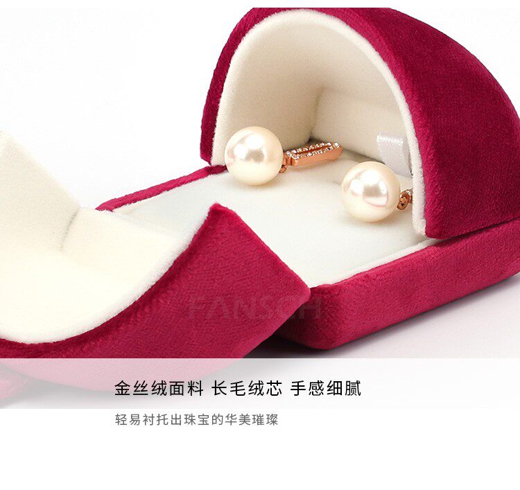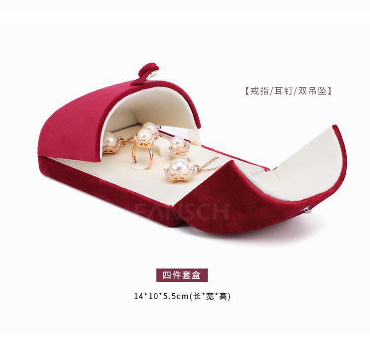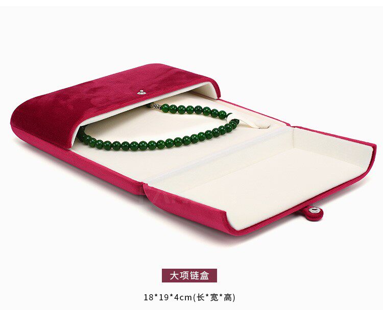 新款按釦雙釦首飾盒超軟絲絨戒指盒耳釘吊墜盒珍珠項鍊盒子淺紫色