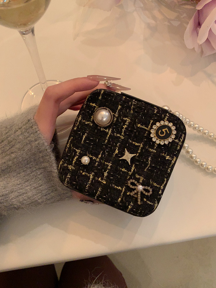 原創!黑千金小香風首飾盒(帶珍珠手提鏈)