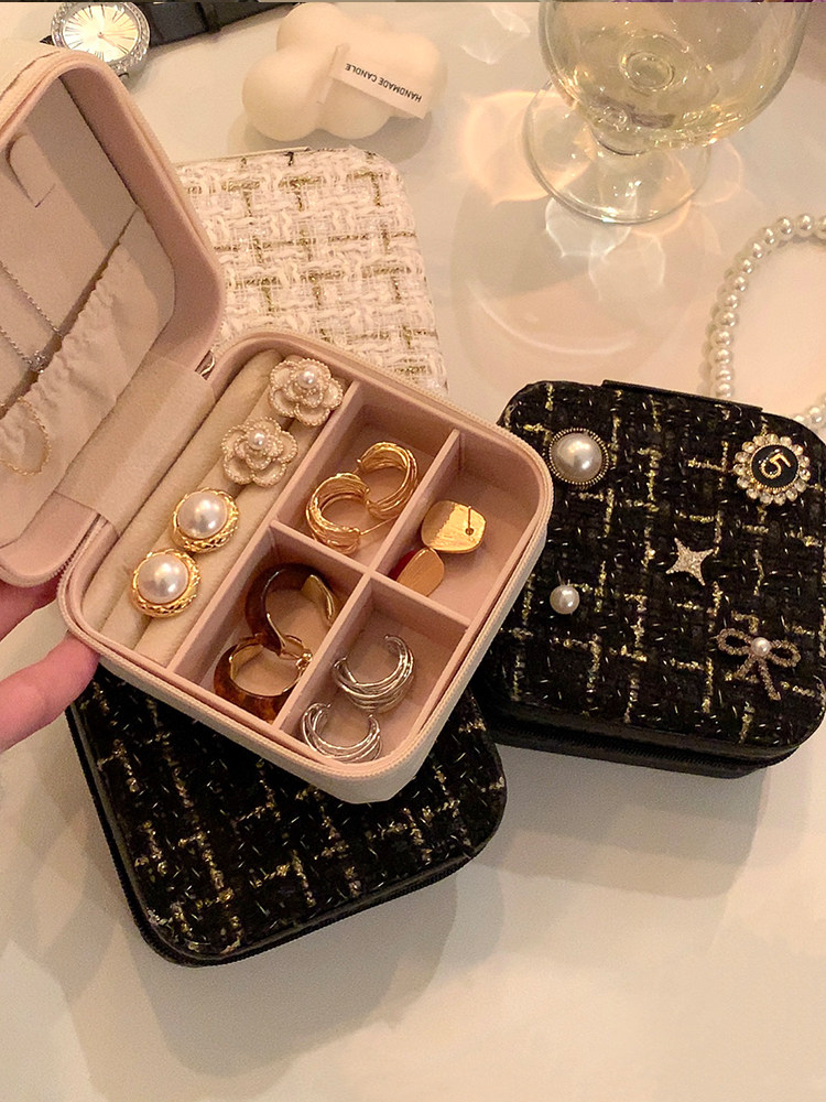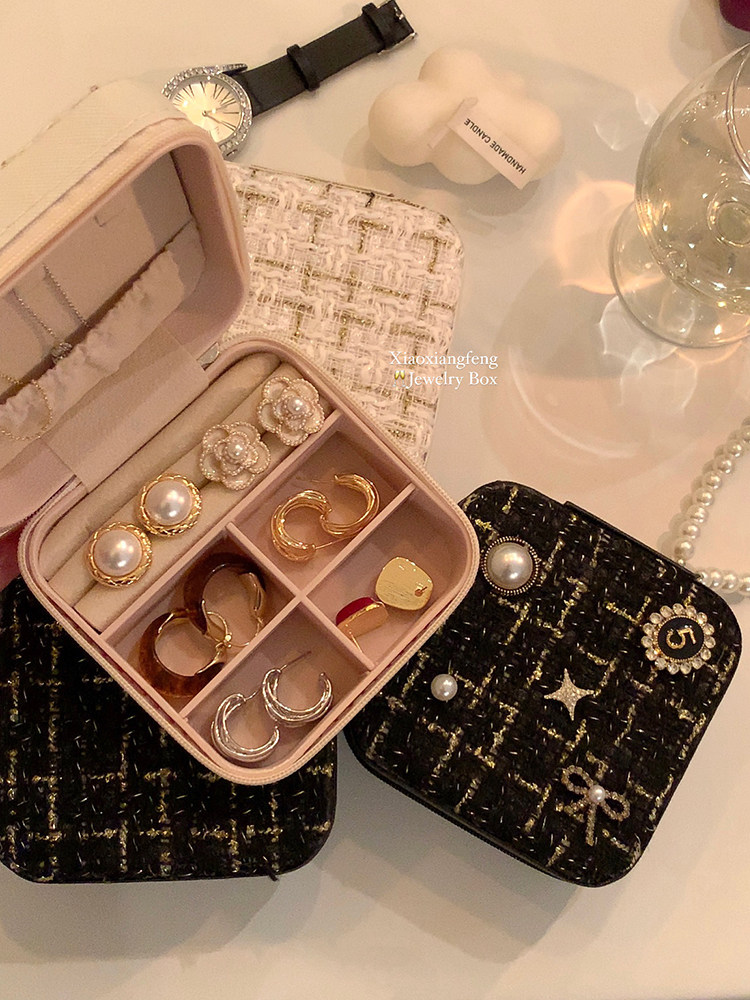 原創!小香風可攜式首飾盒手飾品收納盒戒指項鍊耳釘防氧化大容量