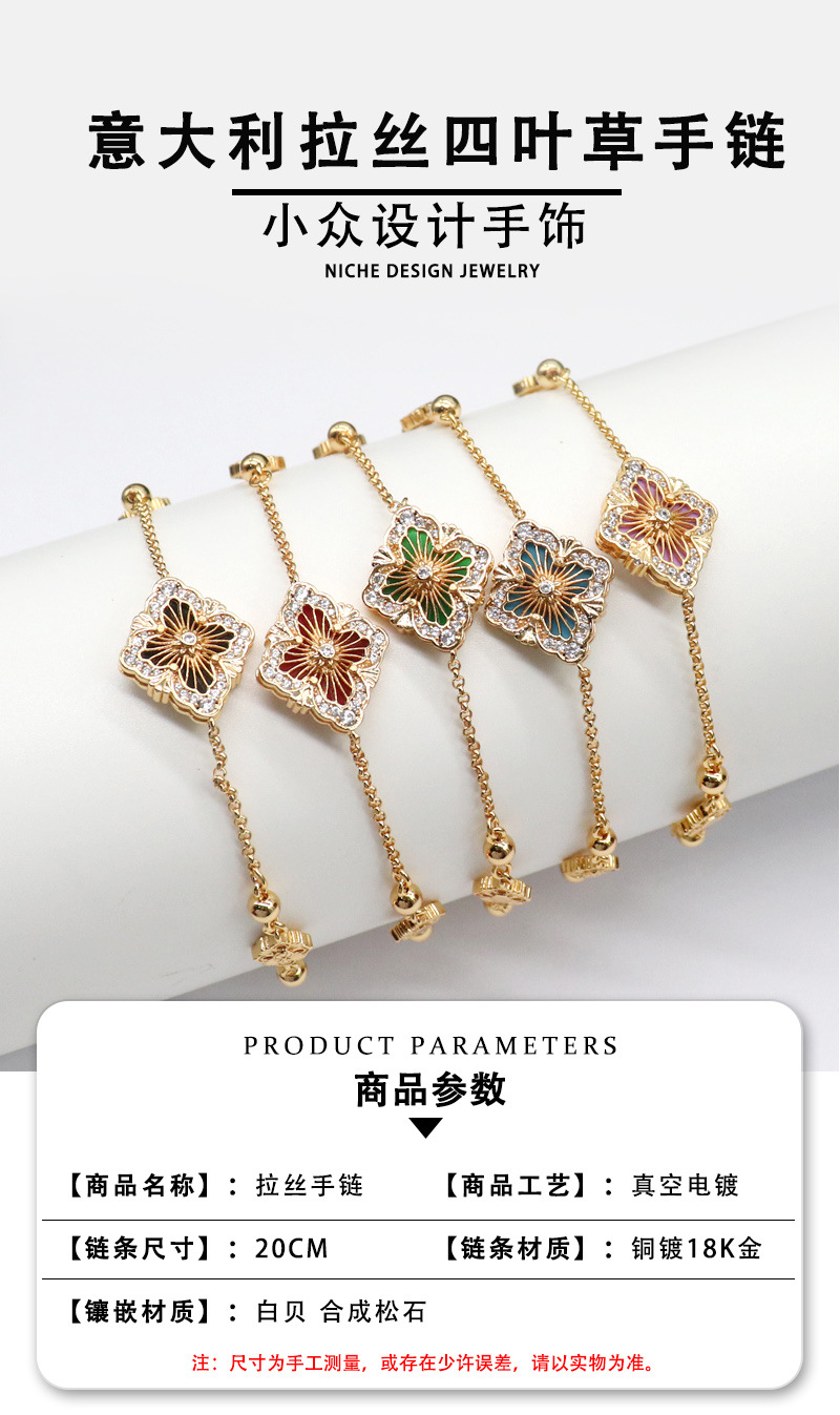 意大利新款小香風拉絲鑲鑽單花手鏈女 18k輕奢高級感雙面設計攜帶