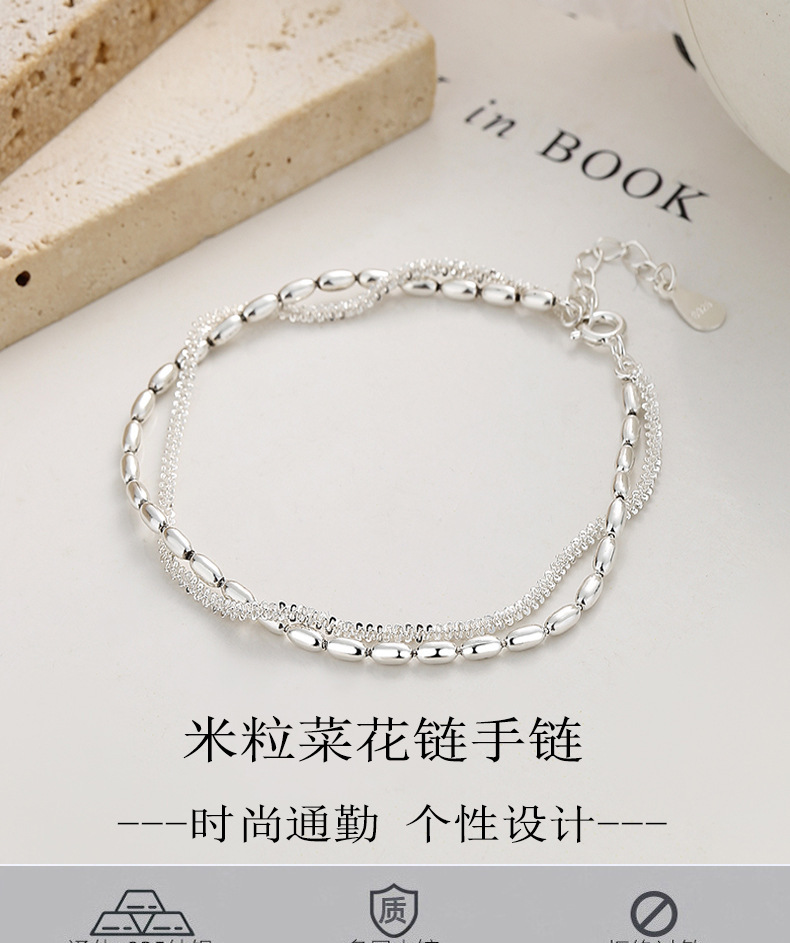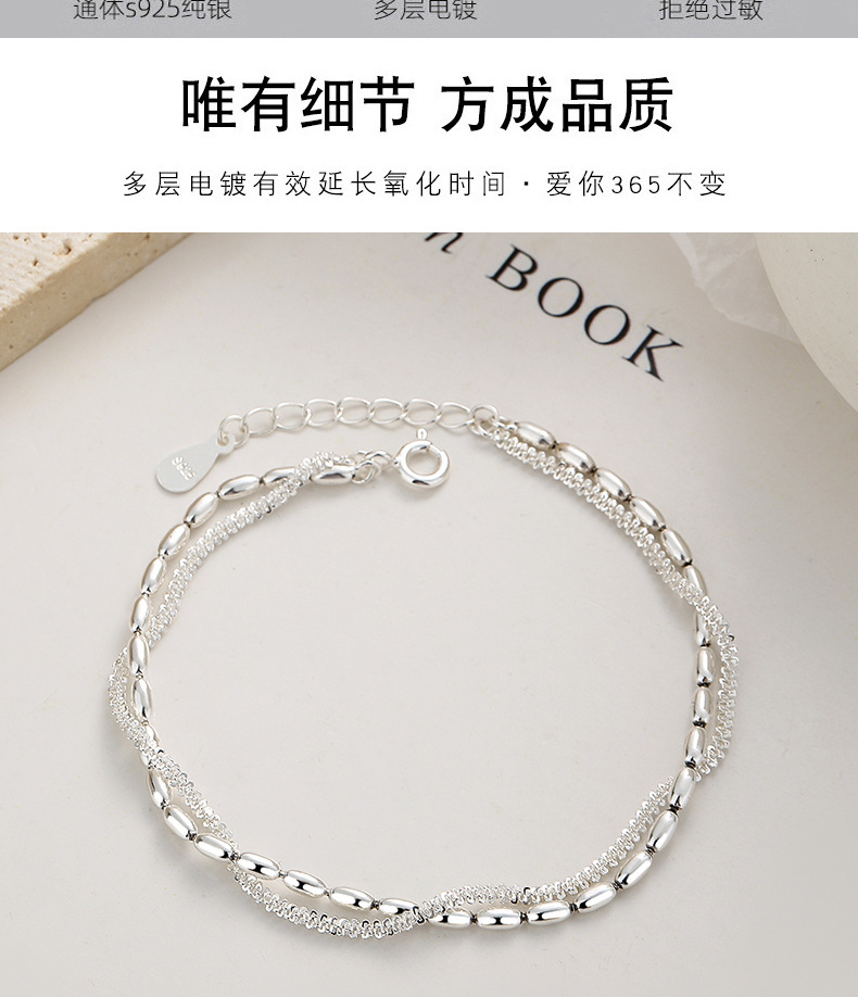 s925純銀豆豆滿天星雙層手鏈女波光粼粼米粒ins風高級感輕奢手飾