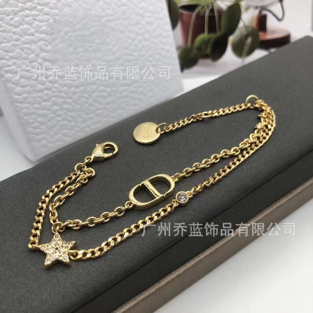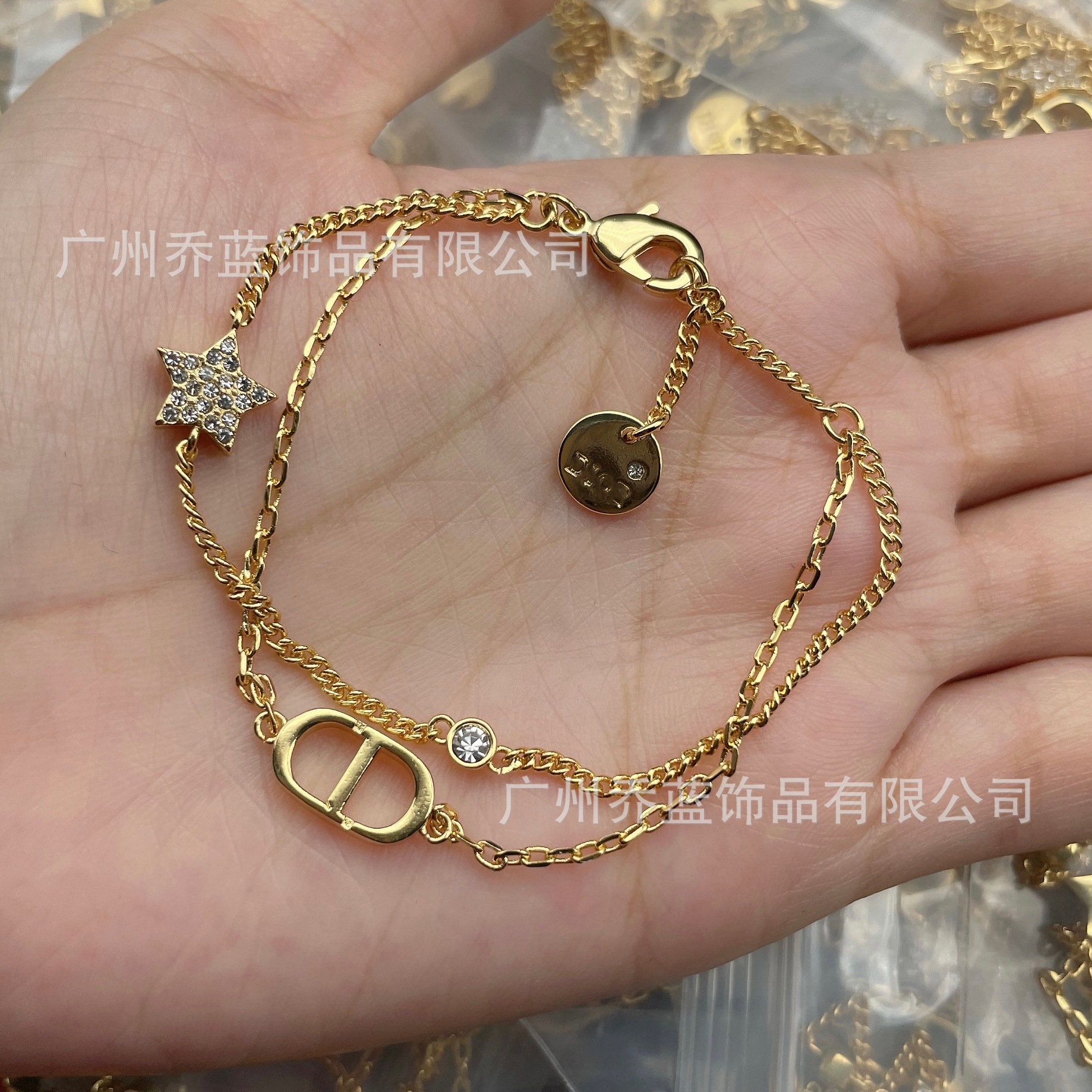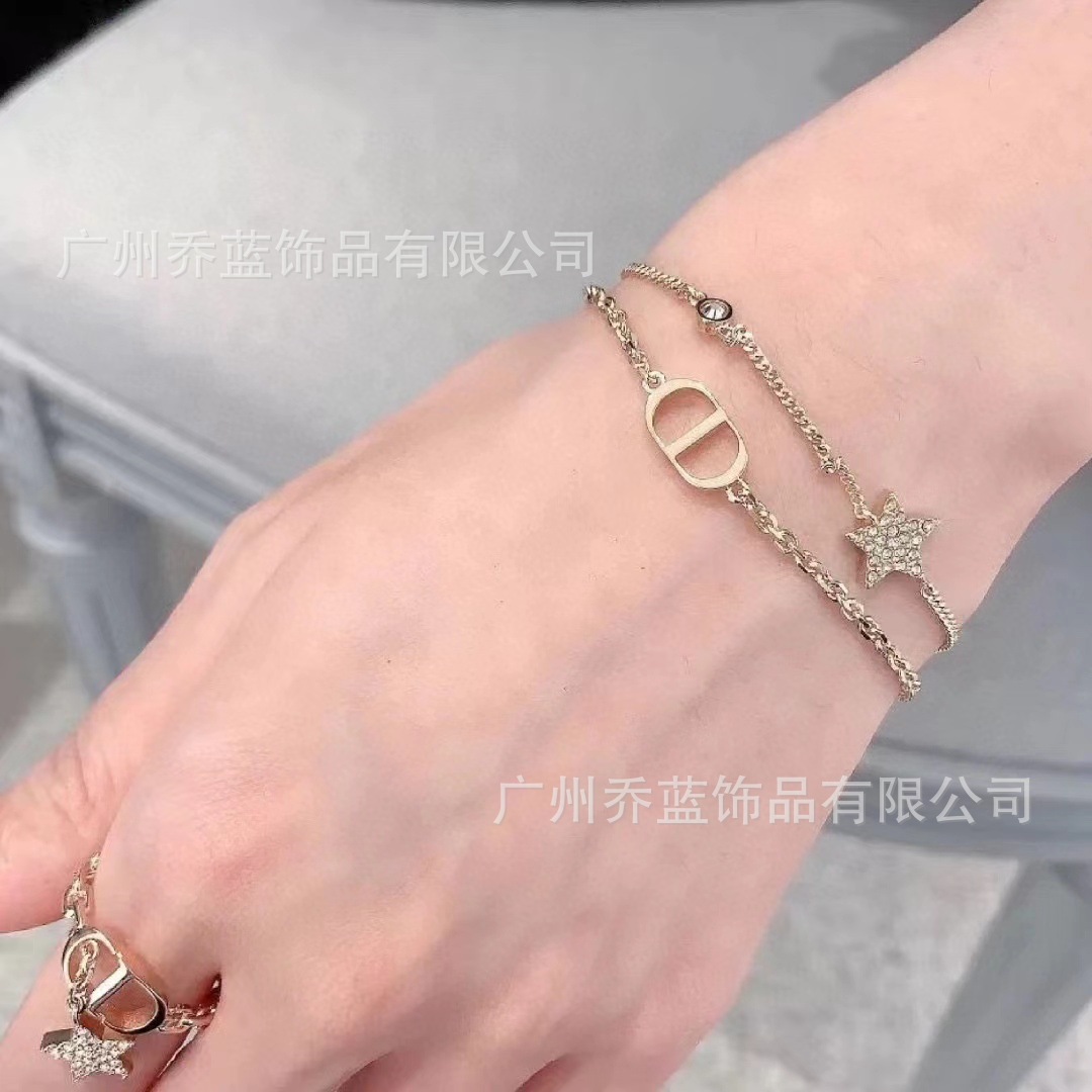 高版對版迪家D家滿鑽字母CD星星雙層手鏈女甜美時尚手環女批