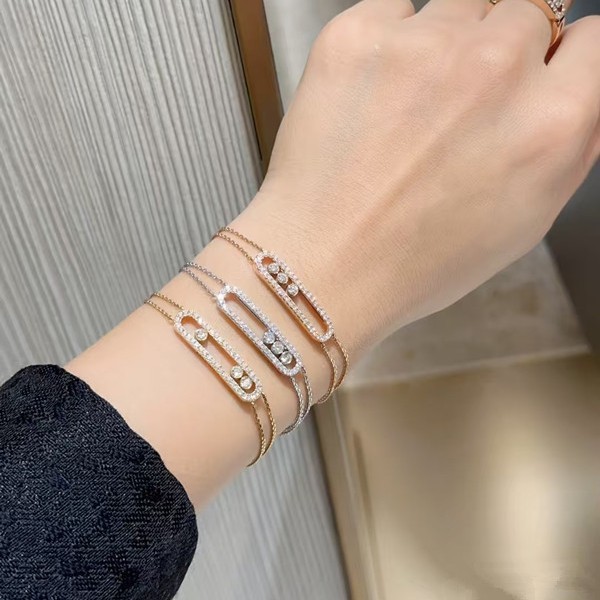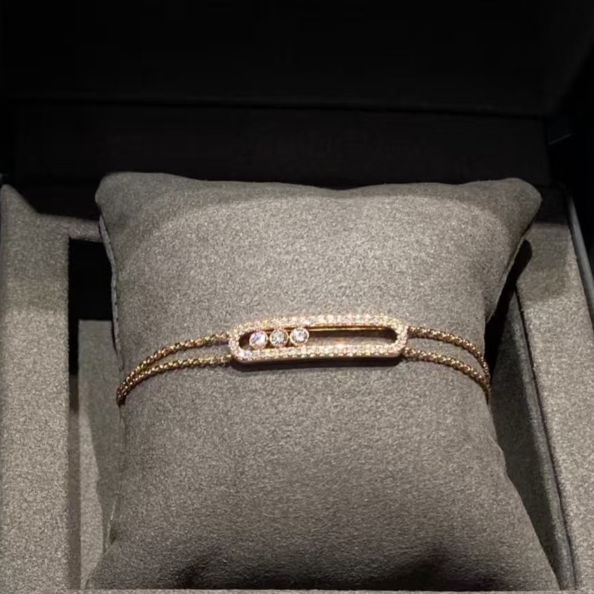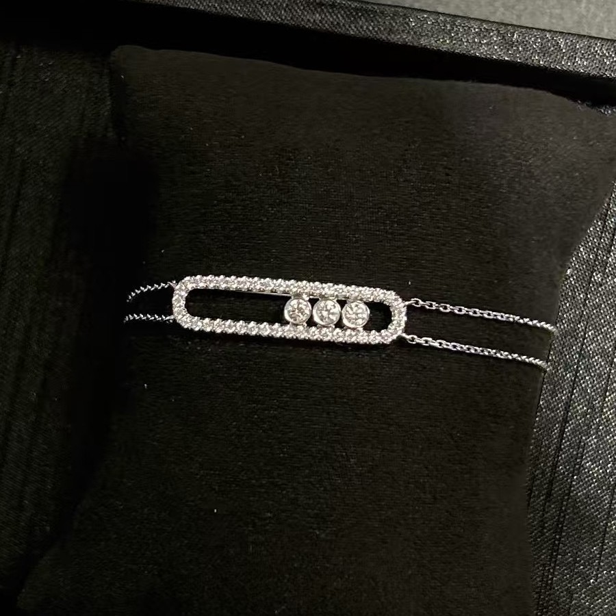 飾梅家三顆鑽石可滑動滿鑽廻形針U型小衆輕奢高級感大號手鏈