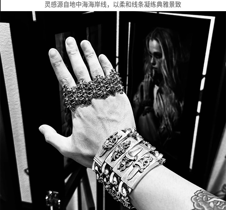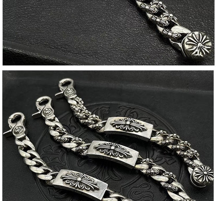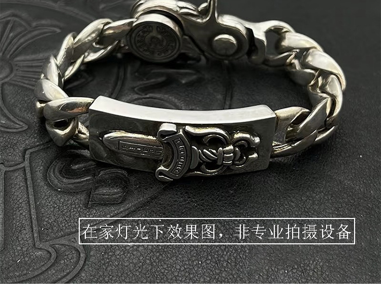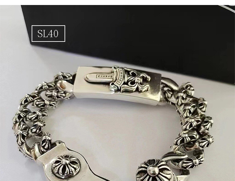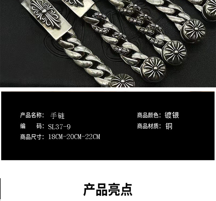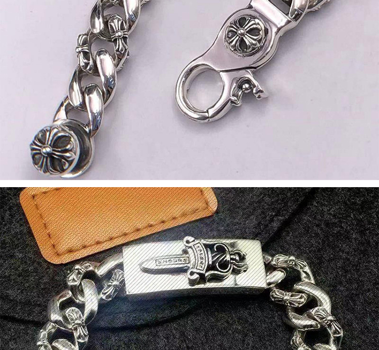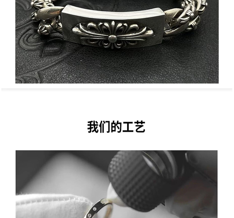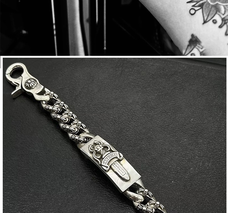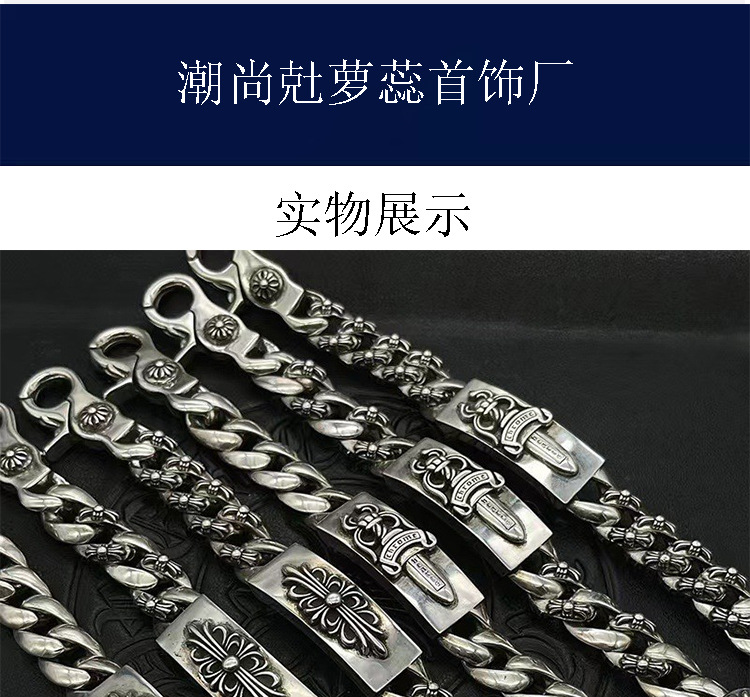 克羅心手鏈龐克十字架滿花霸氣做舊寶劍嘻哈搖滾時尚粗手鏈男士款