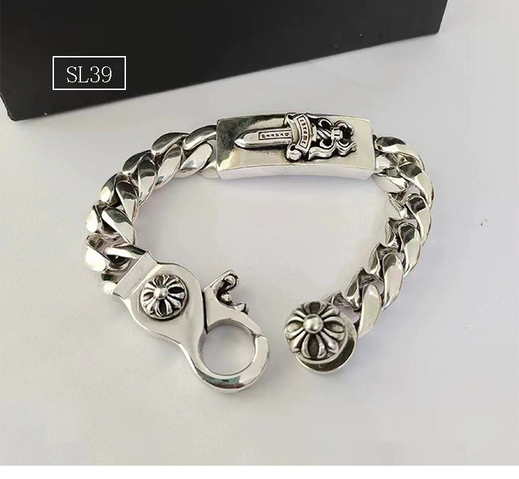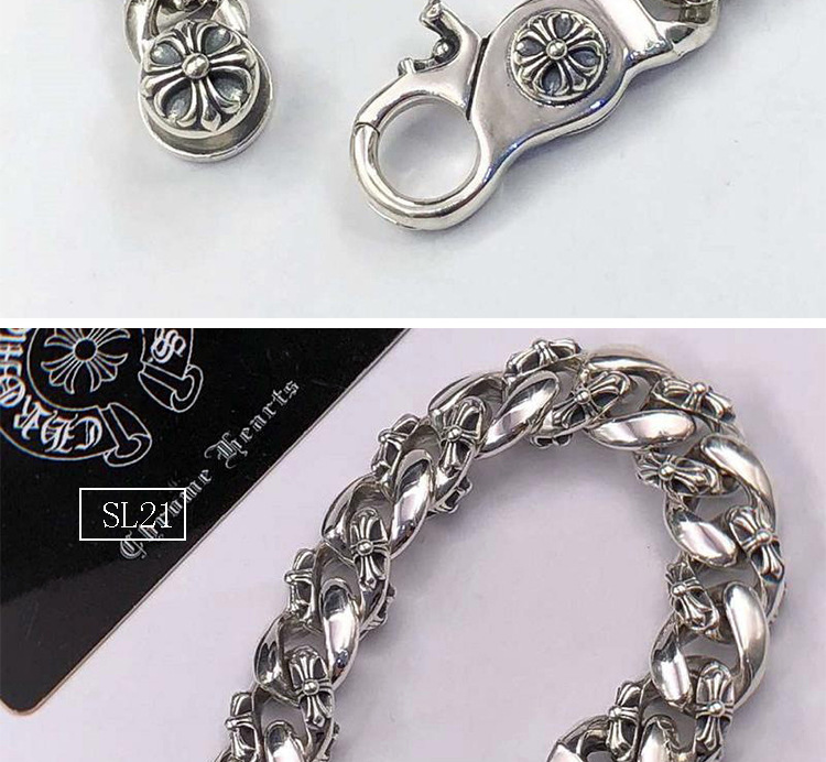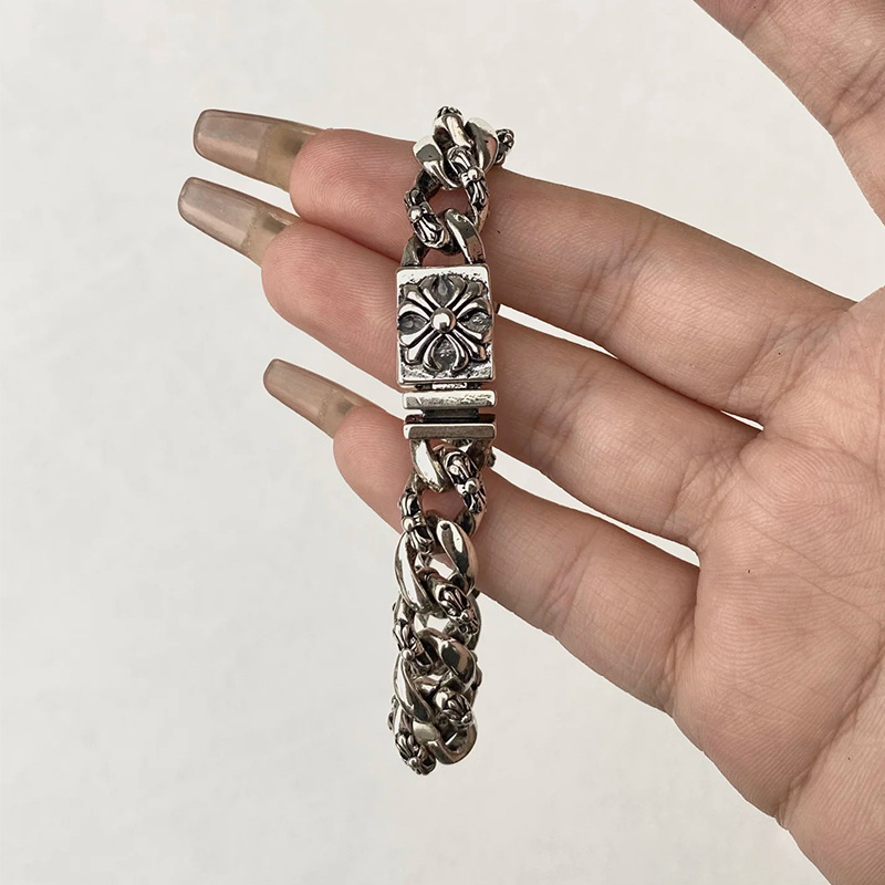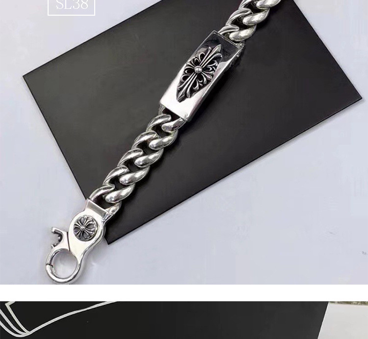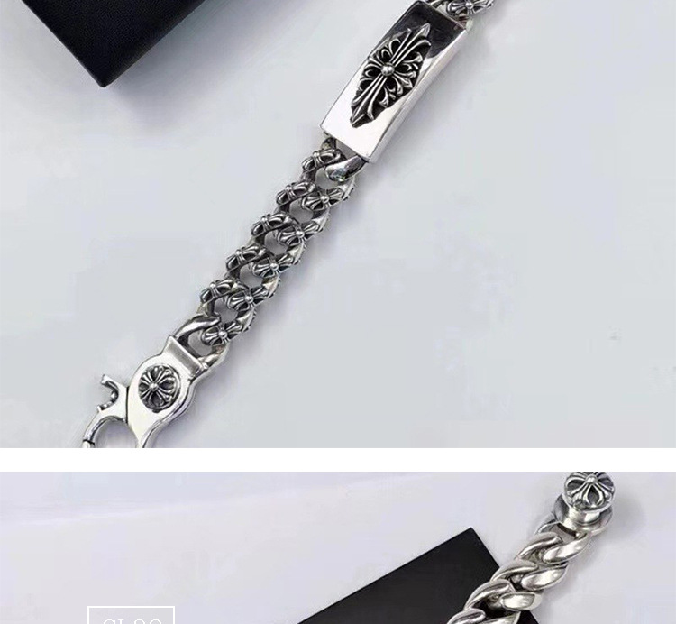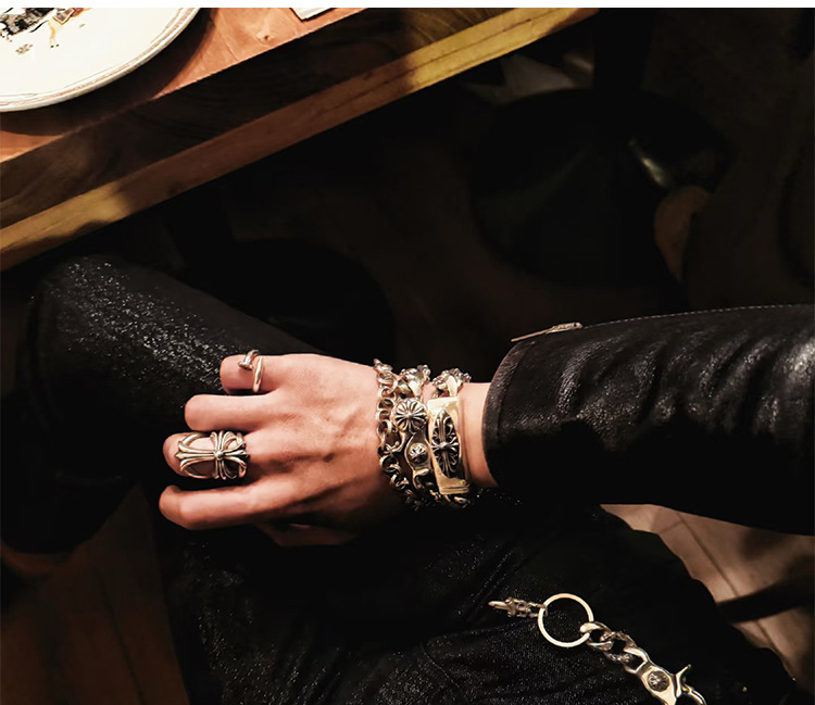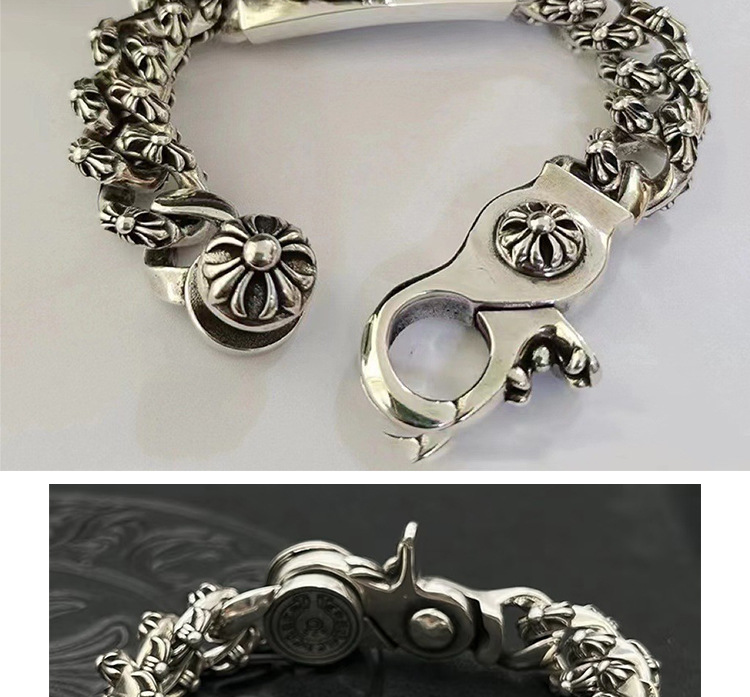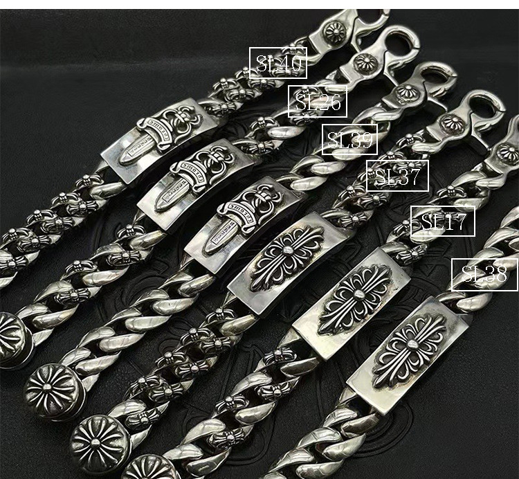 克羅心手鏈龐克十字架滿花霸氣做舊寶劍嘻哈搖滾時尚粗手鏈男士款
