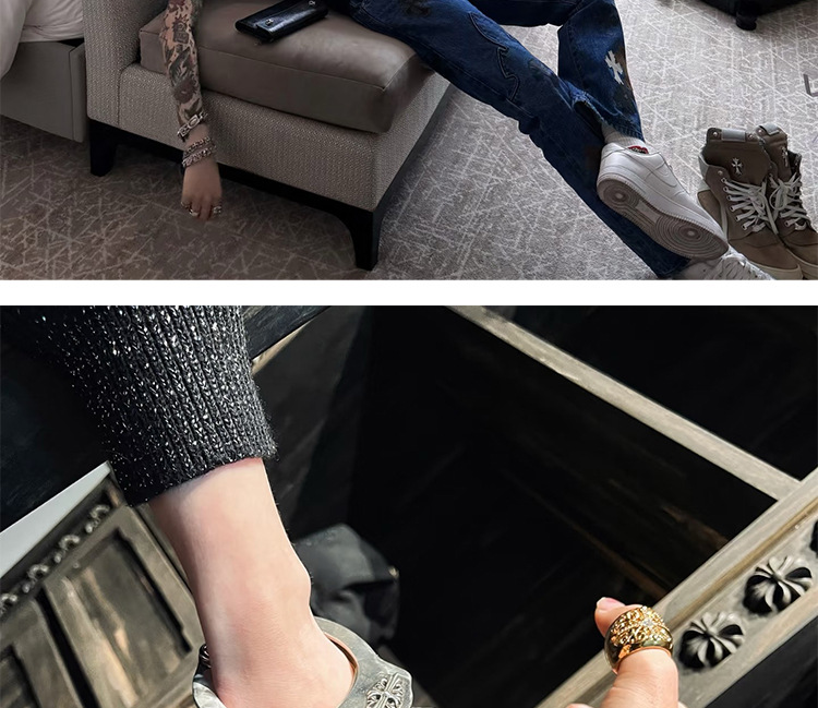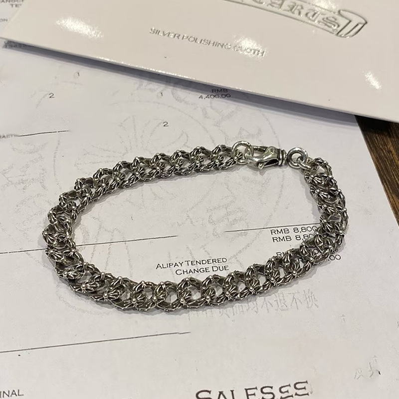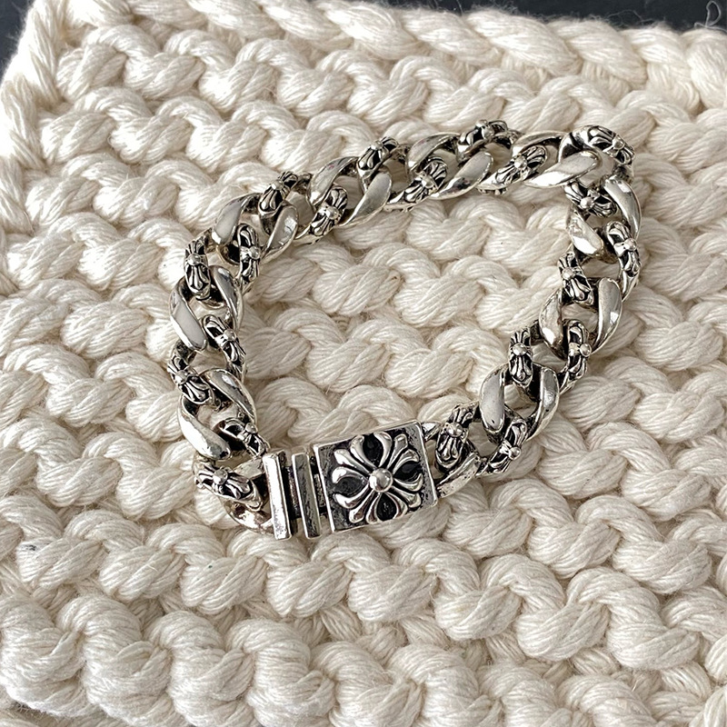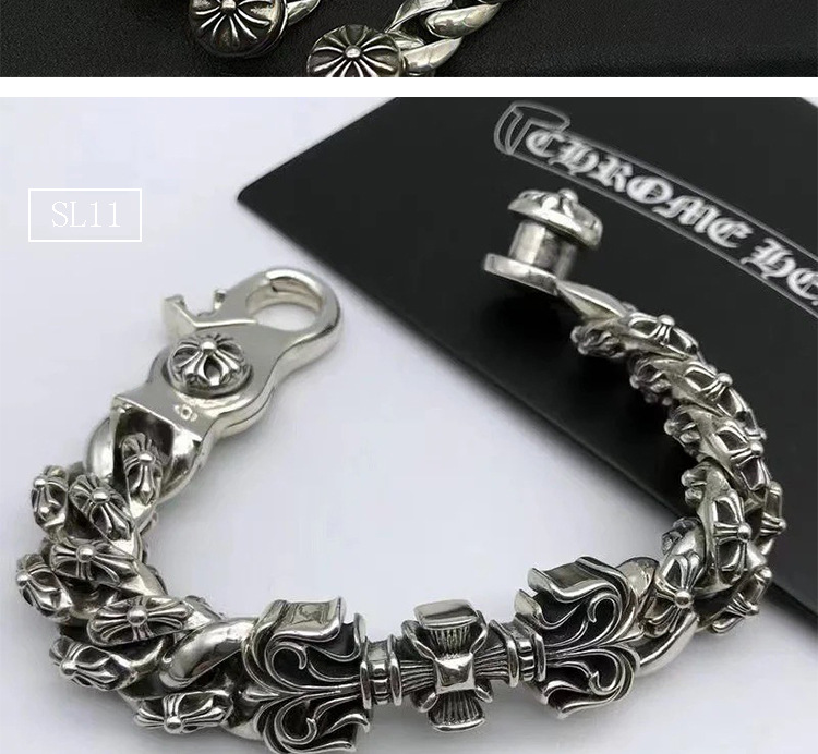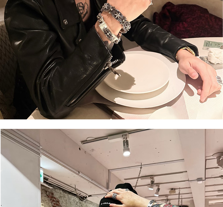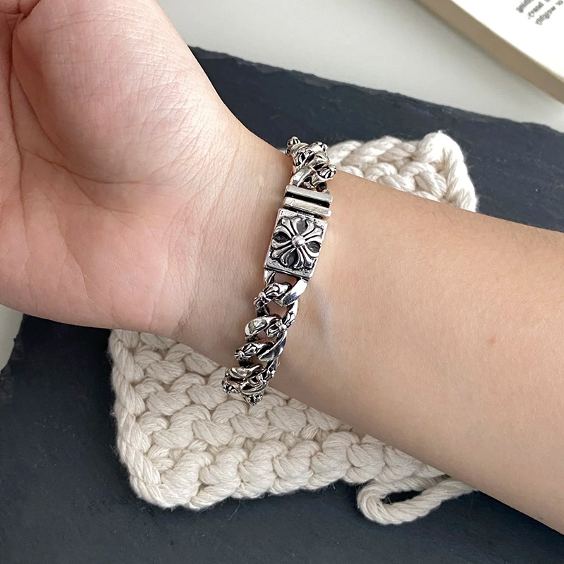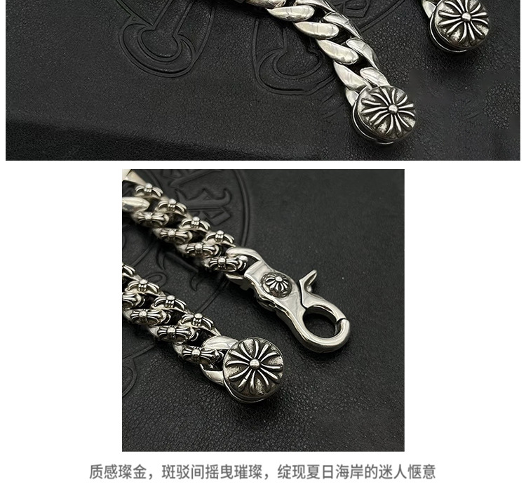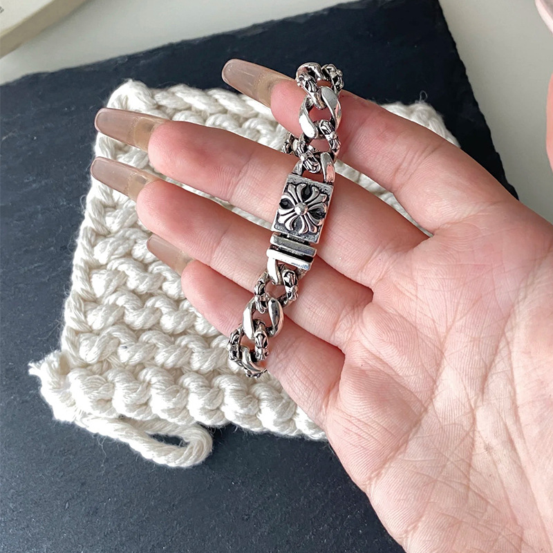 克羅心手鏈龐克十字架滿花霸氣做舊寶劍嘻哈搖滾時尚粗手鏈男士款