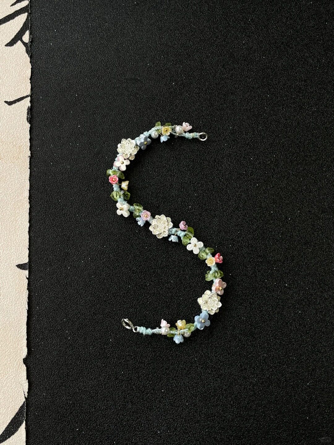英國【設計師】Make Kana S925鍍銀蓮花彩色編織手繩小衆手鏈擺件