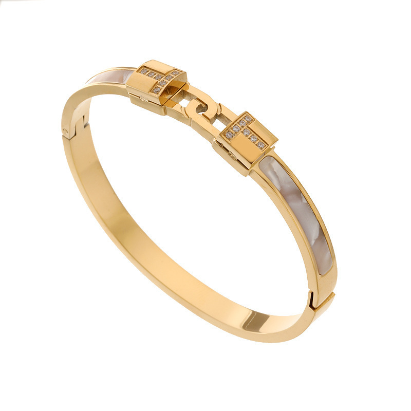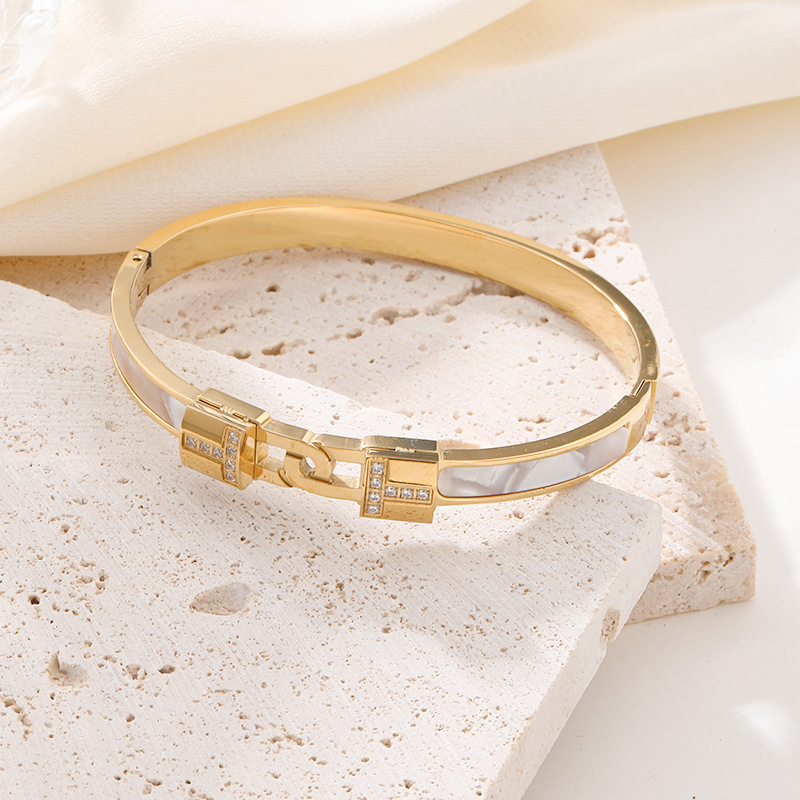 天然貝母H字母手手鐲女ins日韓冷淡風小衆設計鈦鋼掉色手環