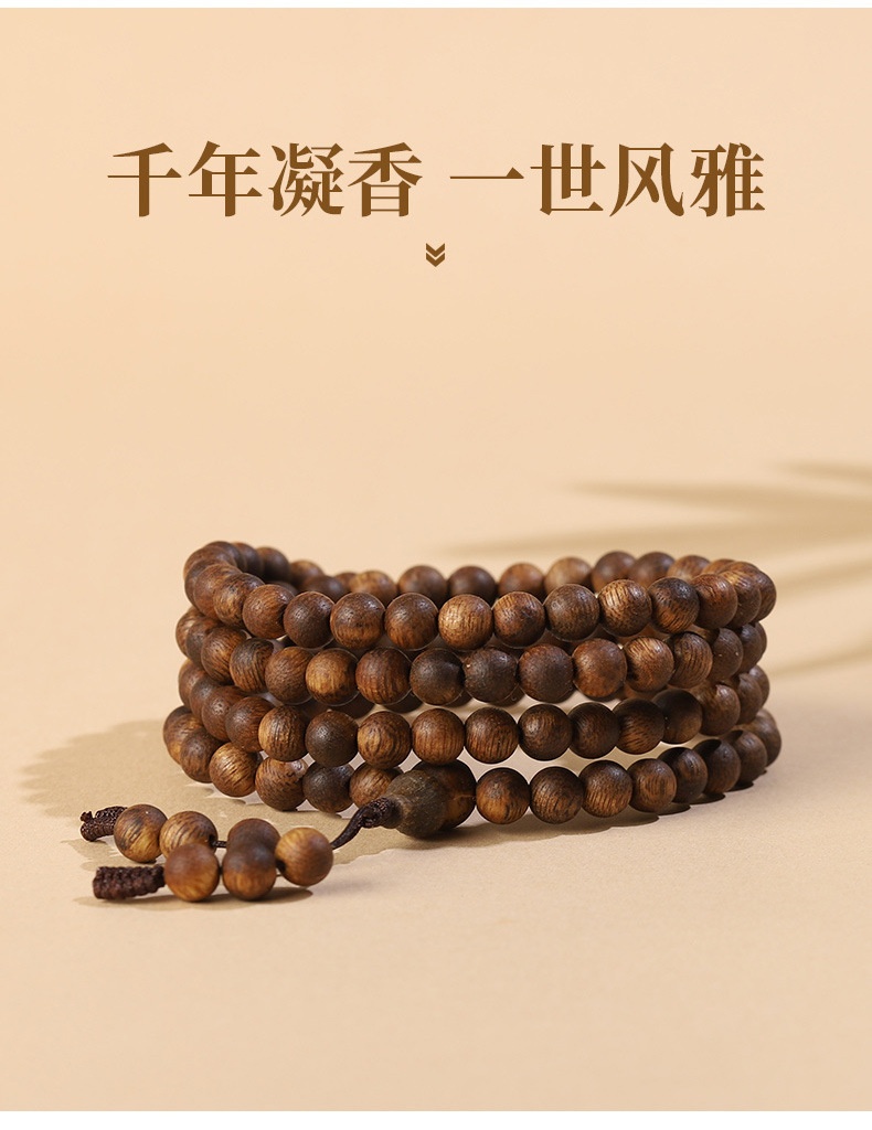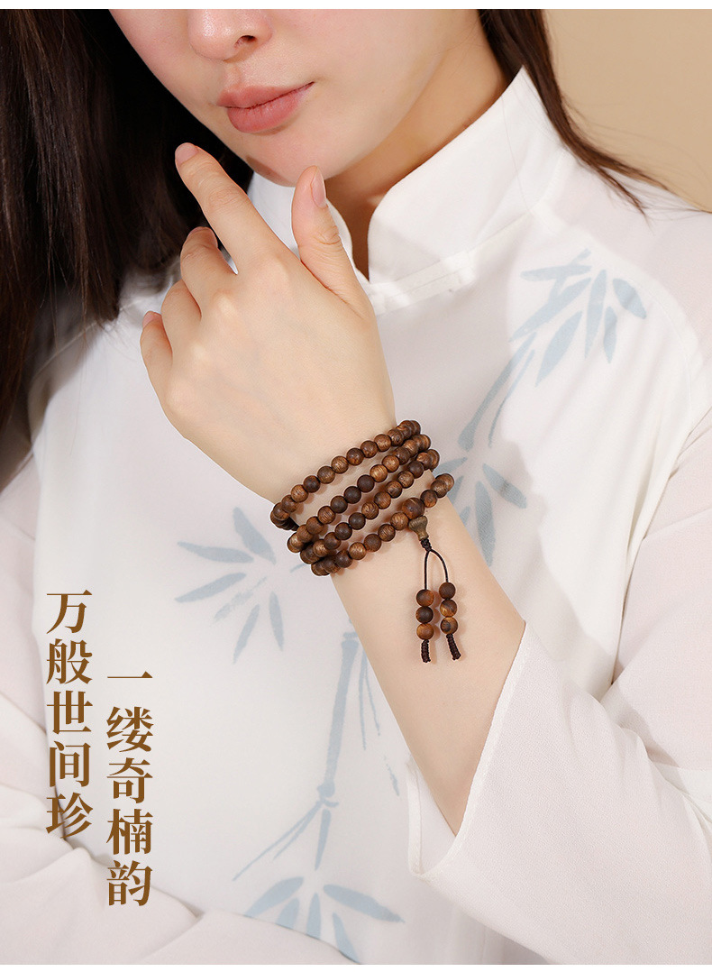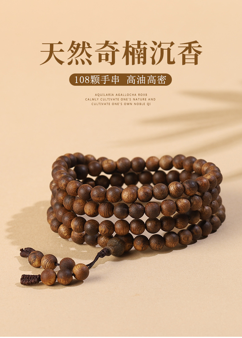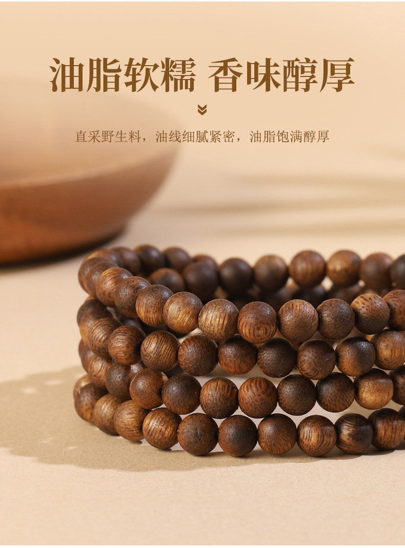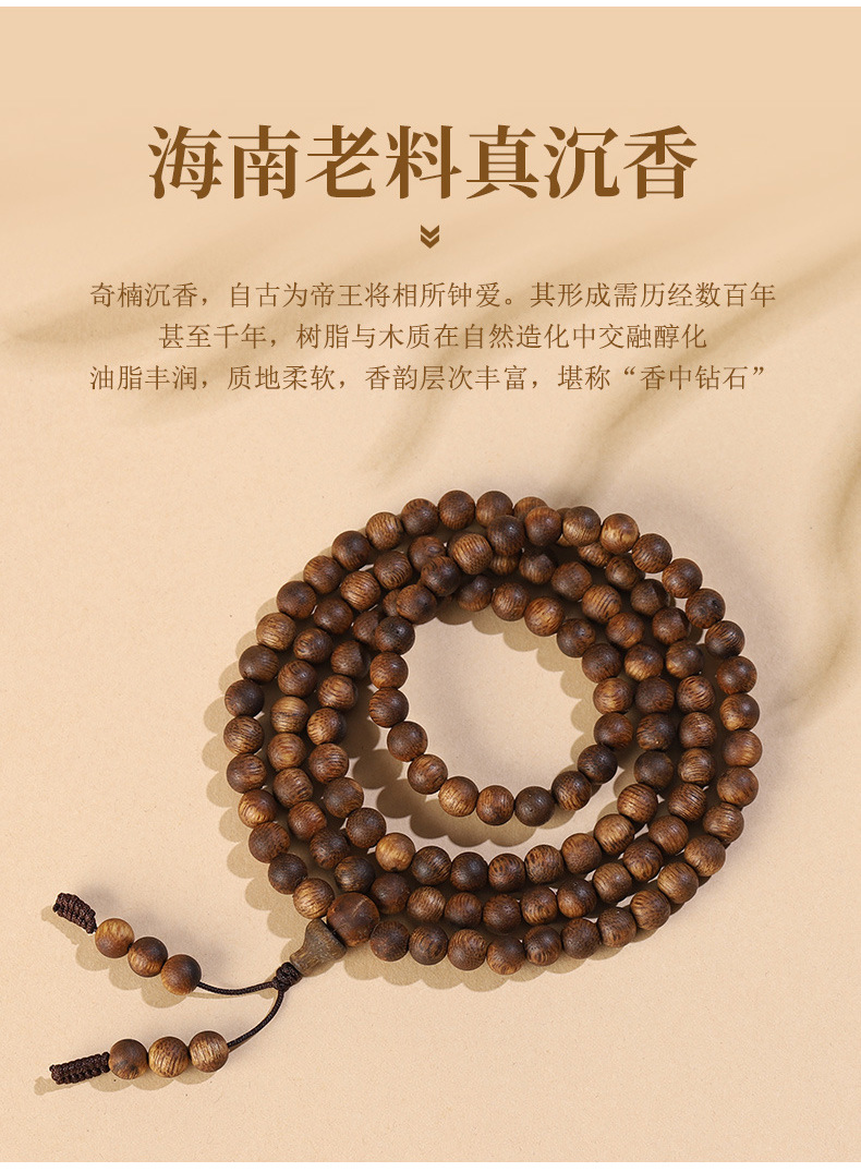 天然老料海南奇楠沉香真品手串男女款高油脂圓珠108顆多圈手鏈