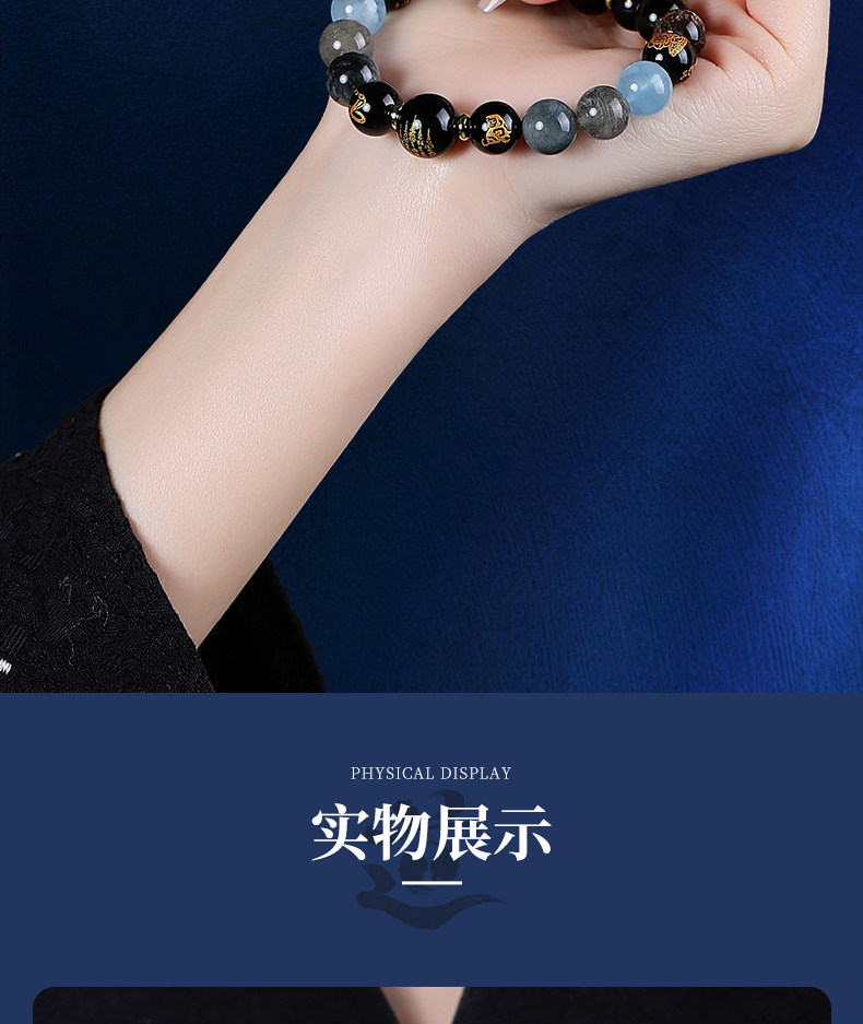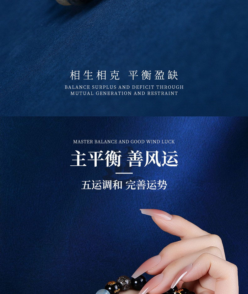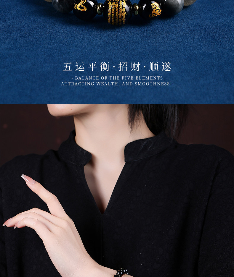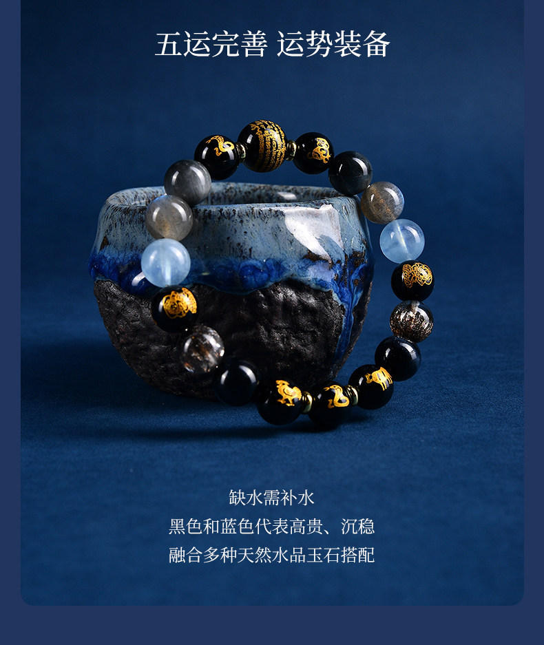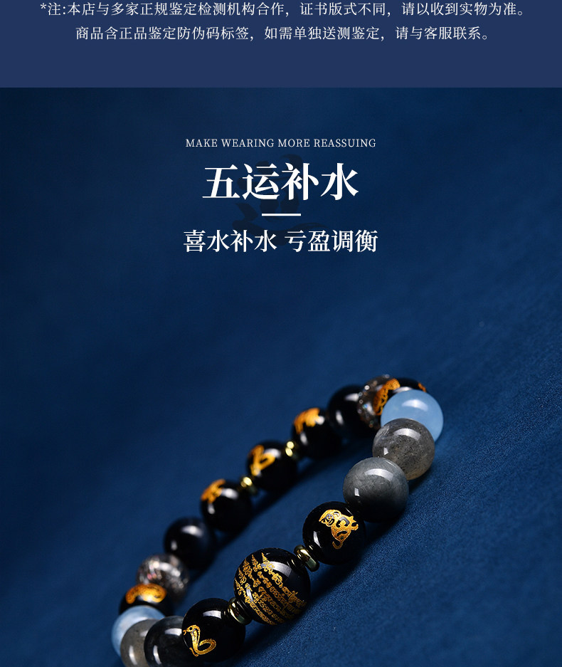 五行補水喜用水手串十二生肖三合六合五行手鏈天然黑曜石手串