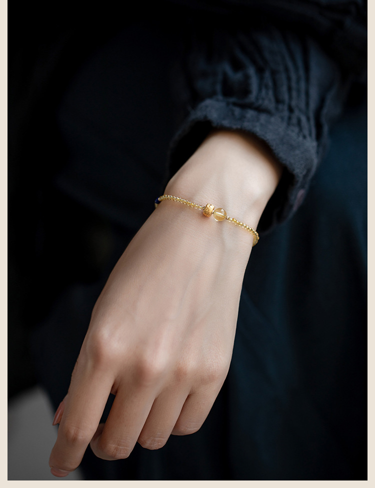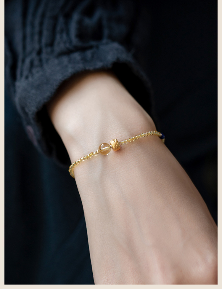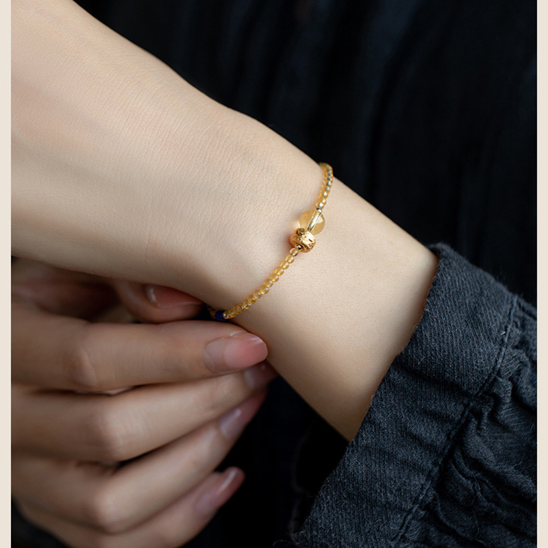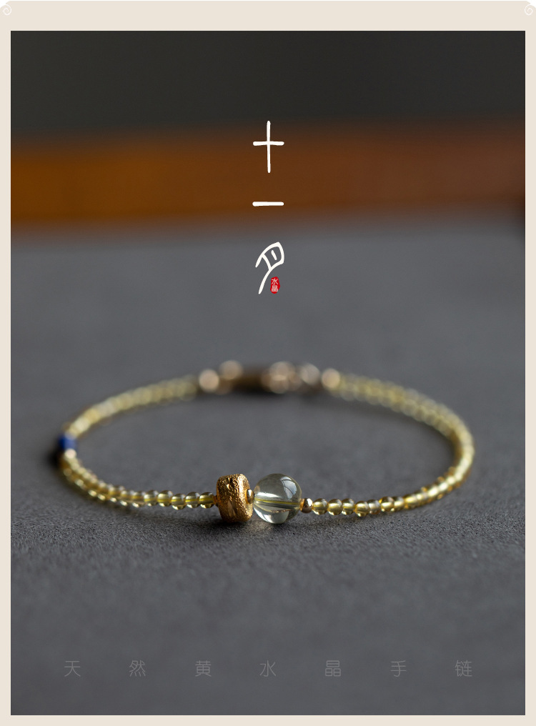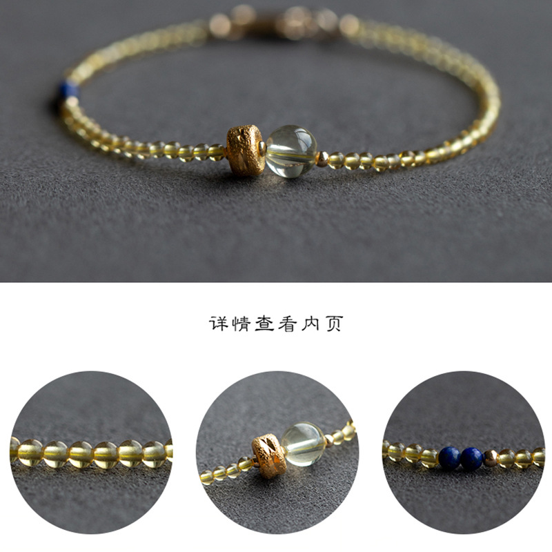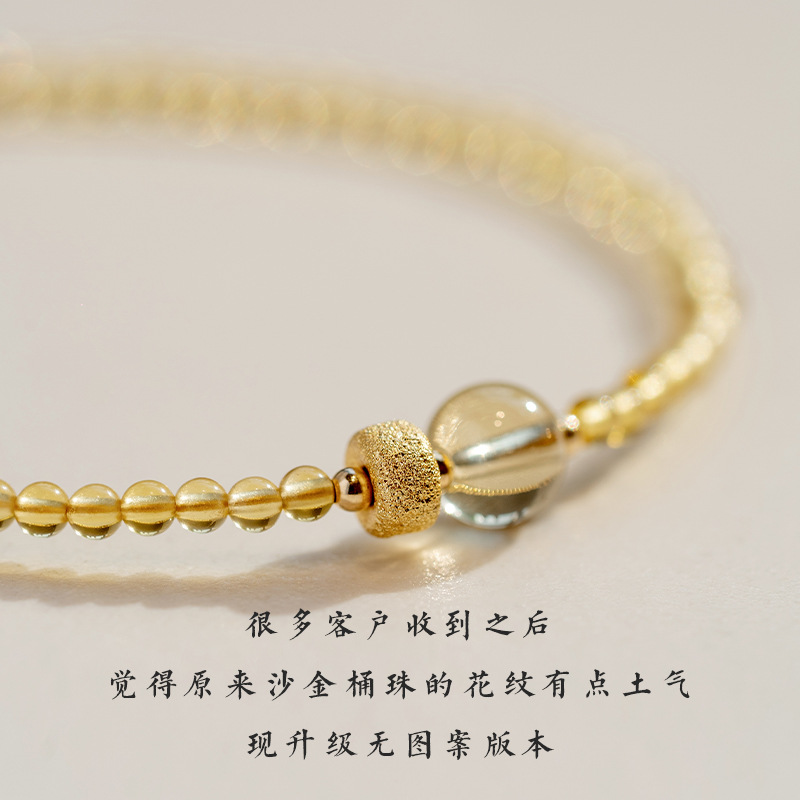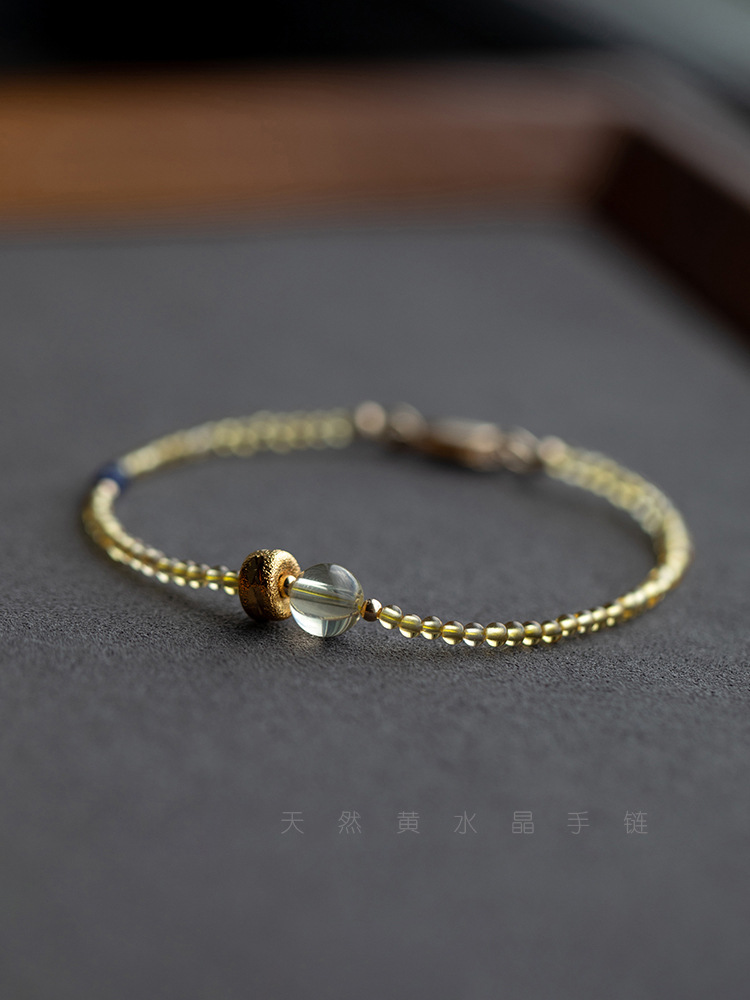 女式黃水晶手鏈巴西黃水晶沙金轉運珠手鏈細小款水晶手鏈民族風