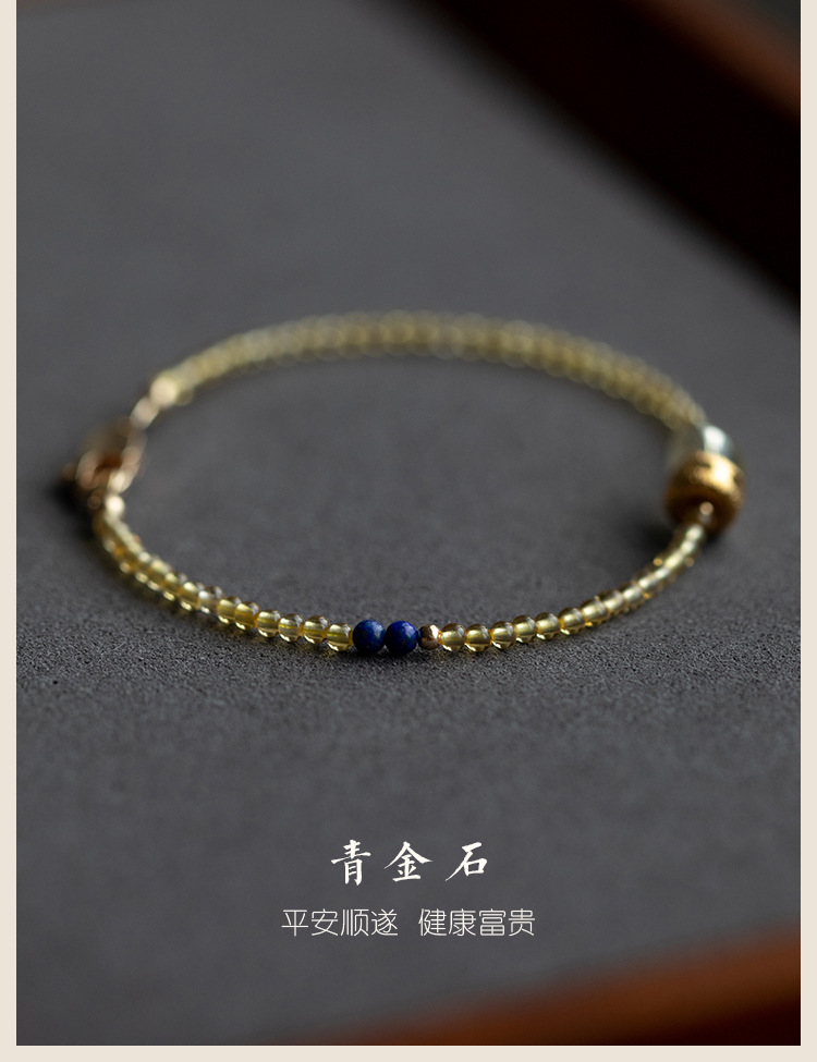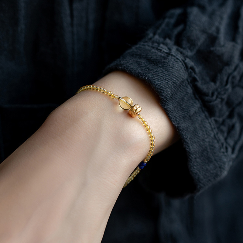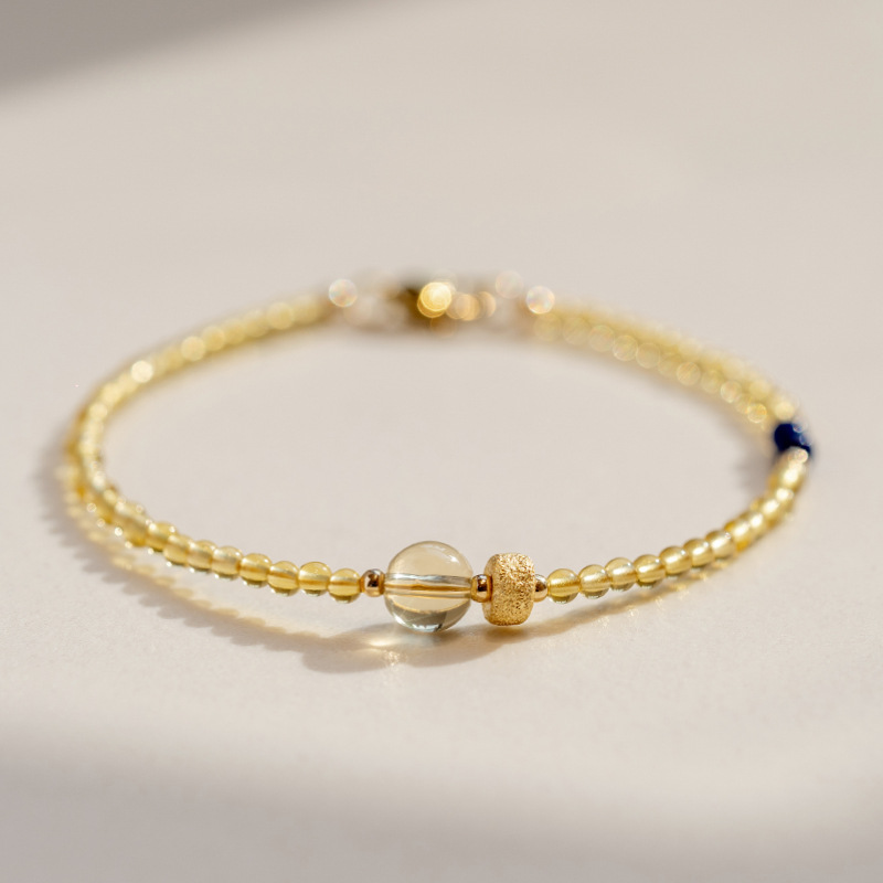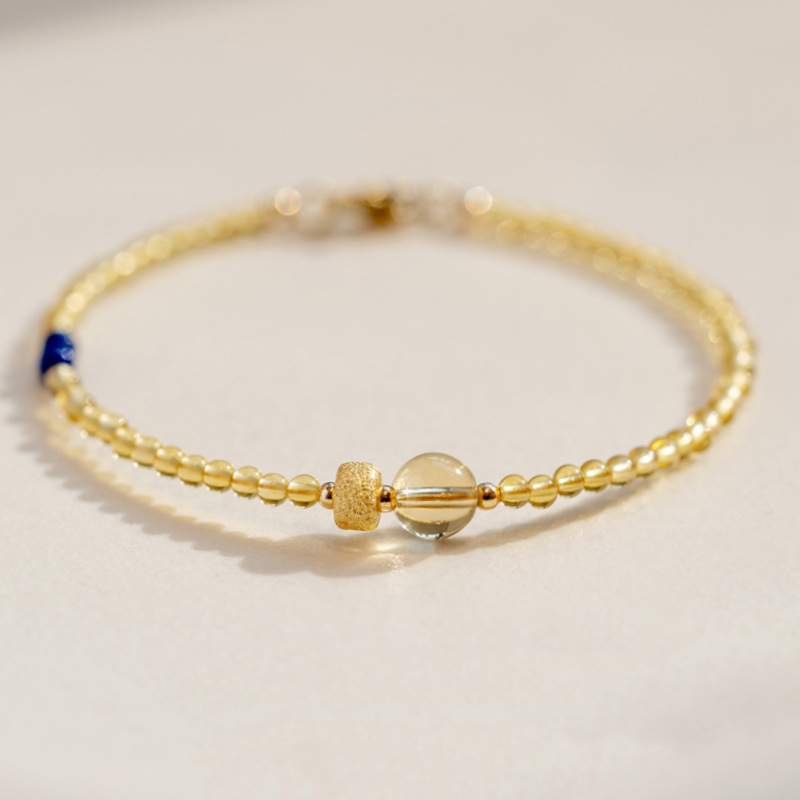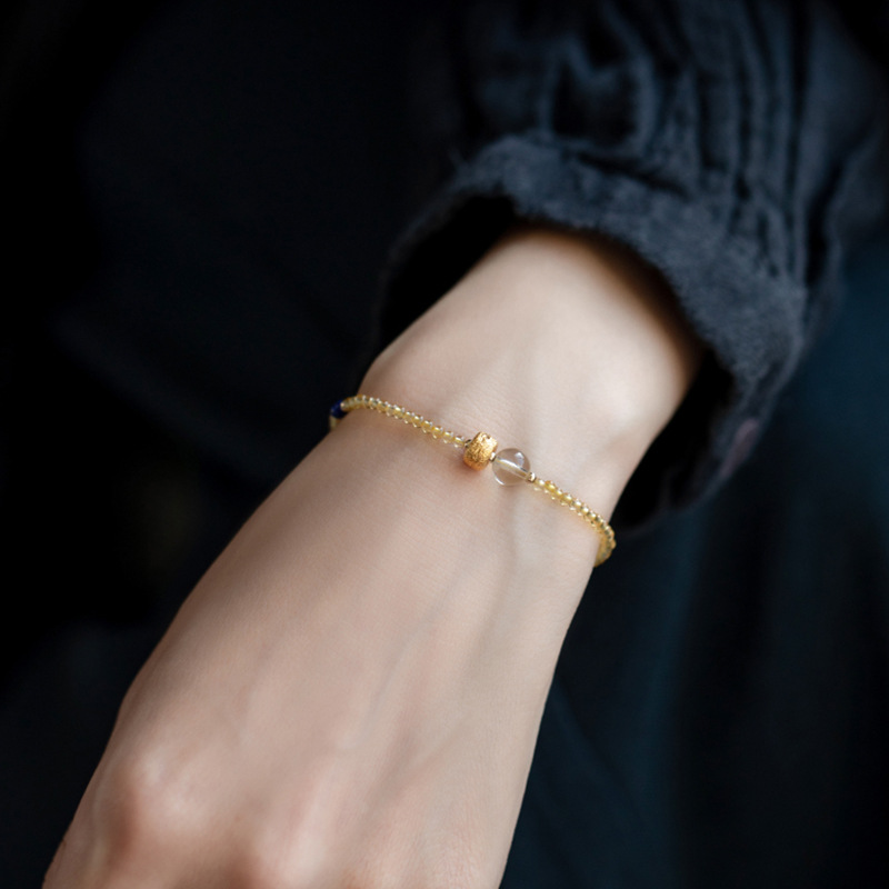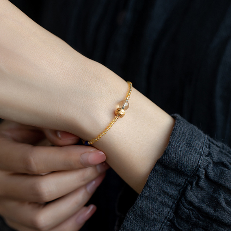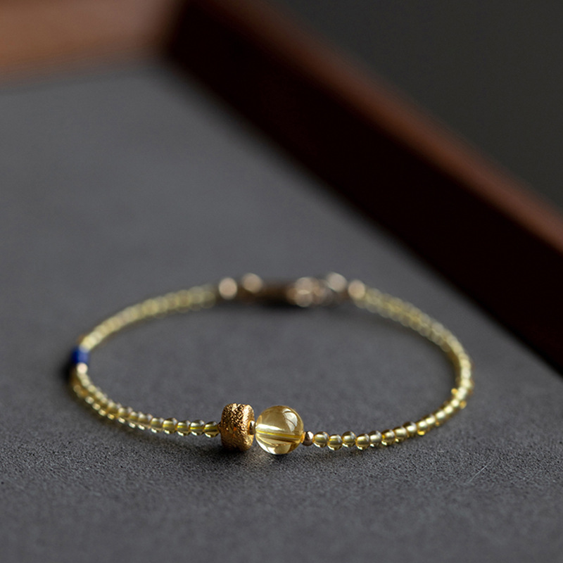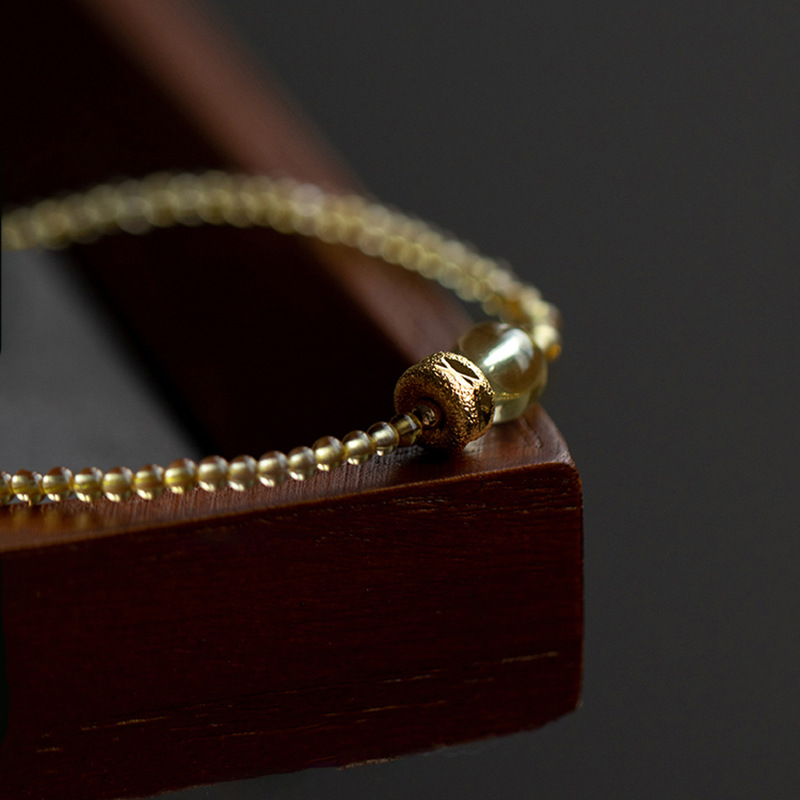 女式黃水晶手鏈巴西黃水晶沙金轉運珠手鏈細小款水晶手鏈民族風