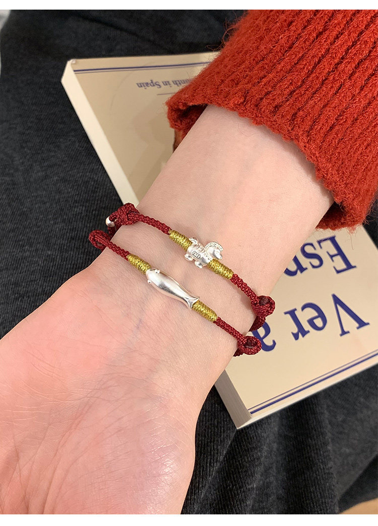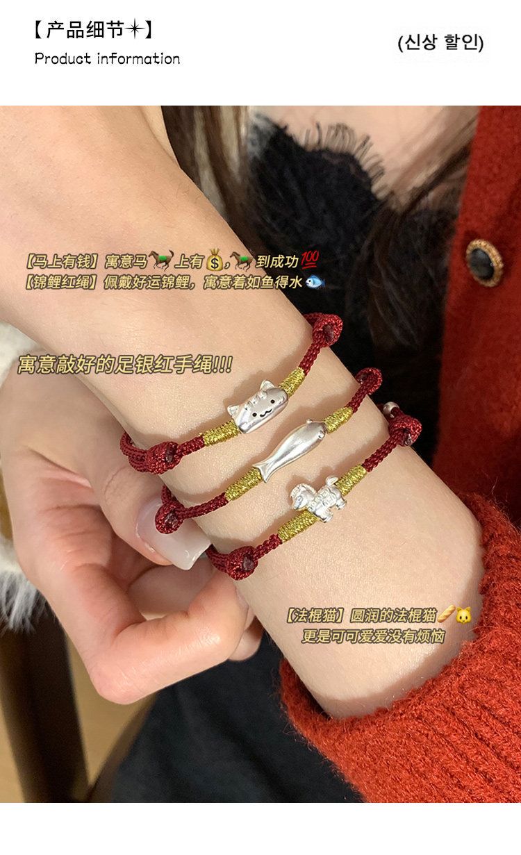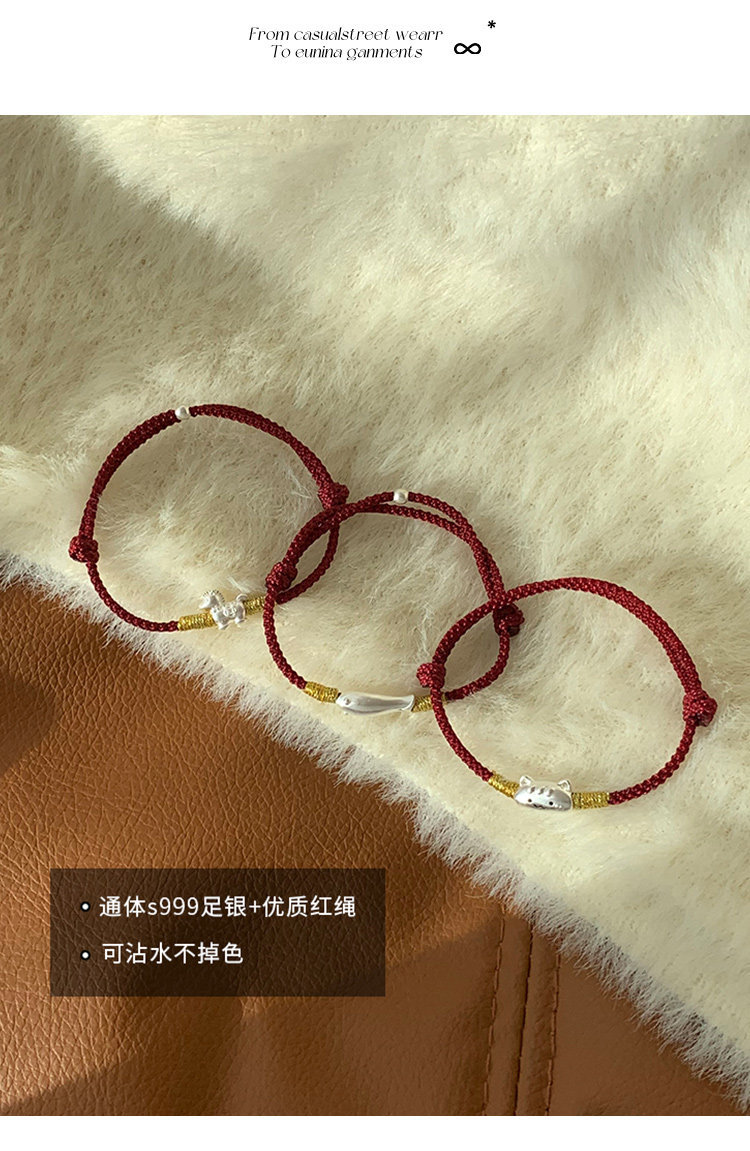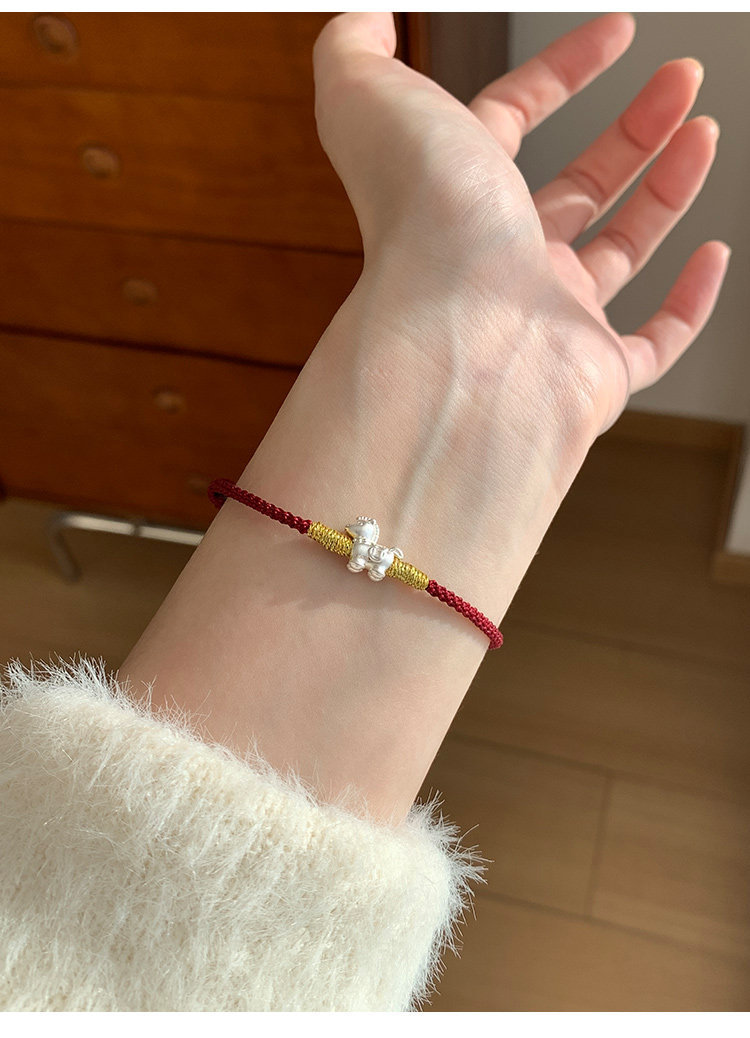 桃樂s999足銀法棍貓小馬手鏈輕奢小衆精緻2026屬馬本命年紅繩女款