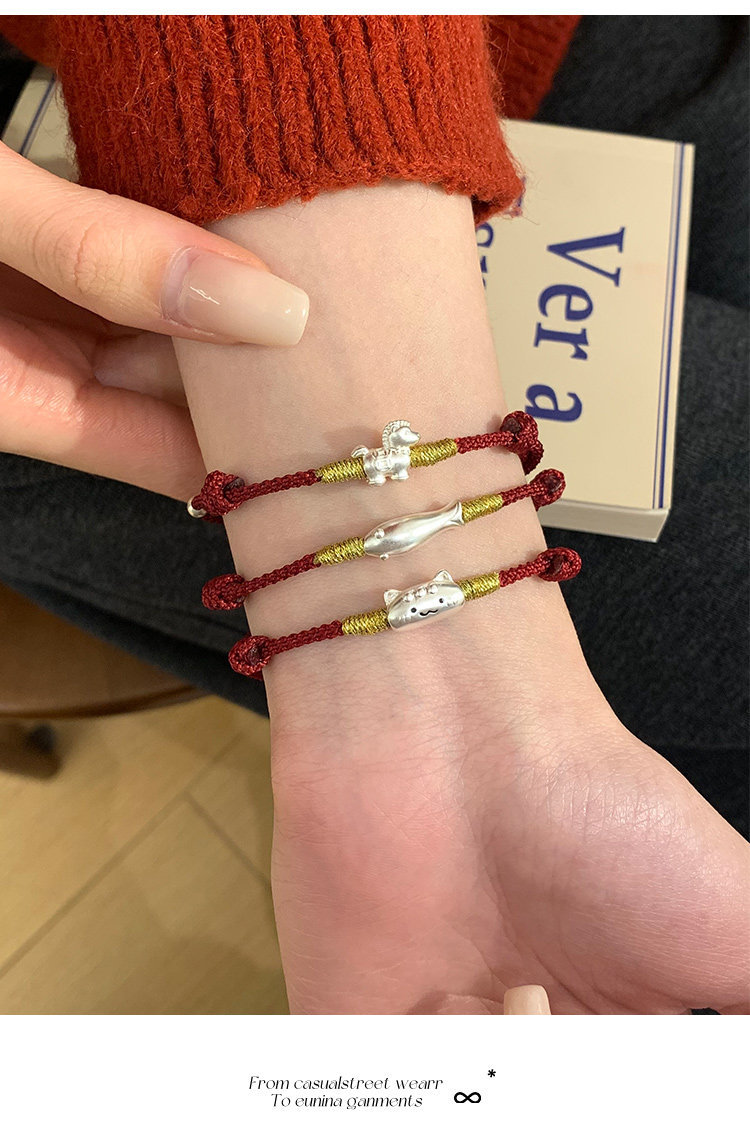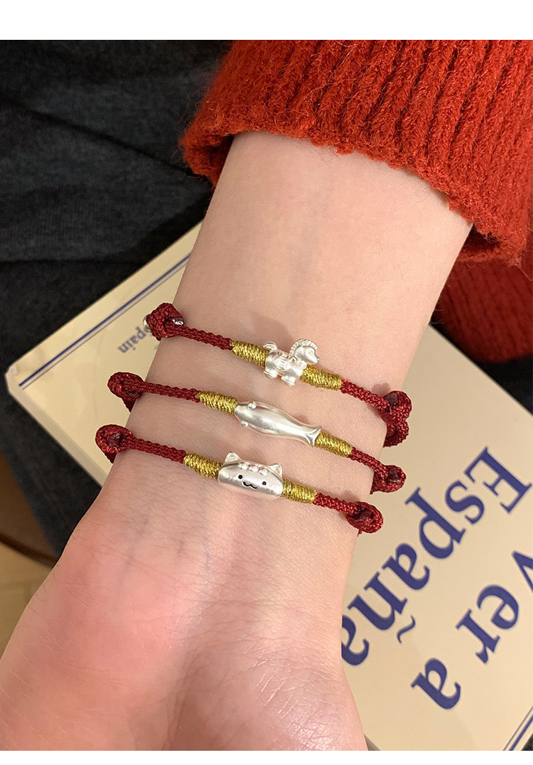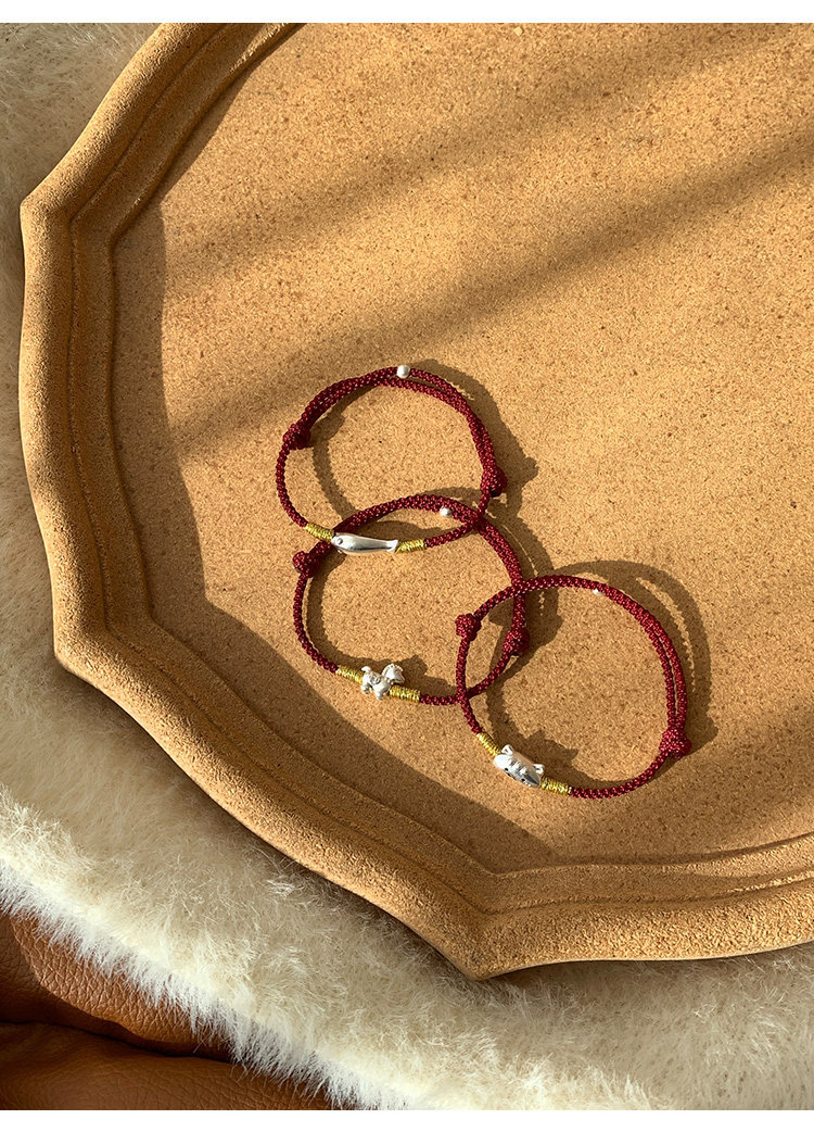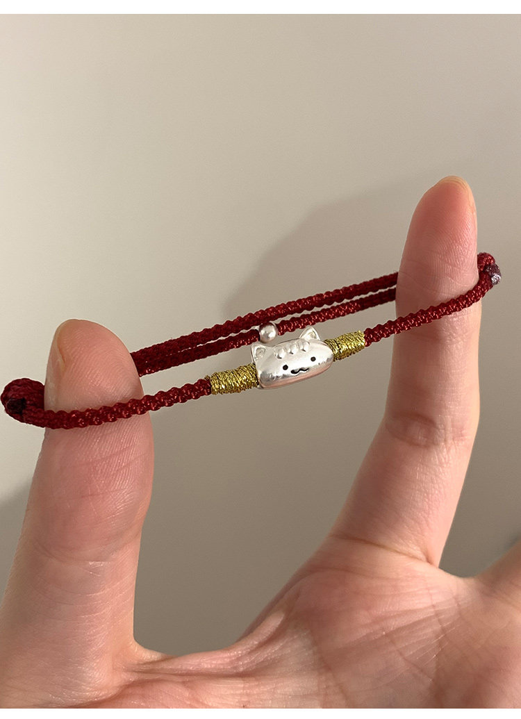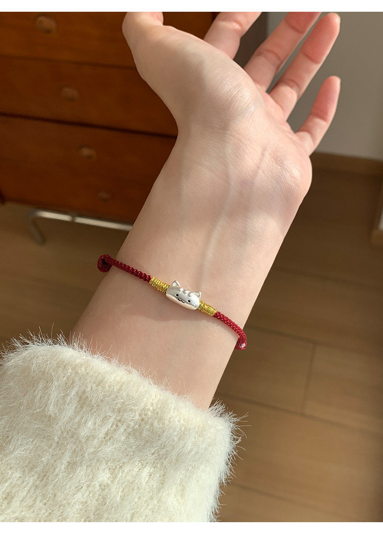 桃樂s999足銀法棍貓小馬手鏈輕奢小衆精緻2026屬馬本命年紅繩女款