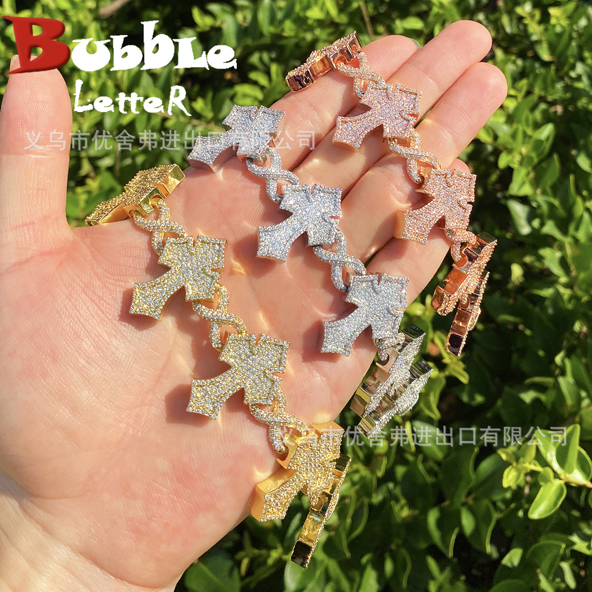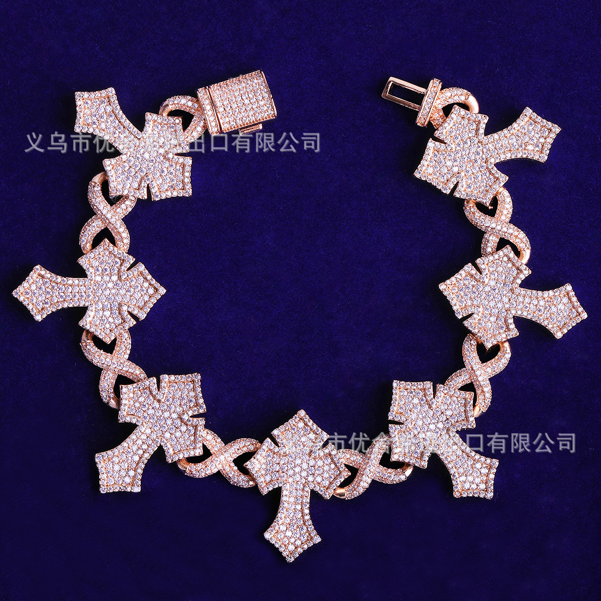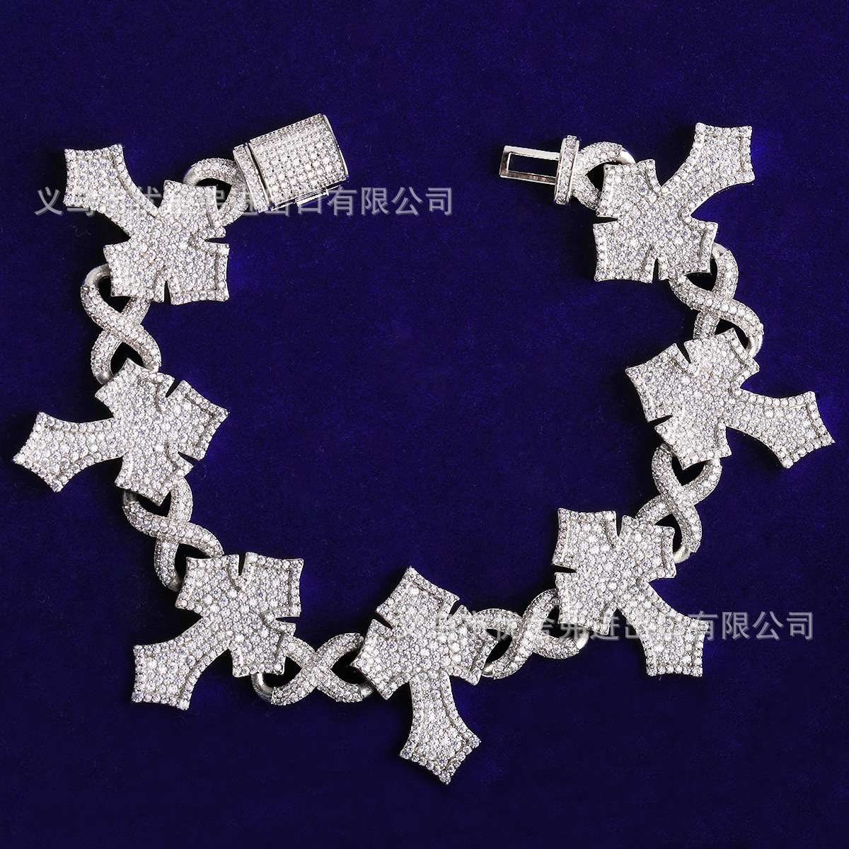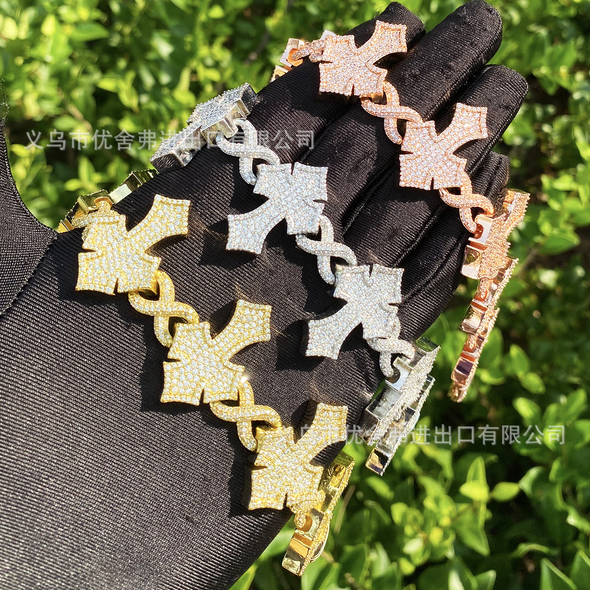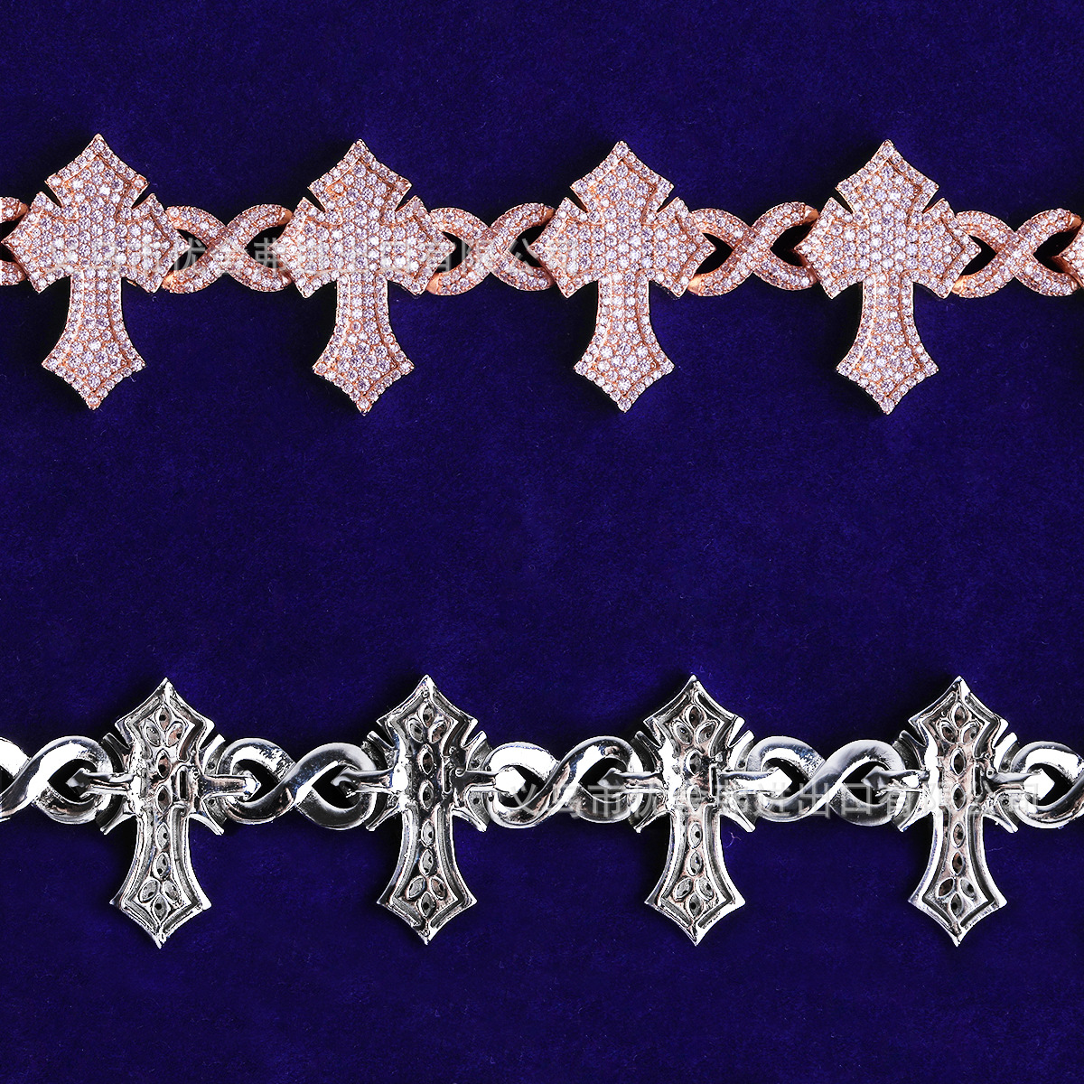 歐美十字架無限8手鏈銅鑲鋯石嘻哈個性時尚男女款嘻哈手鏈