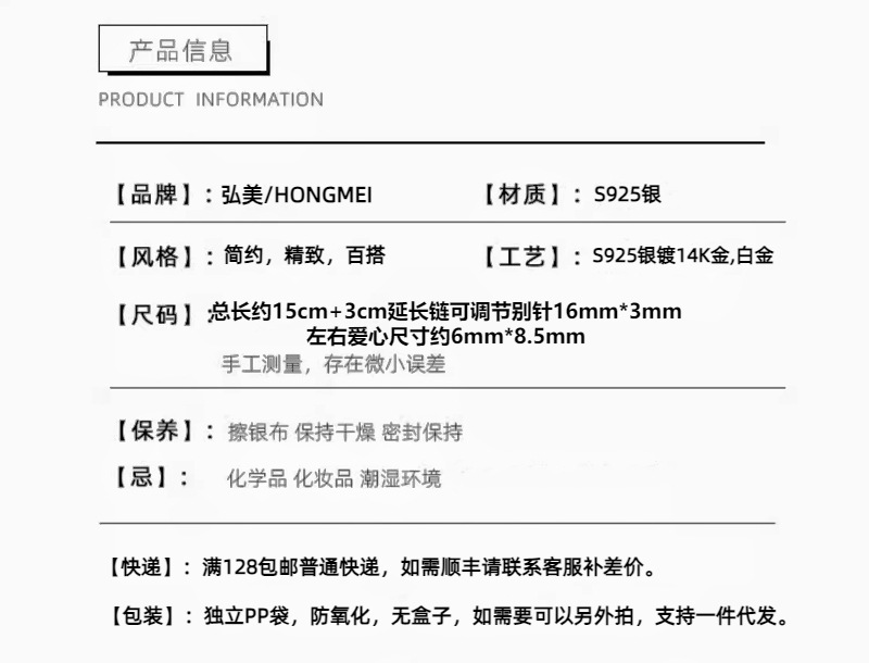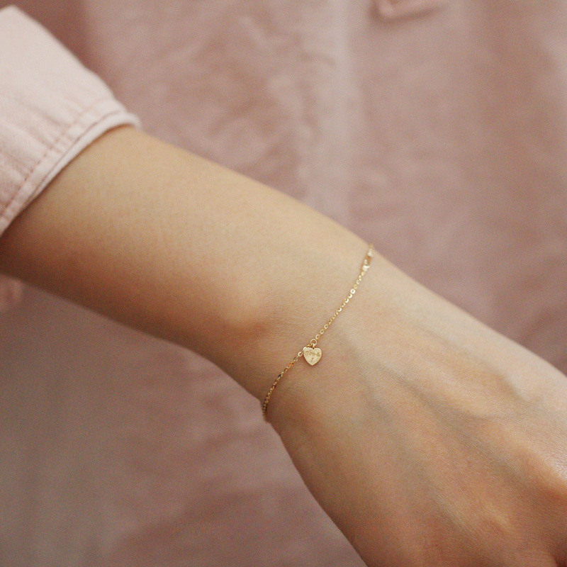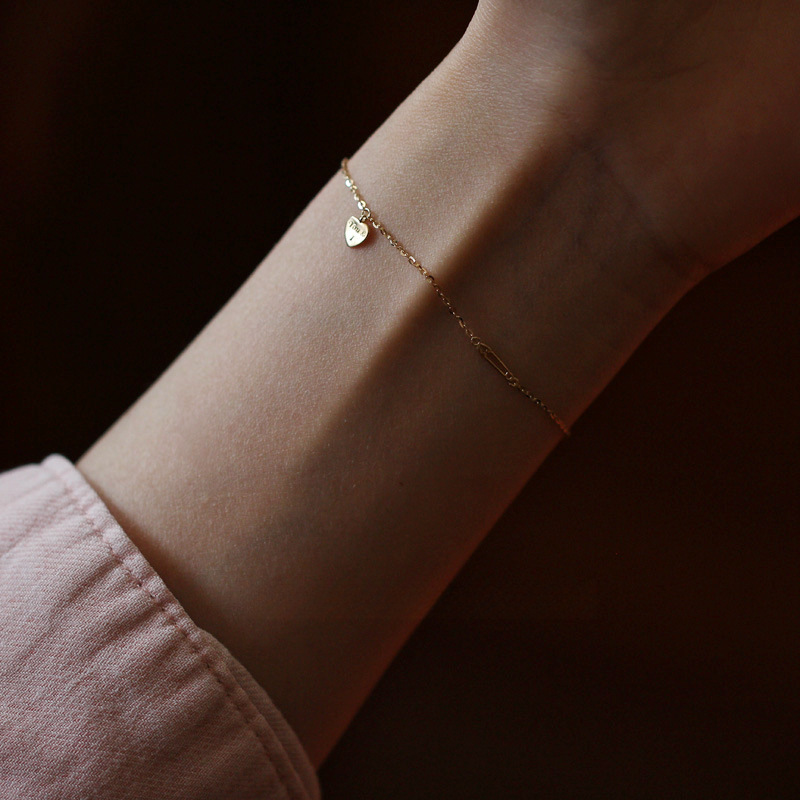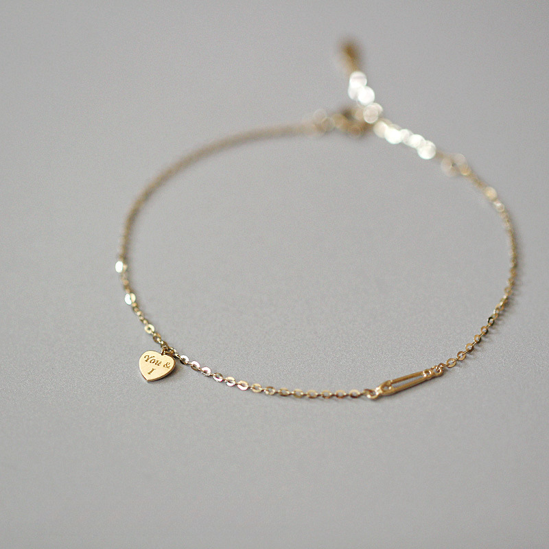 S925純銀鍍14K金細手鏈女款 氣質百搭簡約英文愛心別針迷你手飾品
