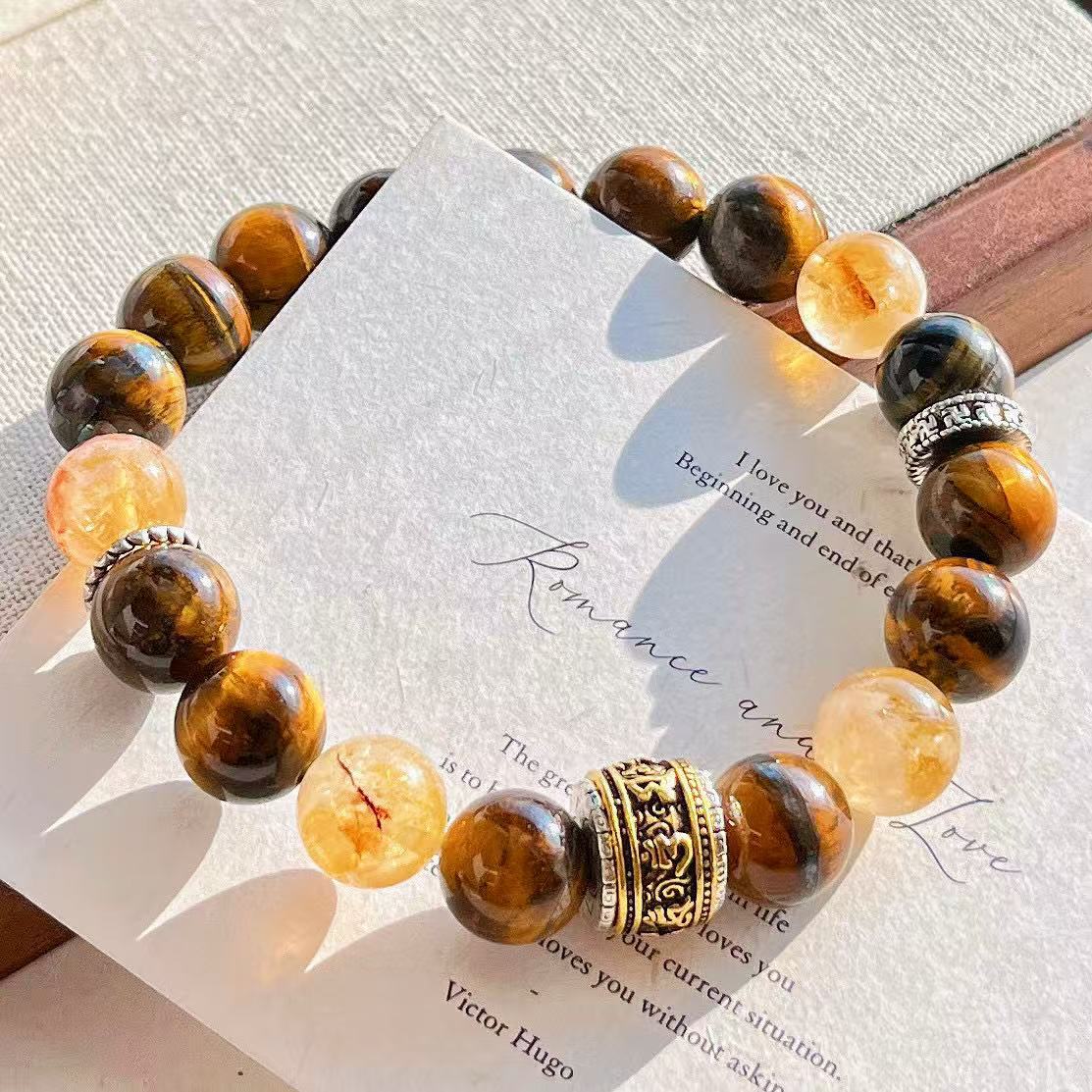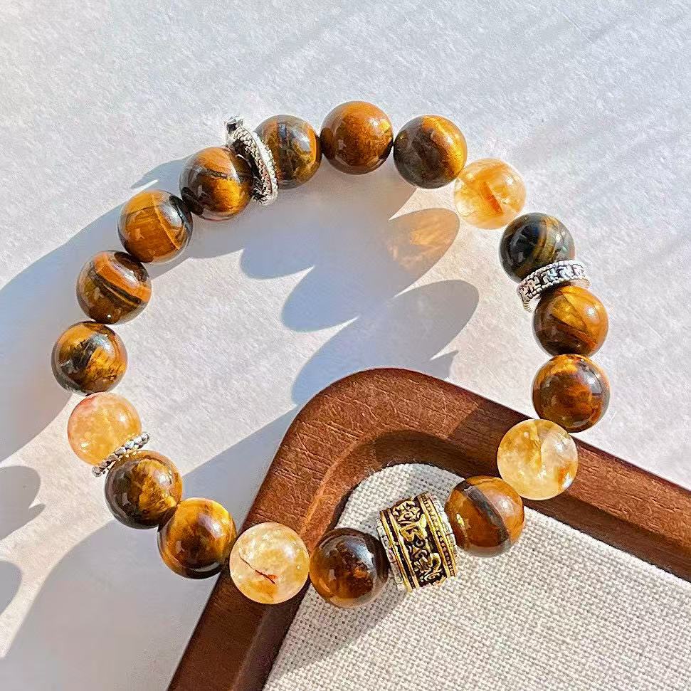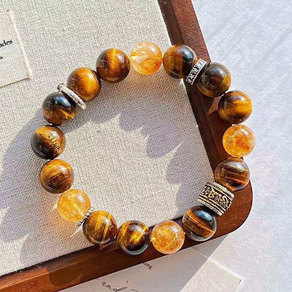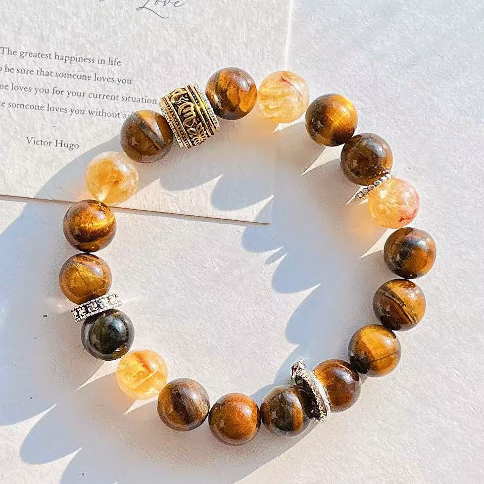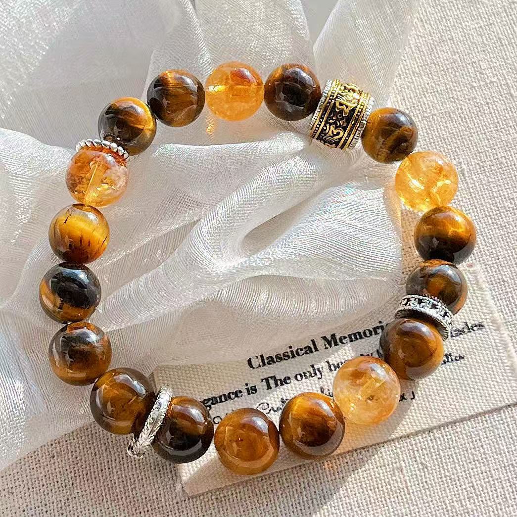 高定美拉德高品質天然虎眼石黃水晶設計感手鏈手串復檢