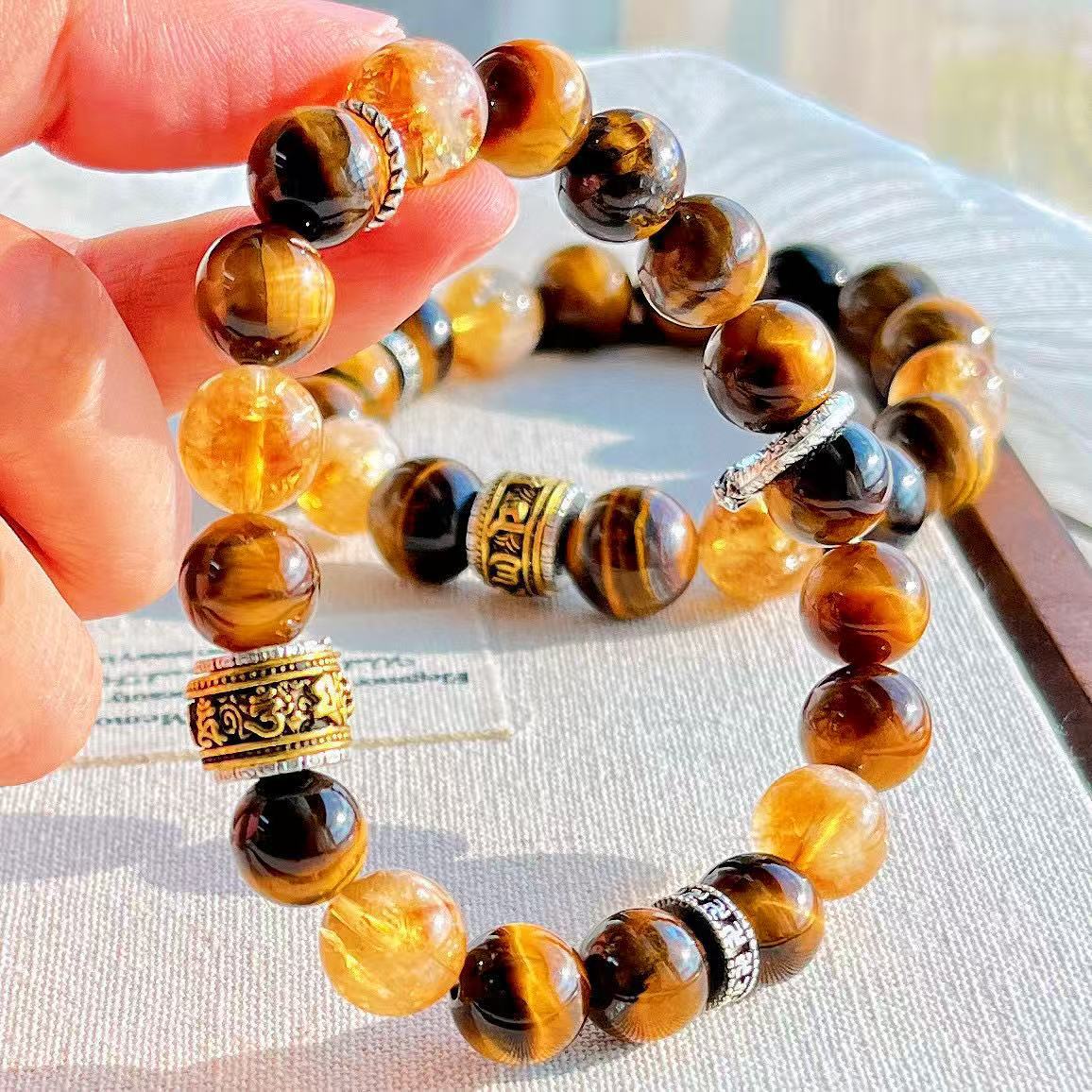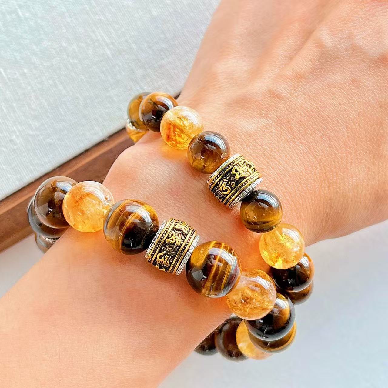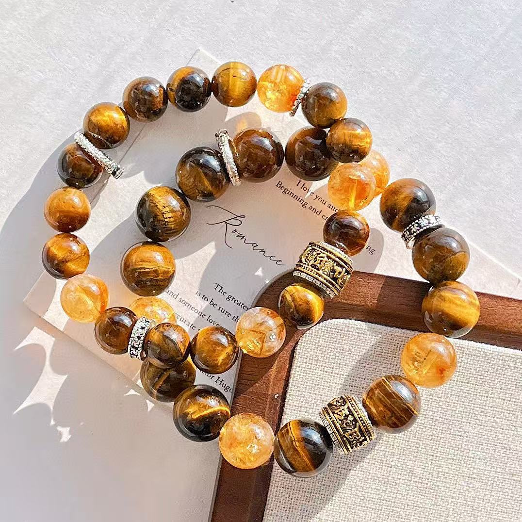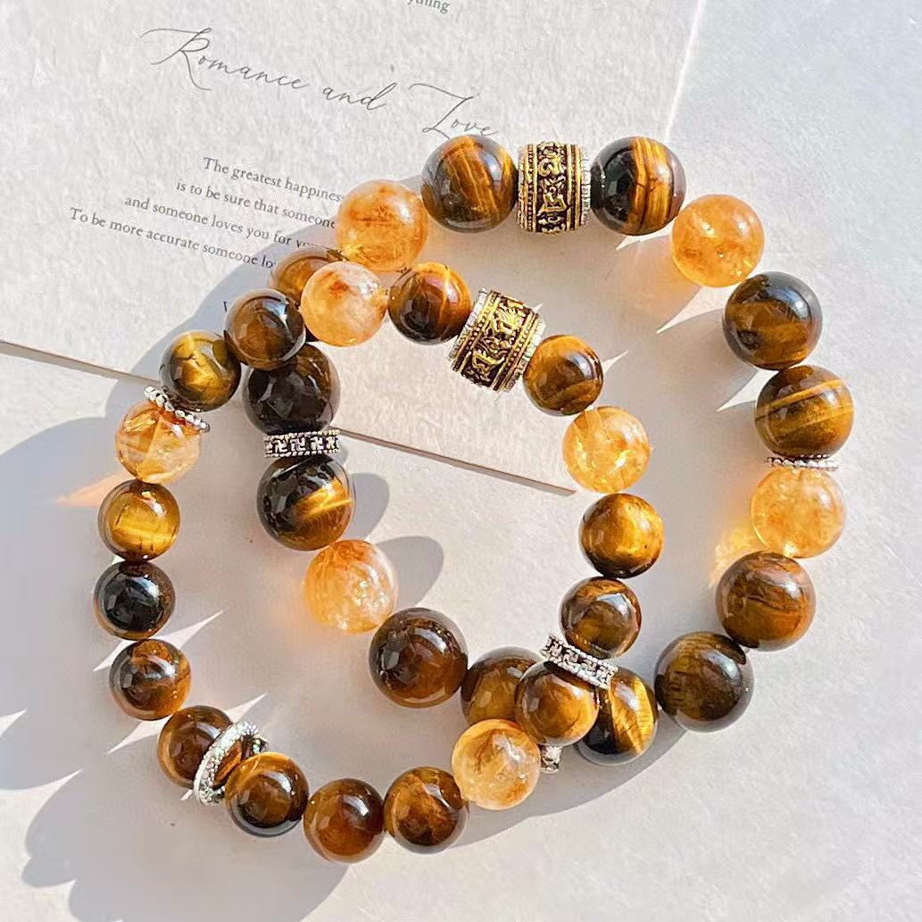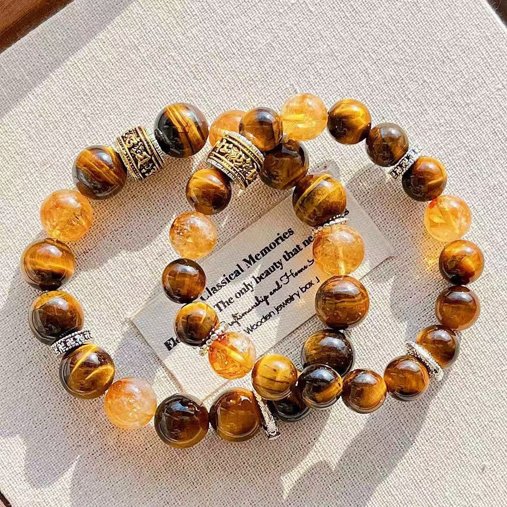 高定美拉德高品質天然虎眼石黃水晶設計感手鏈手串復檢