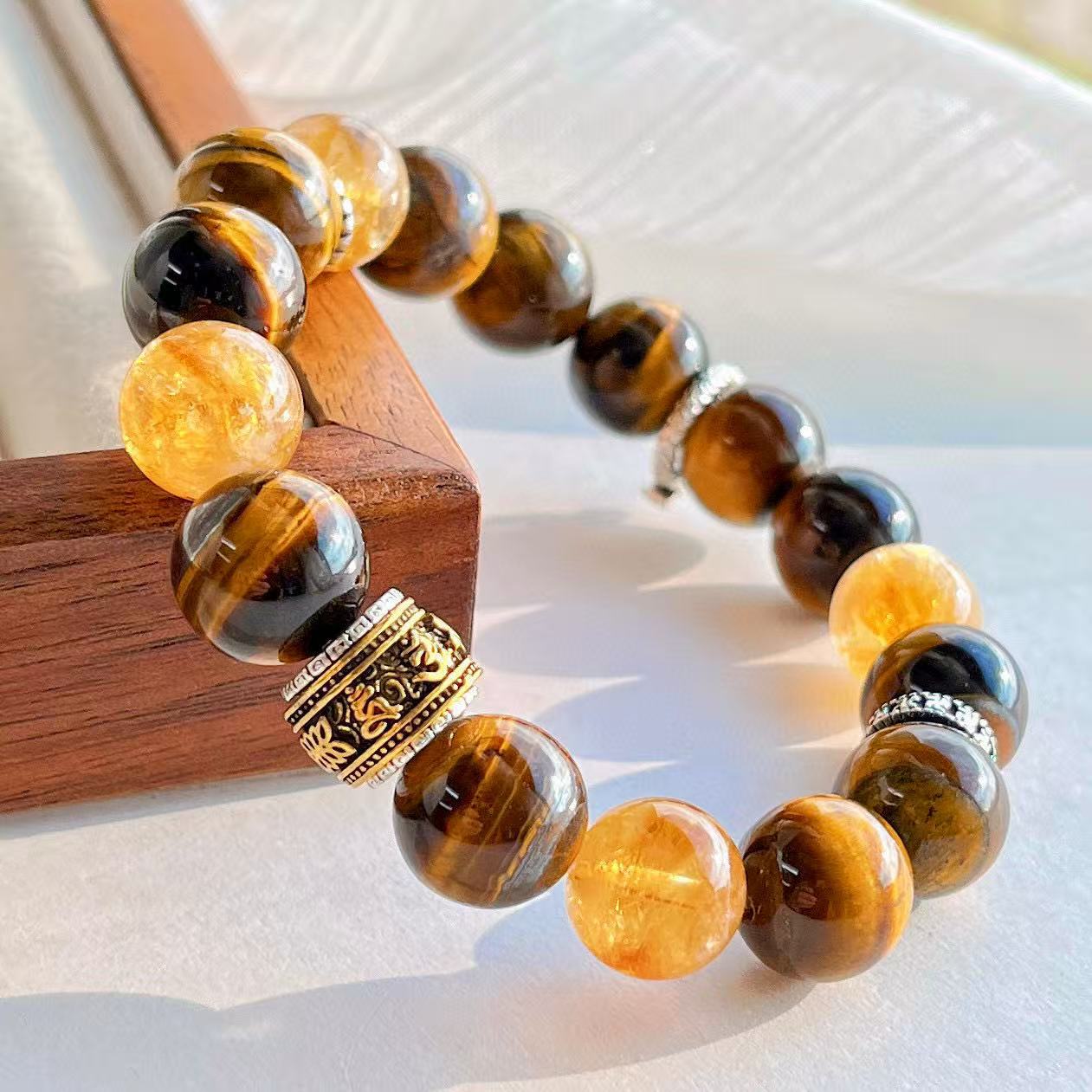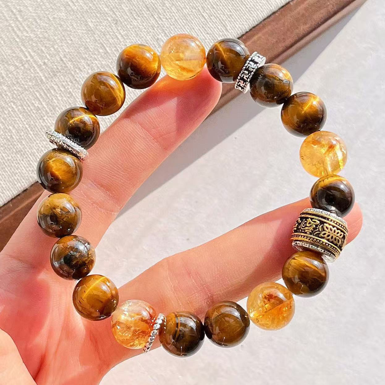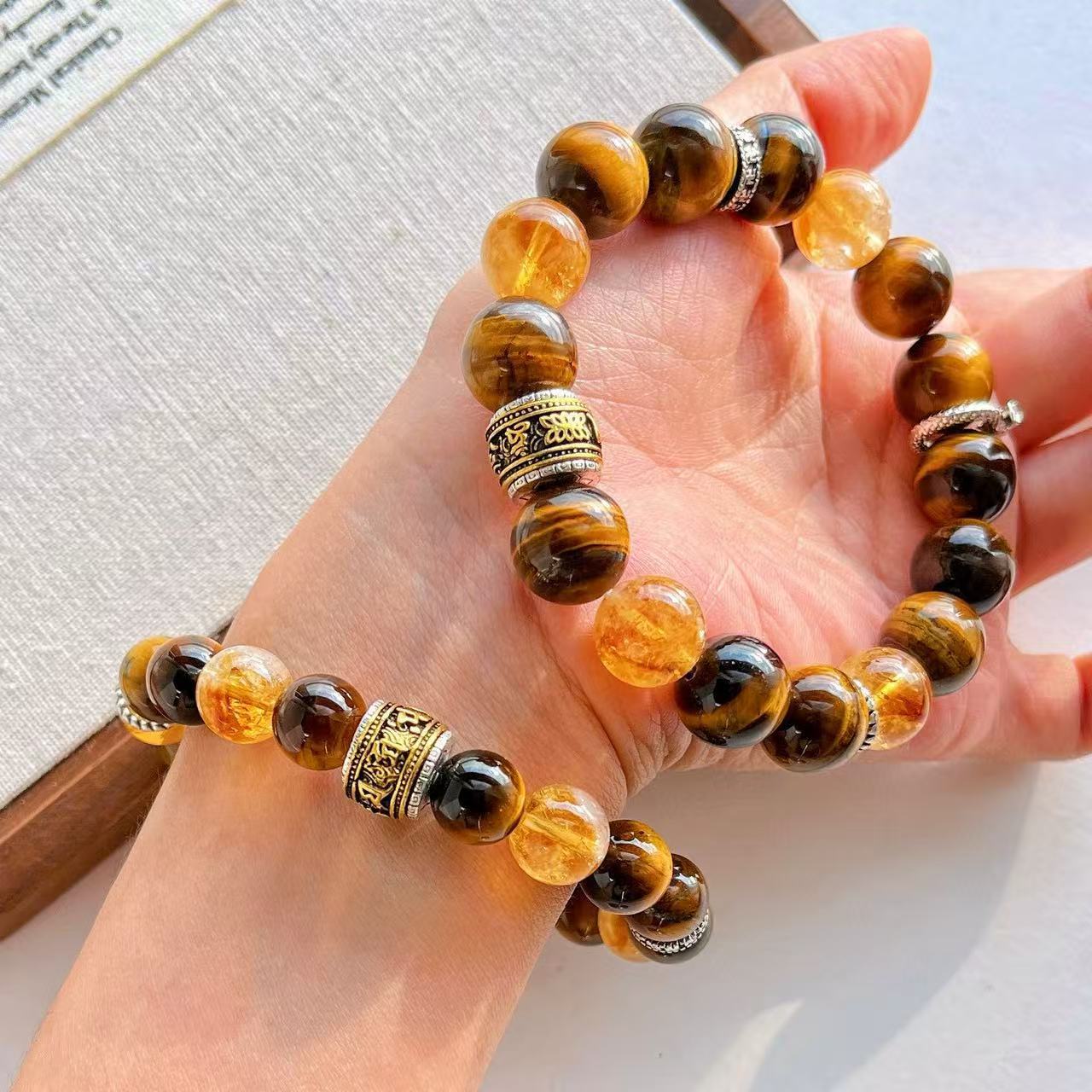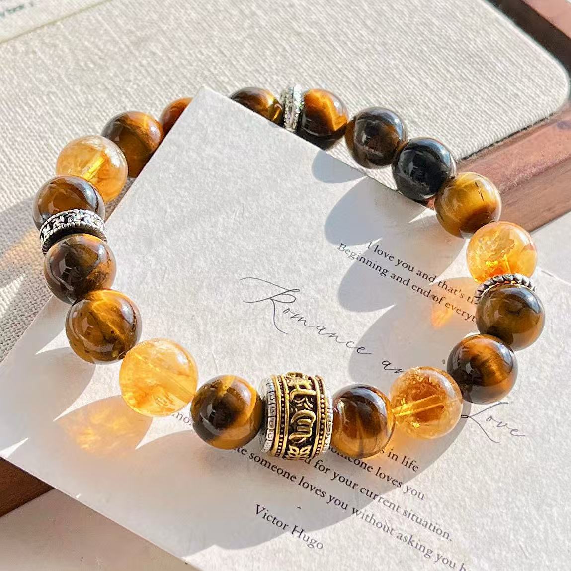 高定美拉德高品質天然虎眼石黃水晶設計感手鏈手串復檢