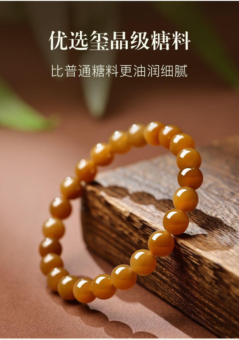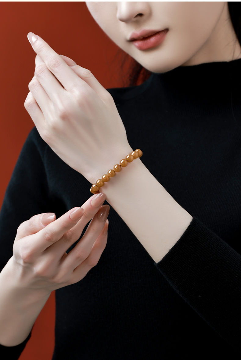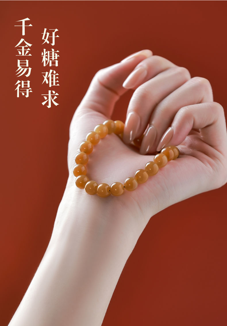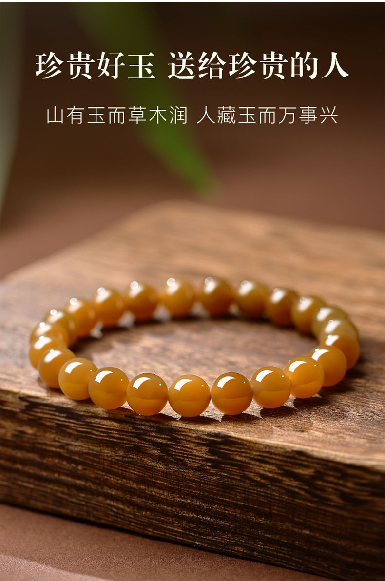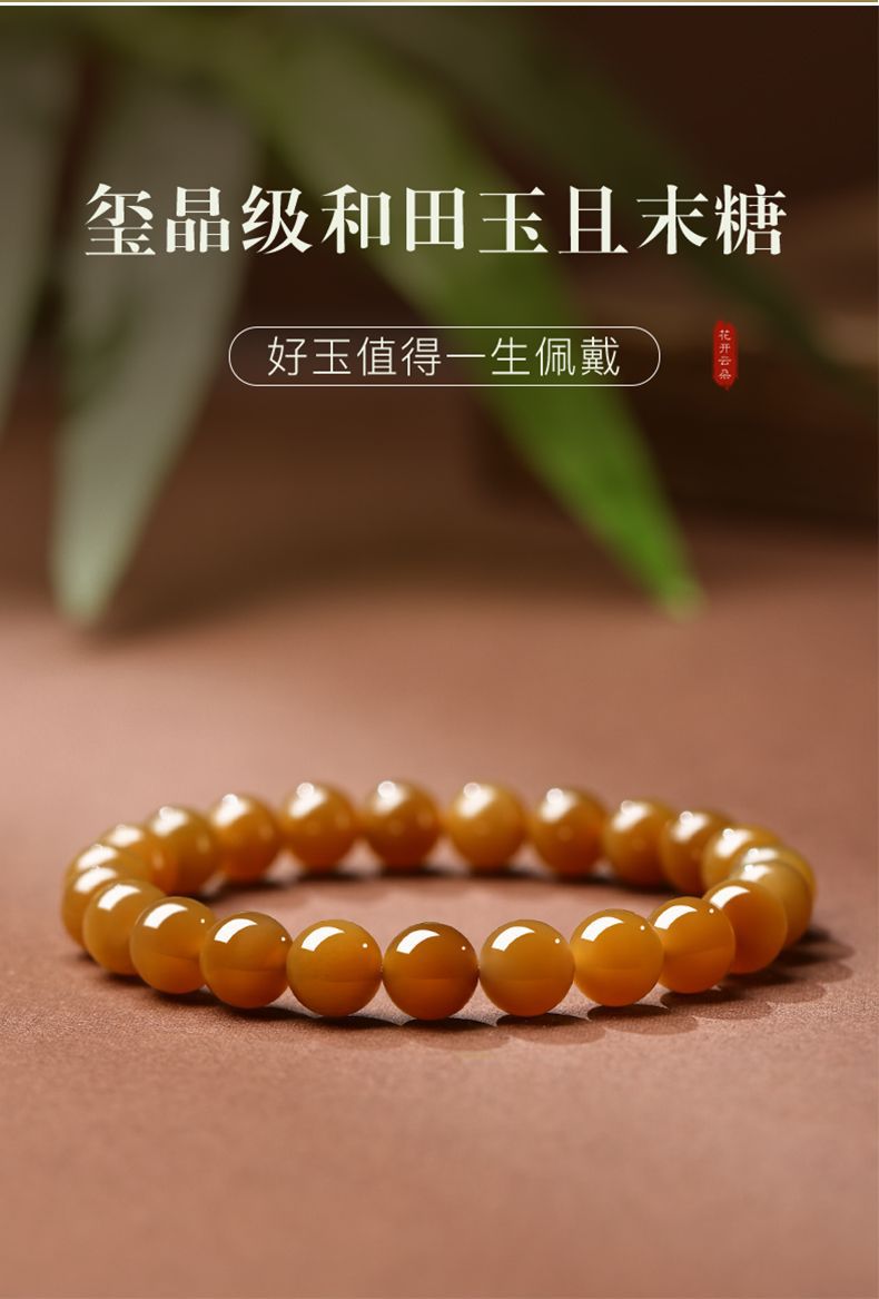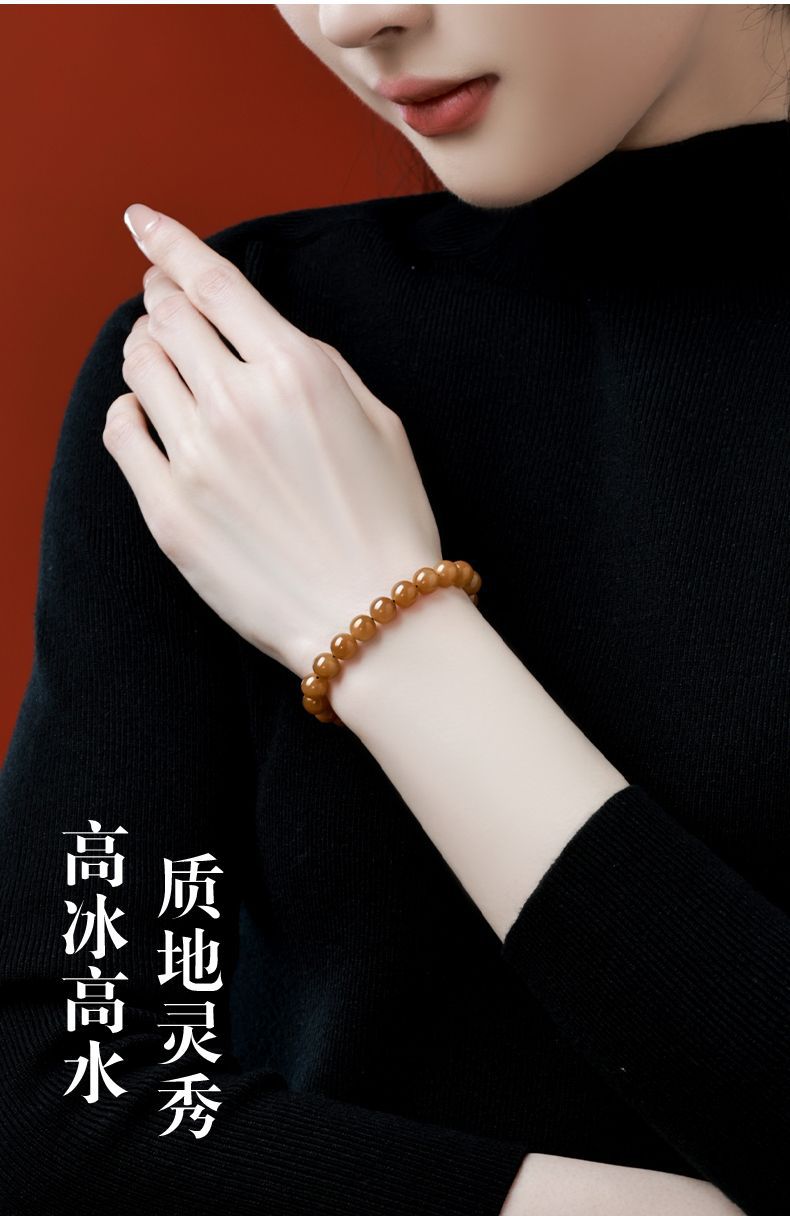 天然新疆和田玉手串且末糖料女士新中式本命年平安黃糖料玉石手鏈