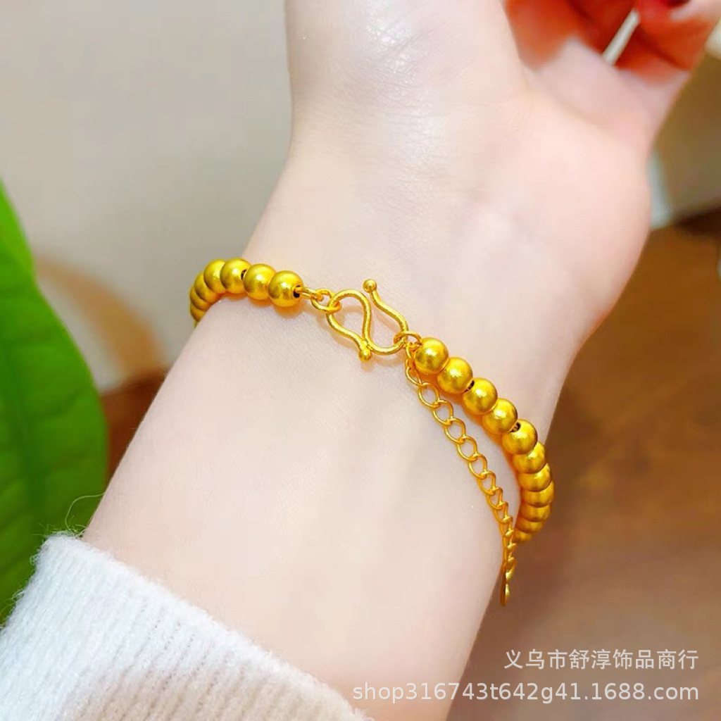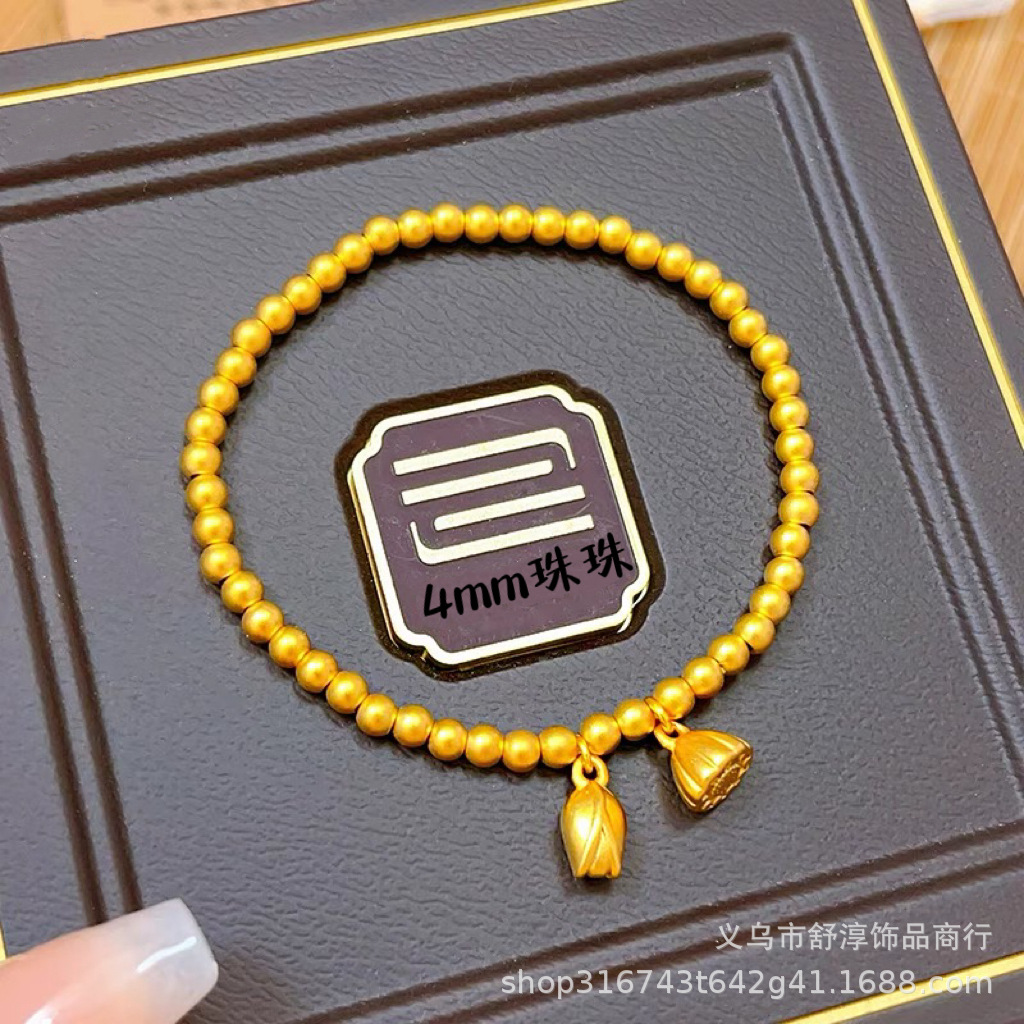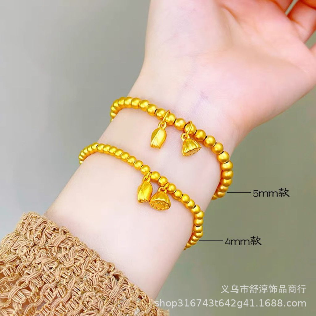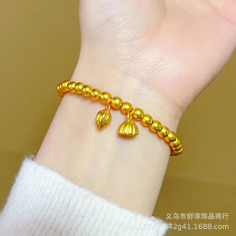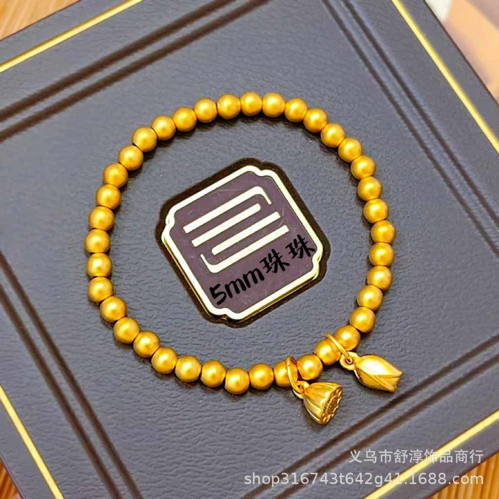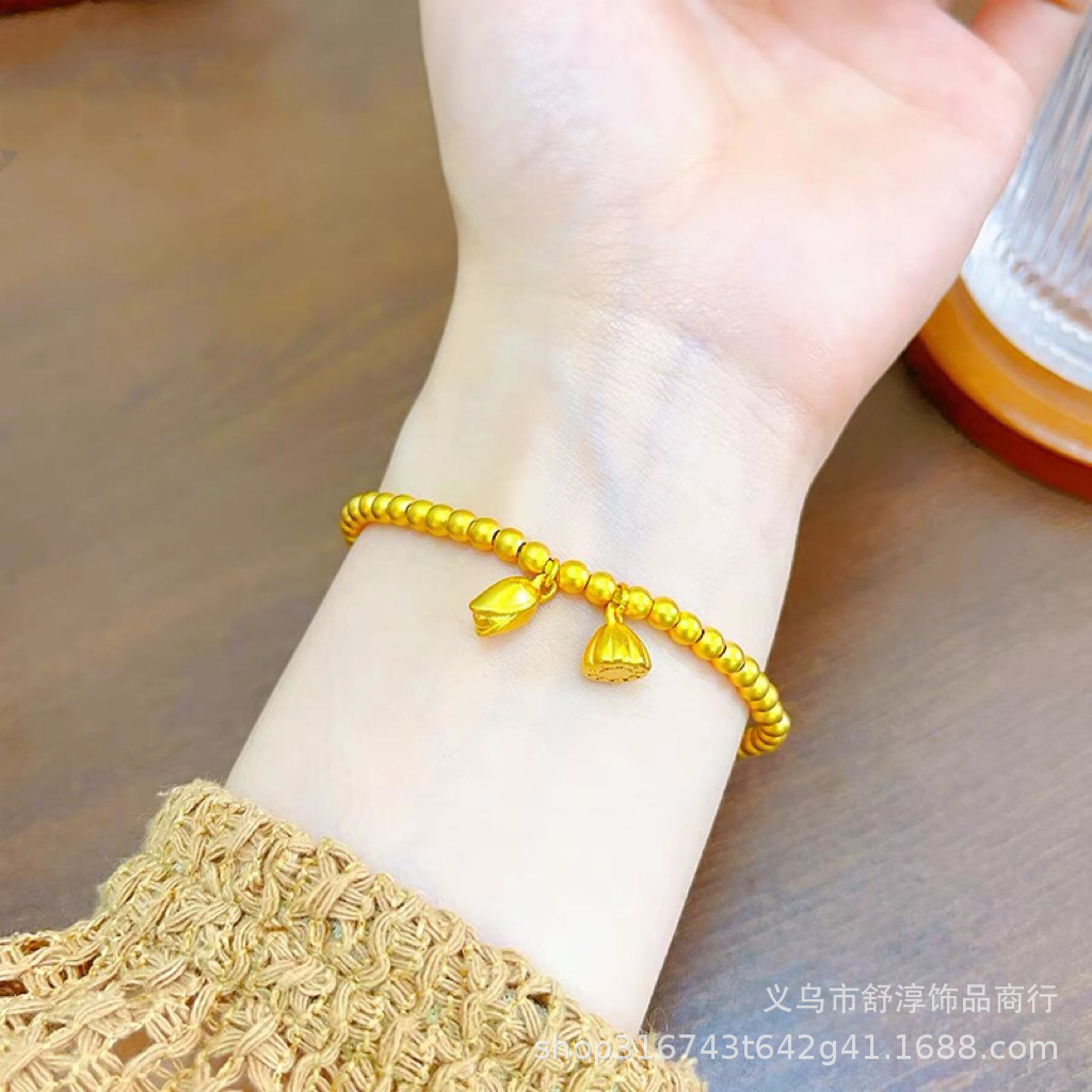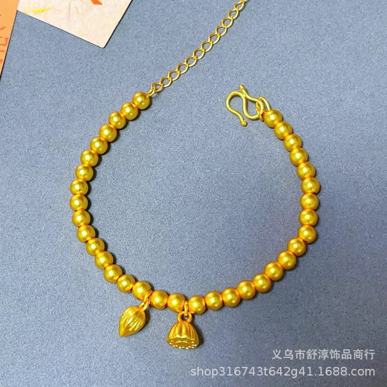 國潮新中式沙金古法網紅款兩世歡手鏈鍍k金保色蓮蓬蓮花s釦手鏈女
