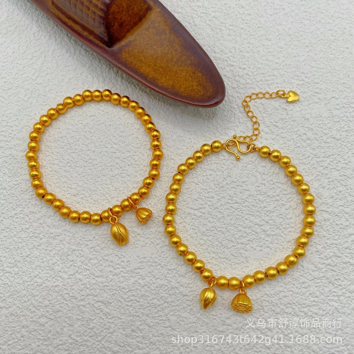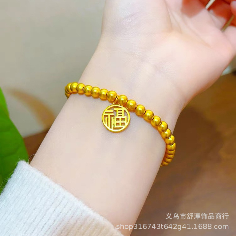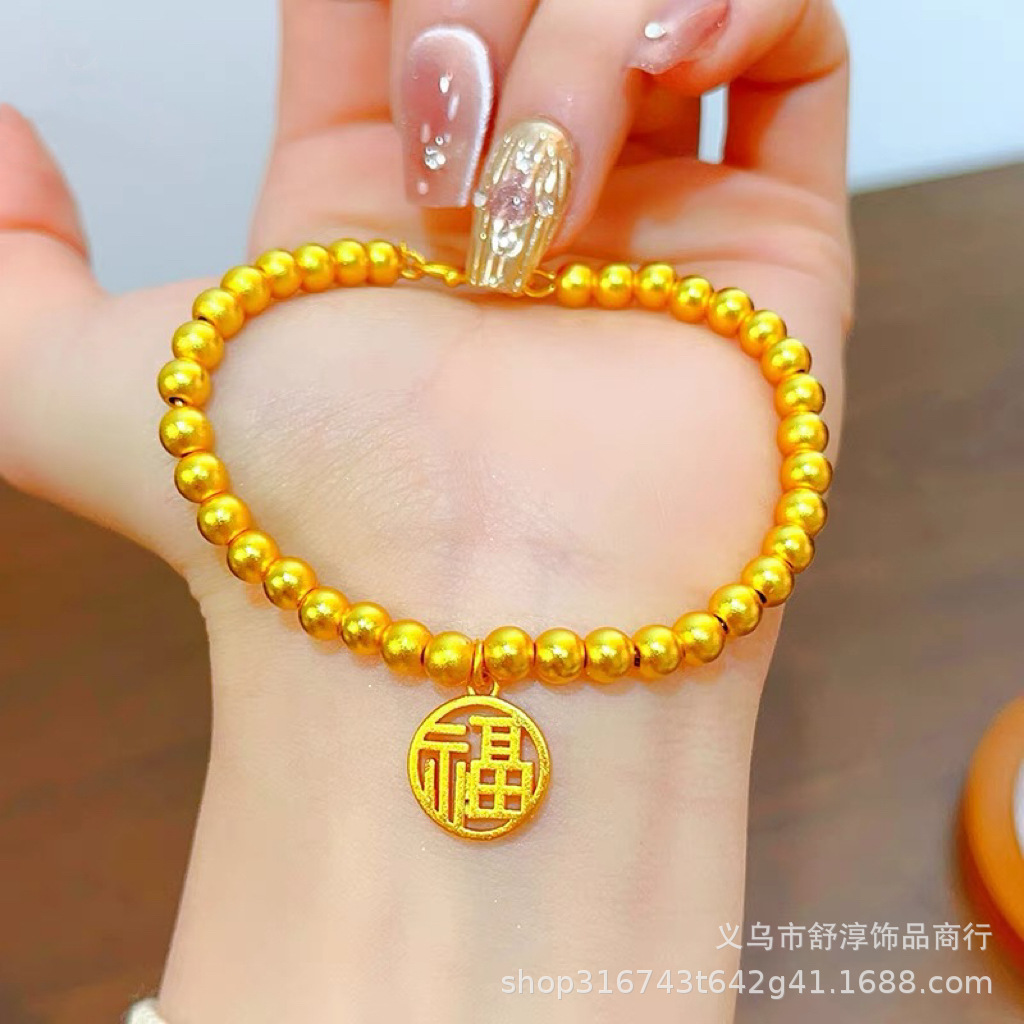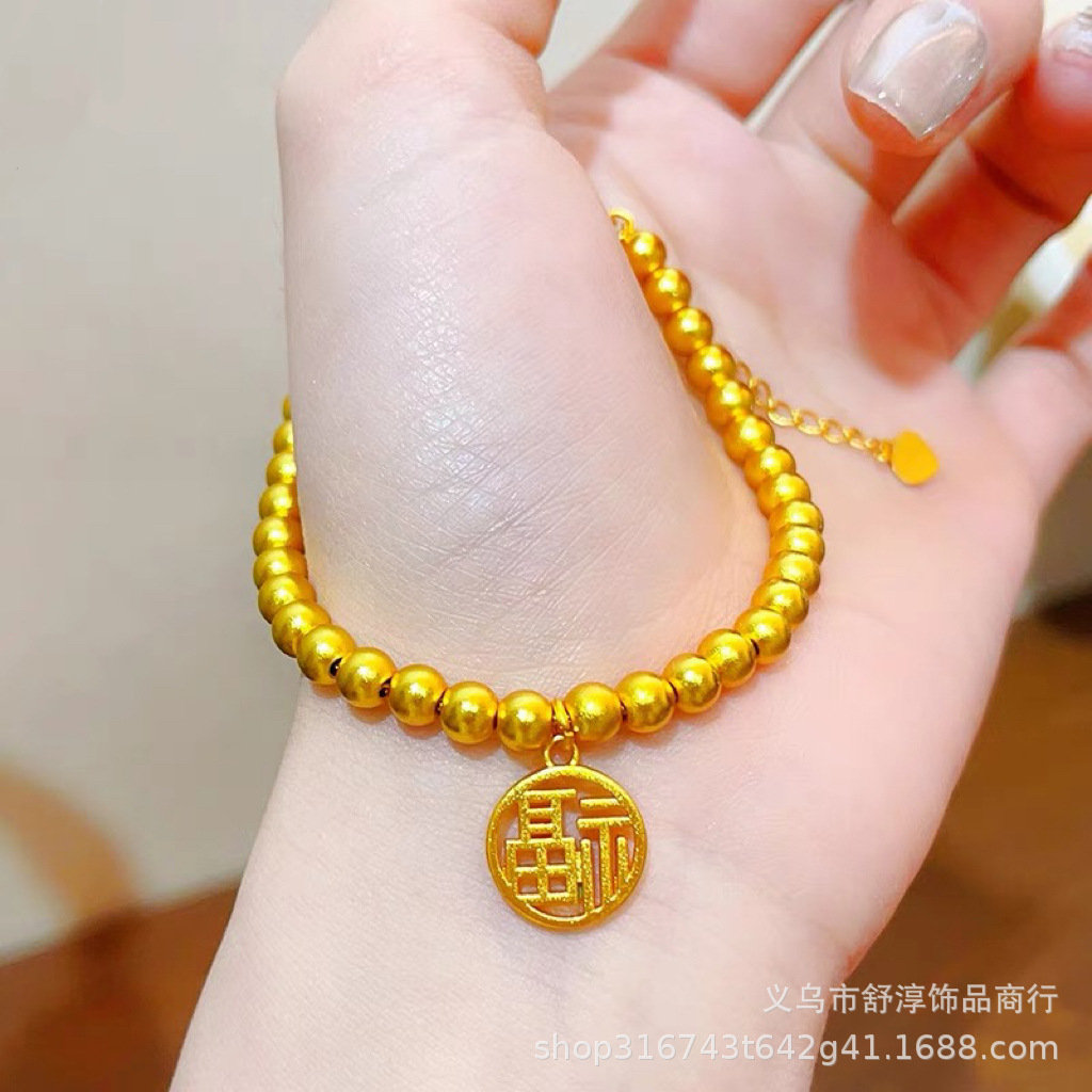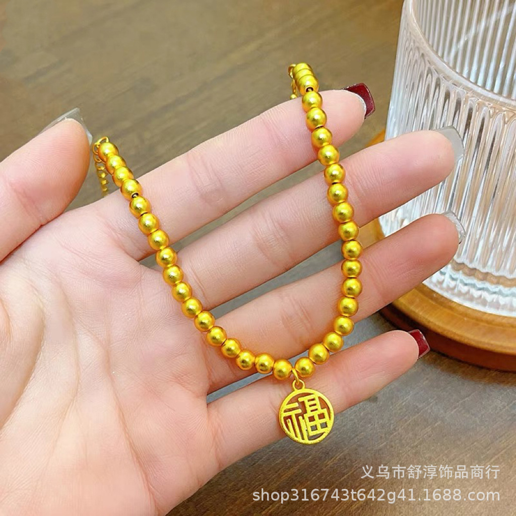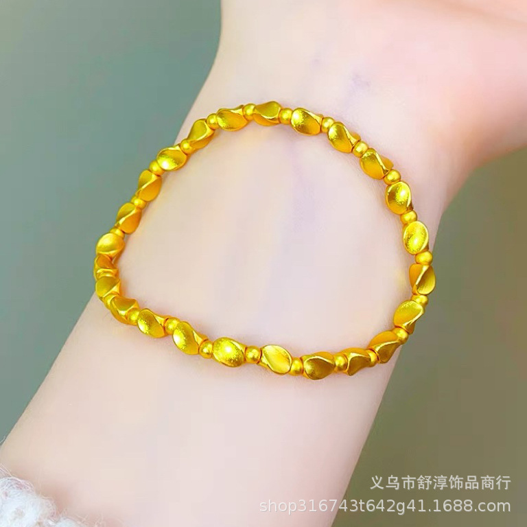 國潮新中式沙金古法網紅款兩世歡手鏈鍍k金保色蓮蓬蓮花s釦手鏈女