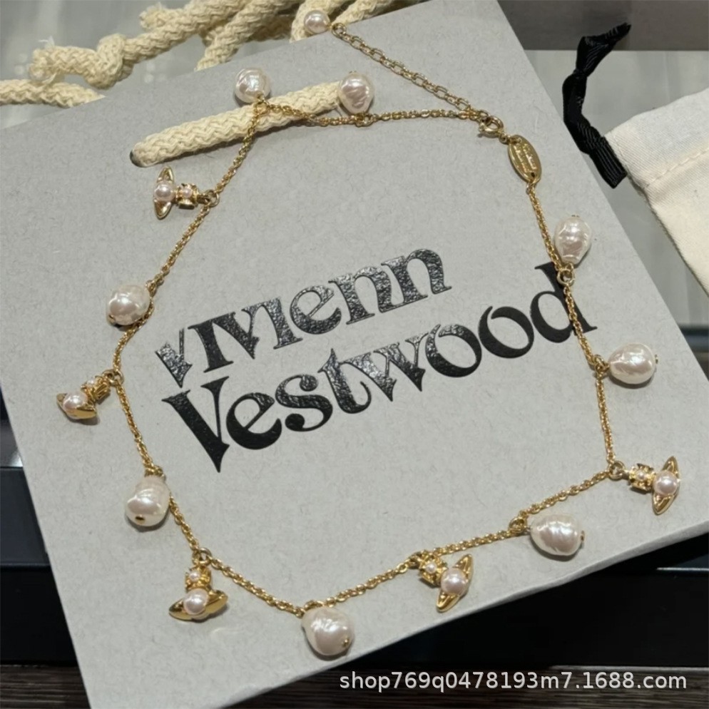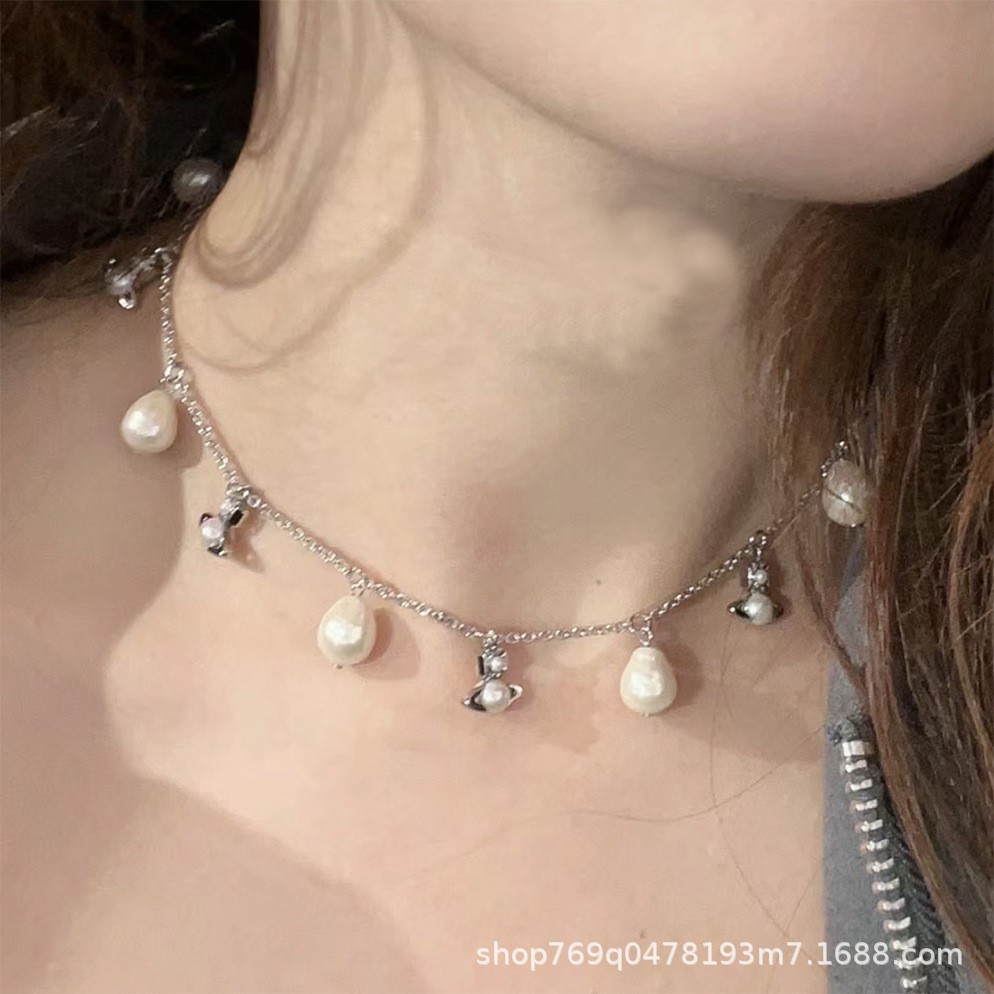 西太後新款巴洛克珍珠小土星share項鍊 手鏈 輕奢龐克風chocker